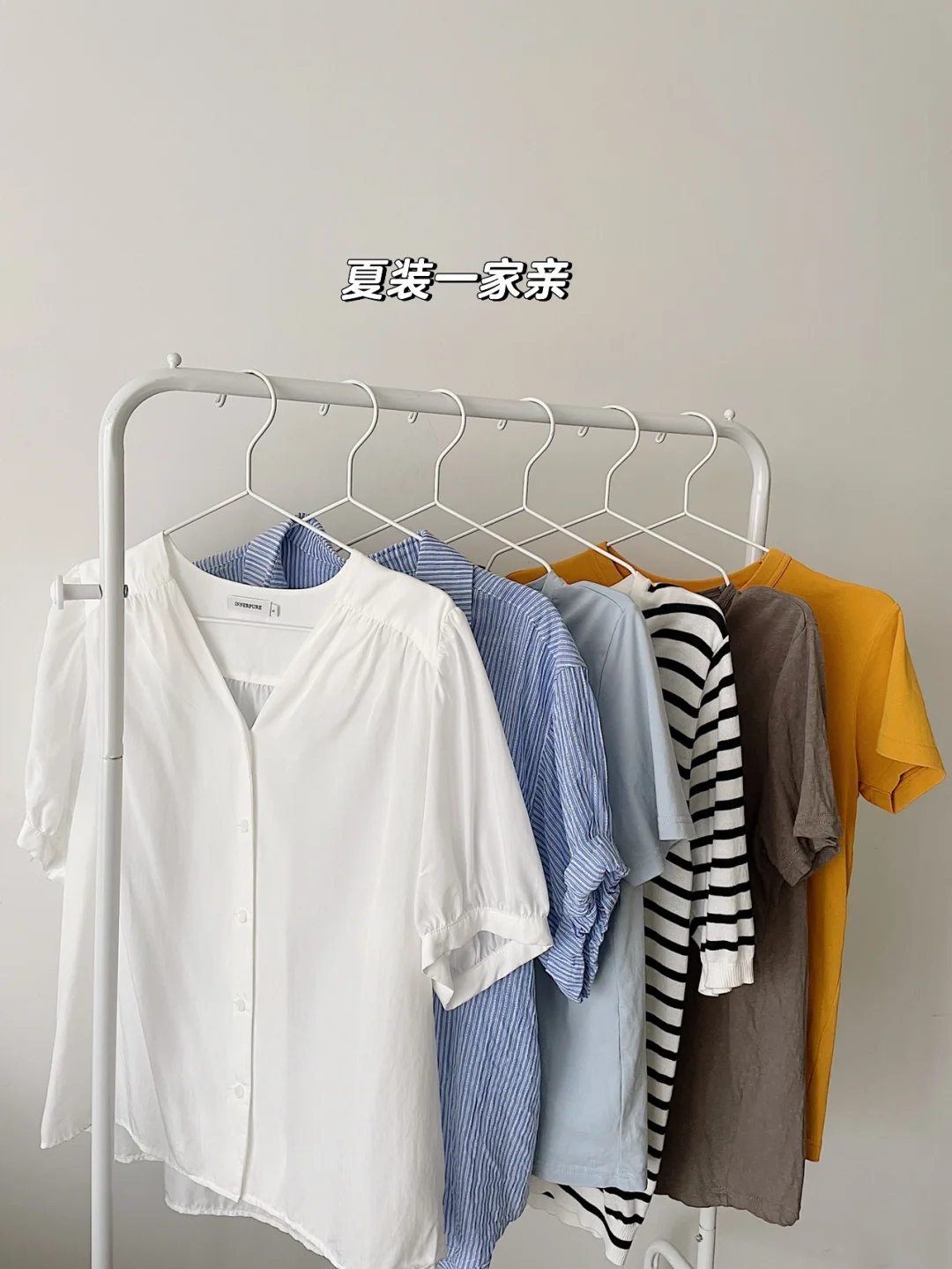 今天是践行极简生活的第71天 夏天到了把全部短袖整理了一遍 . 共有8件短袖 5件T恤👚2件衬衫👔1件条纹开衫 我的夏装一家亲 集齐各种颜色的T恤 . 衬衫也要备两件 正式场合有需要 不求多就两三件自己喜欢的可 . 护理夏装衣服 如果不是羊毛料子(夏天也不会穿羊毛短袖吧) 除非是坐办公室的 那就三件套 洗衣液 消du液 香珠 足够 . 下篇就整理自己夏装裤子 夏天来了 清爽no.1 👚👕👖👔👗👙🩱