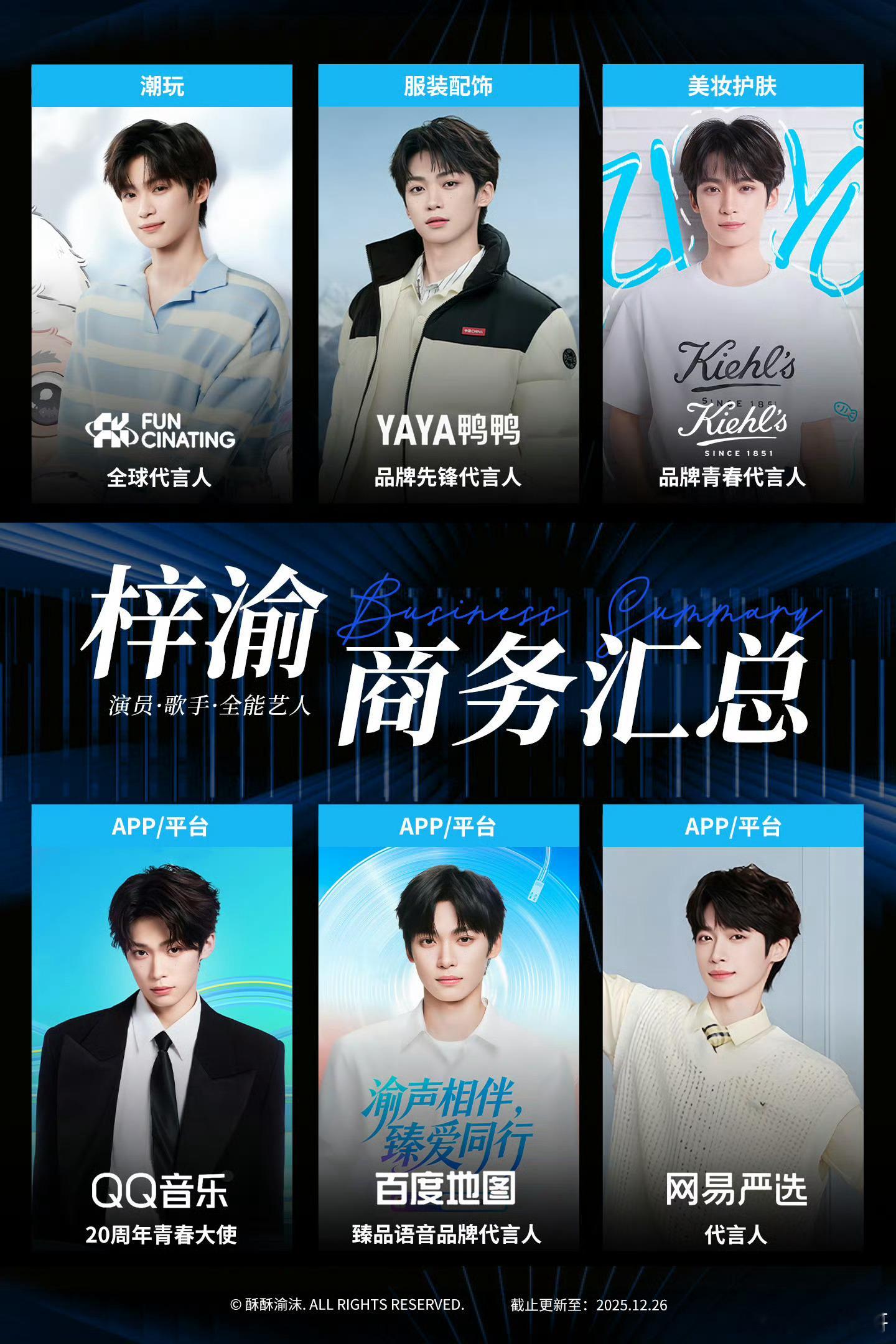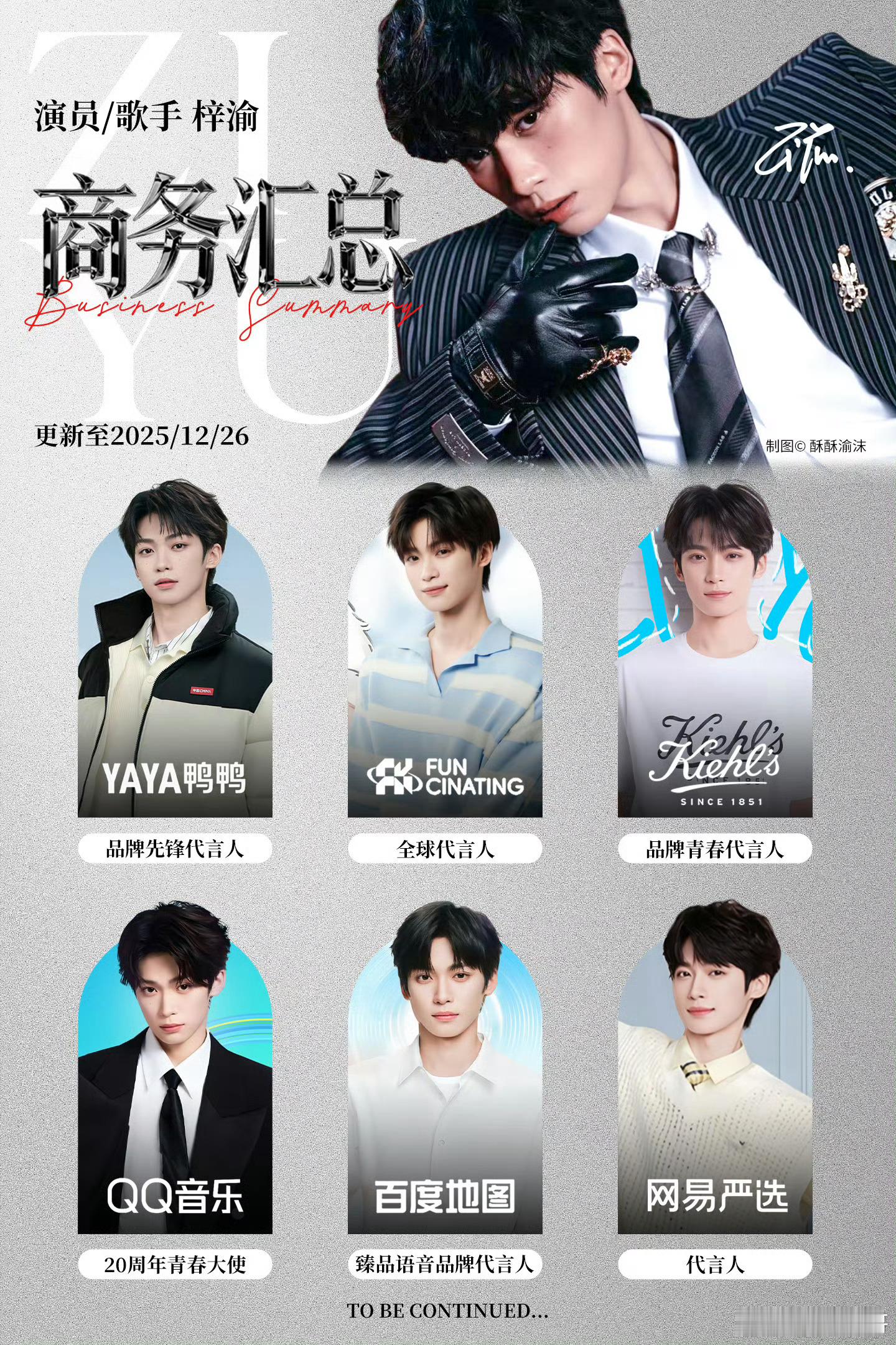 梓渝截止到今日的商务汇总,共5个代言人1个大使美妆护肤、服装配饰、潮玩、平台ap