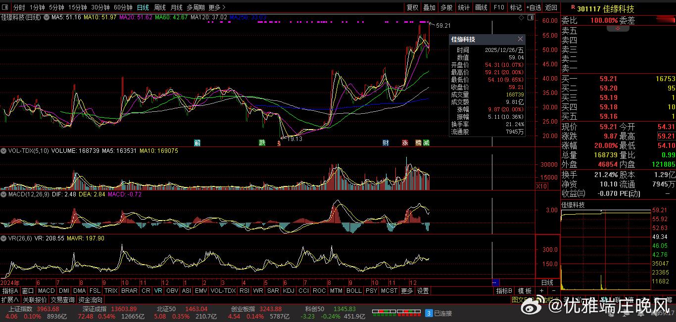 【财富晚茶】潜龙浮出水面:12.26主力资金:净流入前20股票导语:作者系《网易号》优质财经领域创作者。曾经原创作者和知名网易号旅游领域创作者。大跨度行业等的写作,颇受网友喜爱。作品发表于2025.12.26.22:18 优雅端庄晚风。【内容概述】今日股市收评评:主题是:【财富晚茶】潜龙浮出水面:12.26主力资金:净流入前20股票。主旋律:12.26主力资金:净流入前20股票:政策提振时代背景。一、视野最新:主力资金:前20强股票主旋律:最强股票:2025.12.26主力资金前20股票1、市场表现:前三公司脉冲股票:300291 百纳千成 301117 佳缘科技 002506 协鑫集成二、视野背景:特点逻辑:前20强股票主旋律:净流入股:潜伏特点核心逻辑复盘潜龙:浮出水面:12月26日:资金净流入的股票:主要集中:政策支持、行业景气度提升、游资与机构资金协同三大主线。核心逻辑:政策支持驱动资金布局、行业景气度提升吸引资金、游资与机构资金协同、市场情绪与资金行为、技术面与资金面等五重共振。具体透析如下:1、商业航天:政策推动商业航天:国家“十五五”规划明确将商业航天作为重点发展领域,并出台《推进商业航天高质量安全发展行动计划(2025—2027年)》。从产业链:布局到投融资机制提供系统支持,推动行业进入高速成长期。龙头个股:上海港湾个股视野:公司商业航天业务取得突破,卫星配套产品已保障18颗卫星发射,49套系统稳定运行。尽管该业务占比不足1%且未盈利,但政策利好仍吸引市场关注,推动股价涨停。2、科技自主:可控政策科技自主可控:国资委《规划建议》强调加强原始创新及关键核心技术攻关,利好量子科技、6G、半导体等硬科技领域,北向资金持续流入相关标的。龙头个股:宇环数控公司近期获得491.5万元政府补助,占净利润的36.82%。与此同时:实施股权激励计划:向核心管理人员和骨干授予98万股限制性股票。市场表现:政策支持与内部优化共同推动股价涨停。3、游资机构:资金协同第一、顶级共振建仓模式瞧德明利:5家机构狂买2.05亿元+今天涨停。机构大举建仓:强烈看好后市。龙头个股:北斗星通3家机构买入9283万+游资“消闲派”+今天涨停。技术形成:机构搭台,游资唱戏”的持续上涨行情。第二、纯粹游资驱动模式龙头个股:大业股份今日涨停。早晨游资:连续上榜,25日完成“T+1”式接力,依赖市场情绪和板块联动。4、市场情绪:资金行为第一、上涨流出背离警示不得不防-1:顺灏股份K线图:资金流出:连续两周。股价上涨但主力大幅流出,典型的“拉高出货”或调仓信号。不得不防-2:广联航空K线图:资金流出:消化去年:套牢筹码:价格35.65元。总体强势:调整之后:再次脉冲。目前高位:股价大涨:主力巨额流出。显示场内:资金看法:极度分化。不得不防-3:天孚通信 海光信息赛道切换:天孚通信:海光信息。第二、赛道切换流新能源恭喜脉冲:钧达股份消费电子:香农芯创。第三、其他政策细分龙头商务部发:《50城消费新业态试点》。。龙头个股:汇洁股份公司占据:核心品牌:优势显著。第三季度:净利润同比大增121.17%。线上渠道:快速发展。政策业绩:共振推动股价涨停。第四、科技自主可控板块国资委《规划建议》。龙头个股:宇环数控:受政策驱动表现活跃。第五、消费板块叠加节日商务部《50城消费新业态试点》。龙头个股:汇洁股份:个股受益政策驱动表现活跃。三、哥德巴猜:资金流入:前20强股票2025年12月26日:资金净流入的股票有哪些?重点如下:1、主力资金:前20股票第一、阳光电源:新能源行业龙头。第二、航天发展:商业航天核心标的。第三、瞧比亚迪:新能源汽车龙头。第四、观多氟多:锂电池材料龙头。第五、天际股份:锂电池材料龙头。第六、阅福龙马:环保设备龙头。第七、中国卫通:商业航天核心标的。第八、天通股份:半导体材料龙头。第九、天赐材料:锂电池材料龙头。第十、瞧德明利:半导体材料龙头。第十一、上海电力:电力设备龙头。第十二、江西铜业:有色金属龙头。第十三、永鼎股份:通信设备龙头。第十四、兆易创新:半导体材料龙头。第十五、洛阳钼业:有色金属龙头。第十六、隆基绿能:光伏设备龙头。第十七、优刻得-W:云计算概念股。第十八、中国卫星:商业航天核心标的。第十九、通宇通讯:商业航天核心标的。第二十、海科新源:锂电池材料龙头。2、操作建议:前20股票第一、放量突破逢低介入第二、注意题材:避免追高