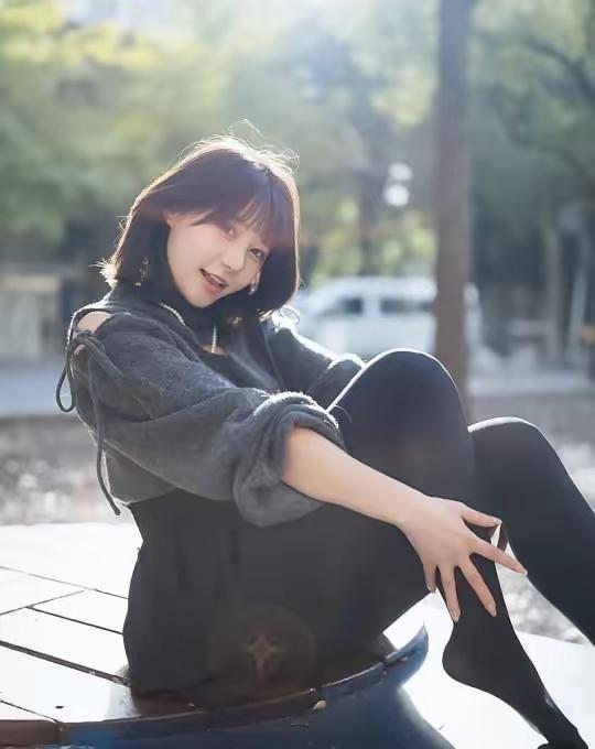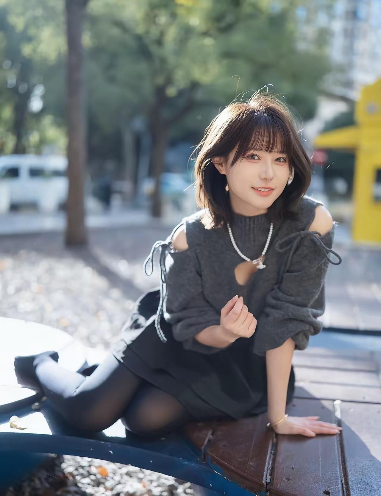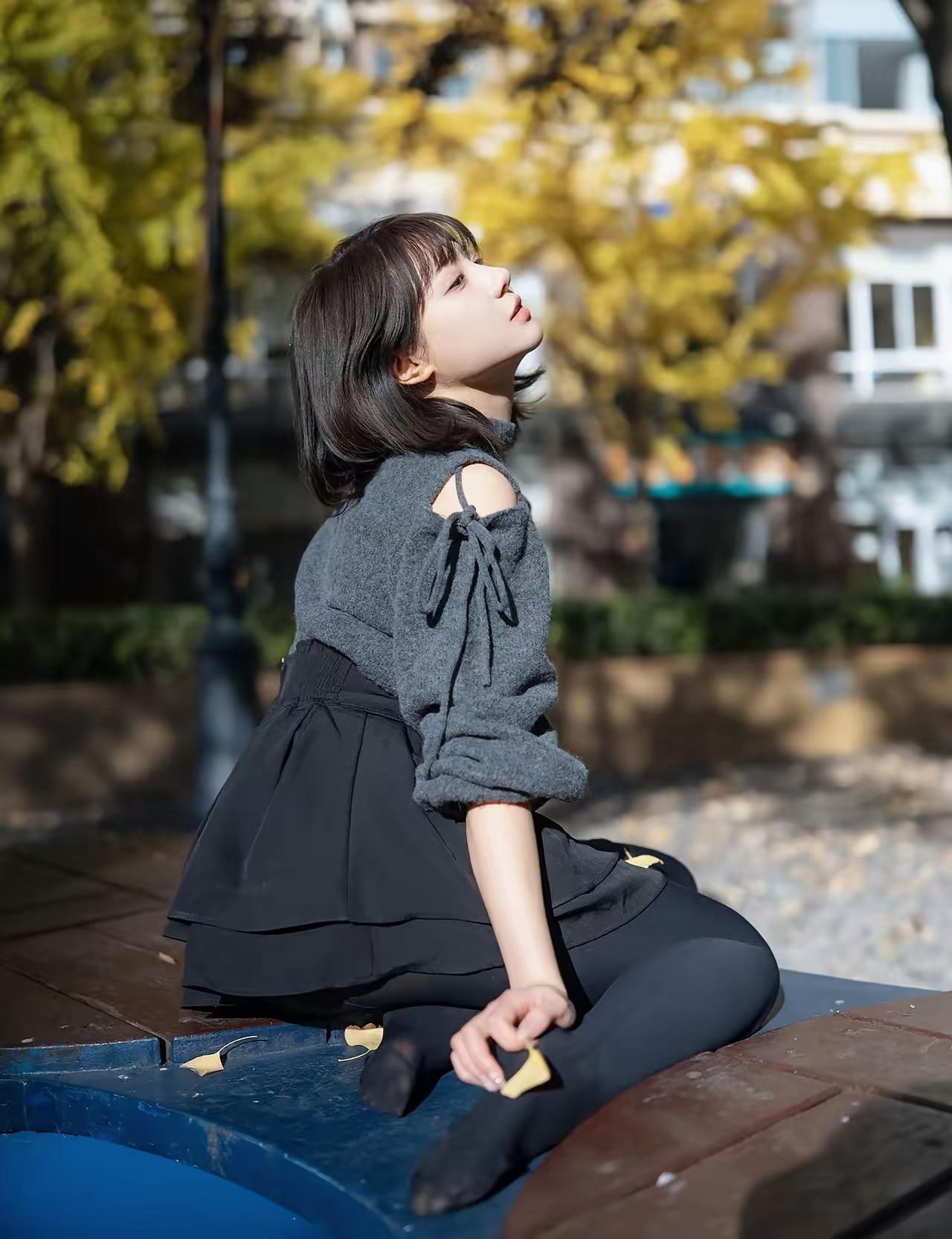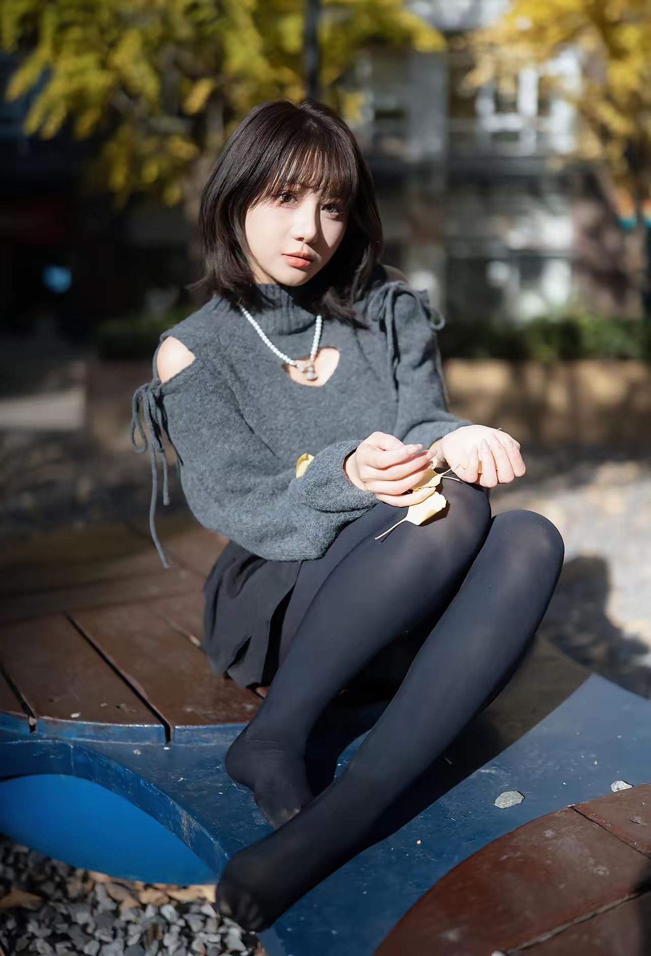 秋日穿搭风格:毛衣裙子配黑丝,阳光下的少女,散发着青春的性感迷人气息。黑丝酷穿搭