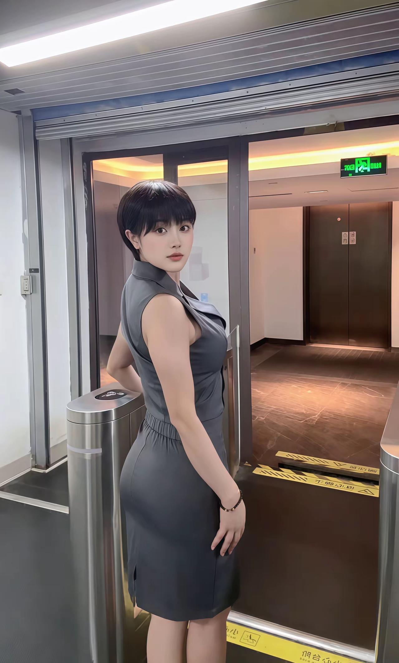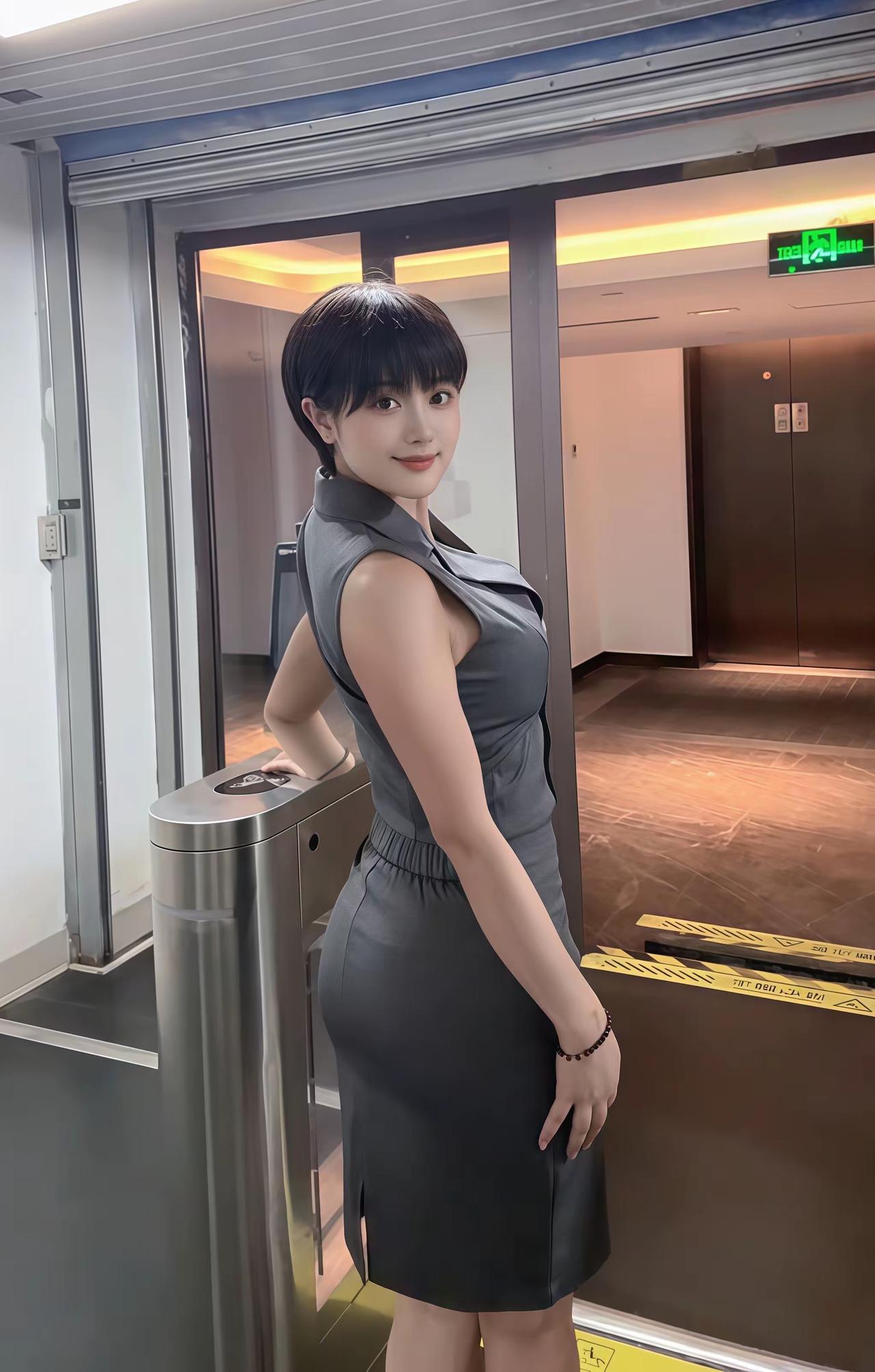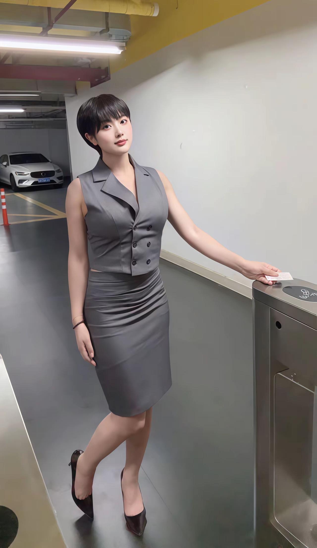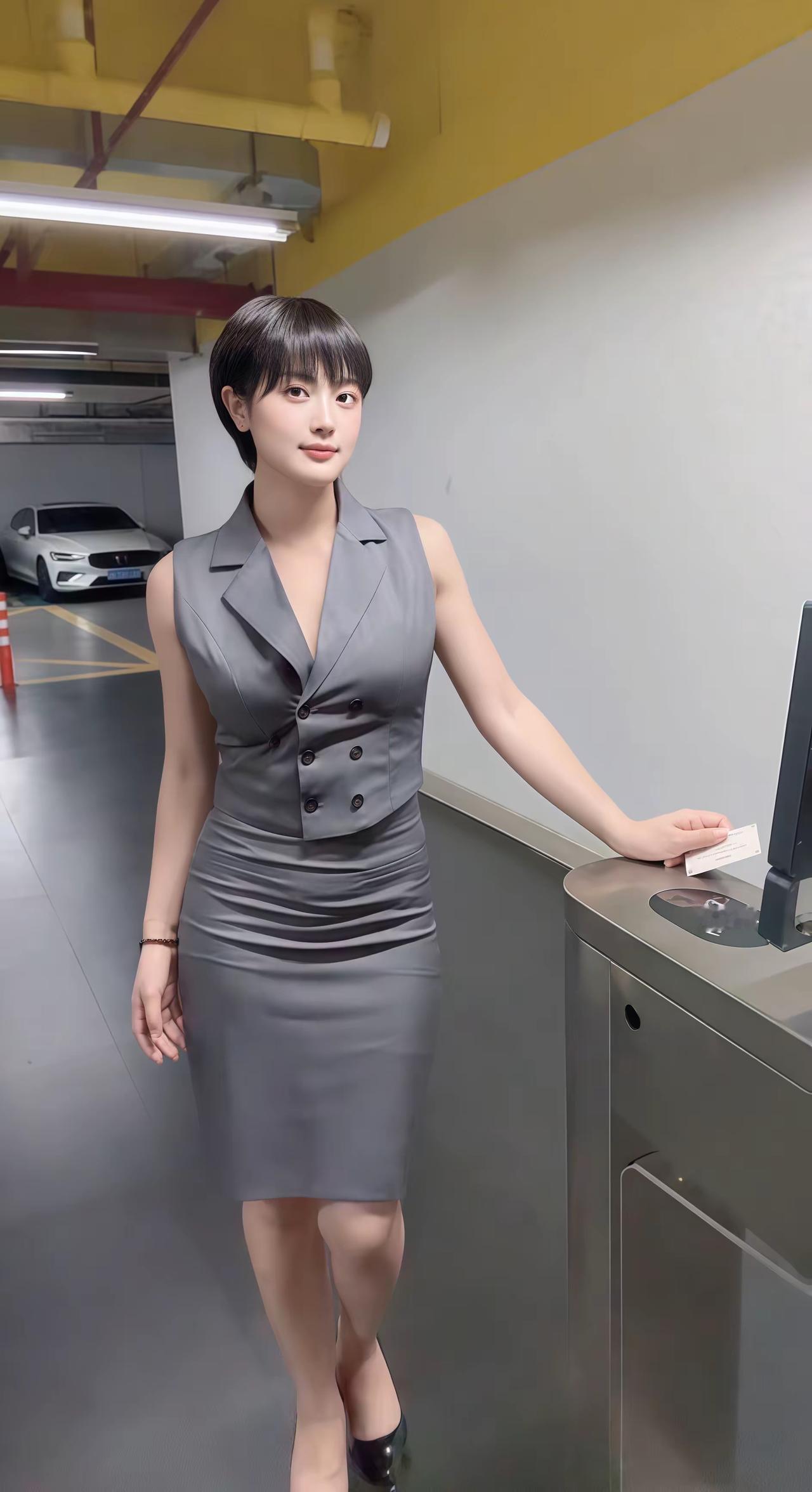 职业女性穿搭:短发显得干练,职业裙装更是把精英的气质拉满。身材更不用说一等一的顶