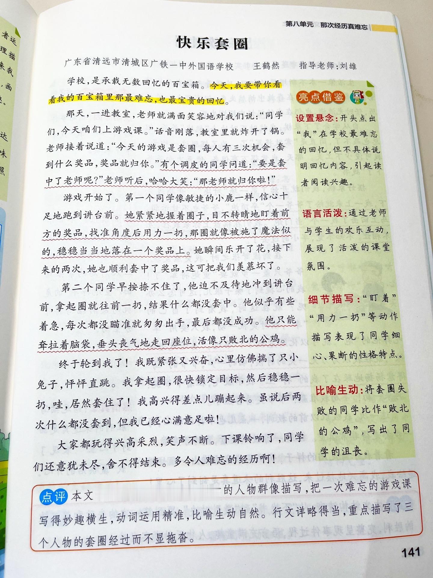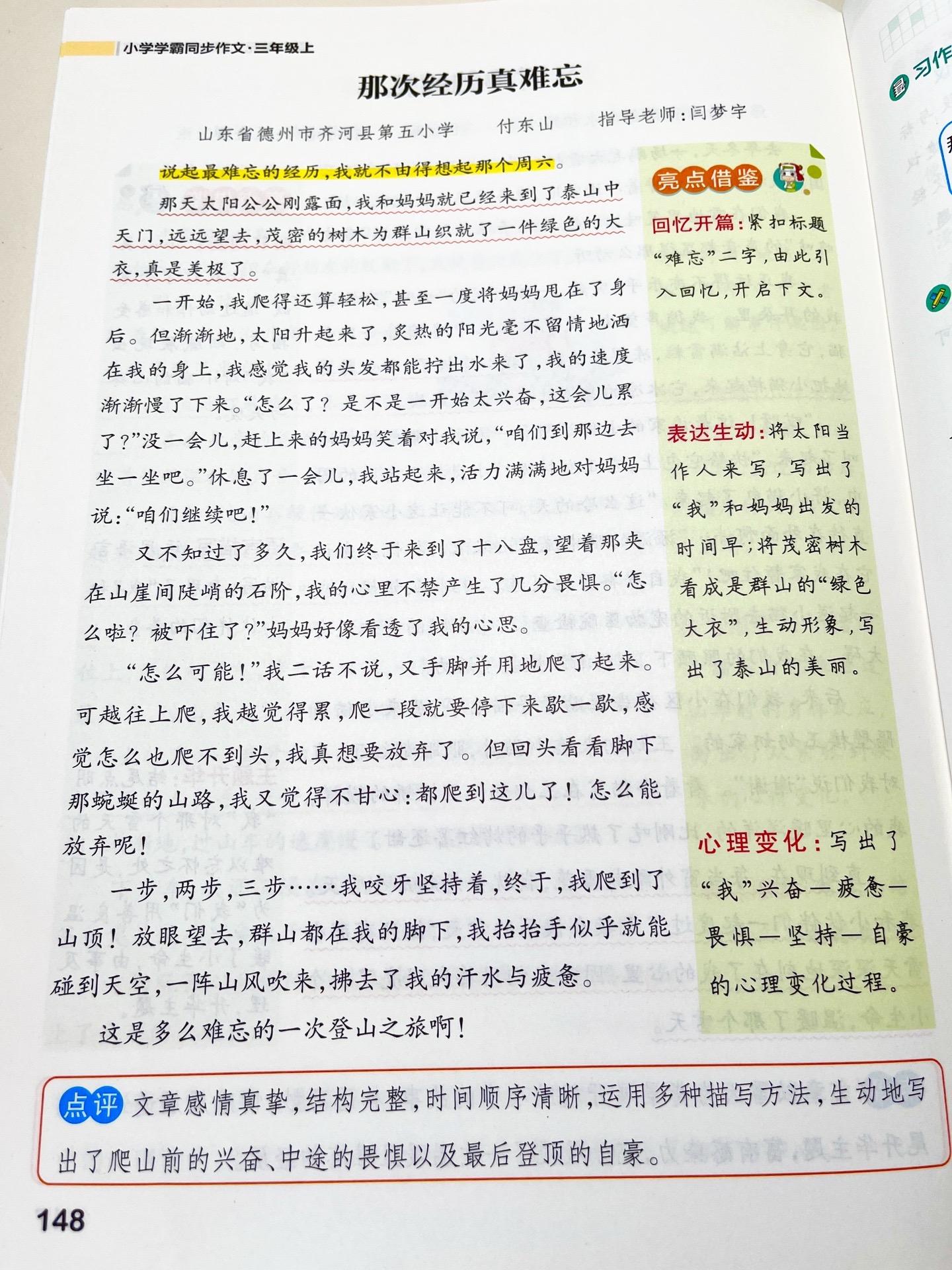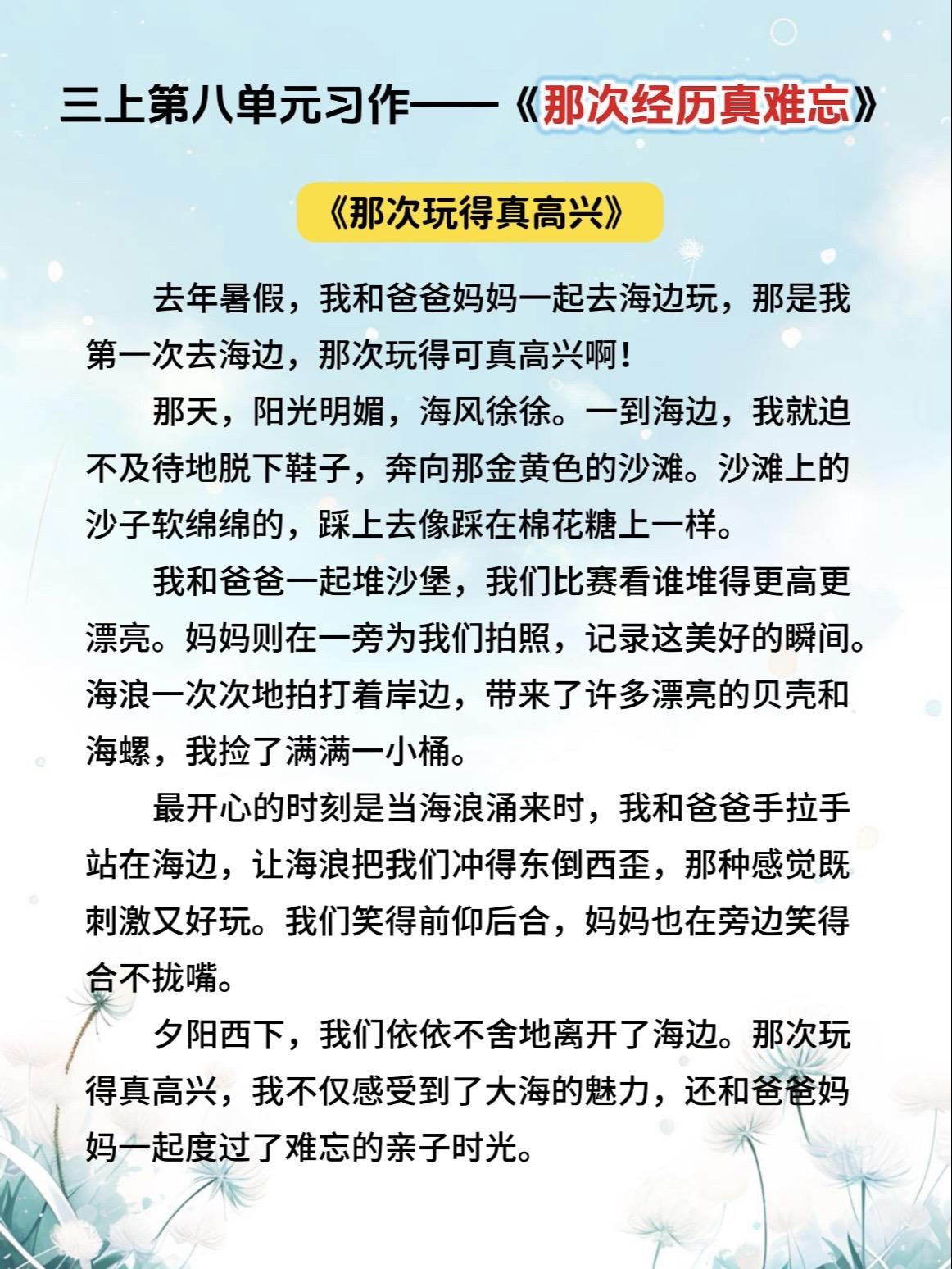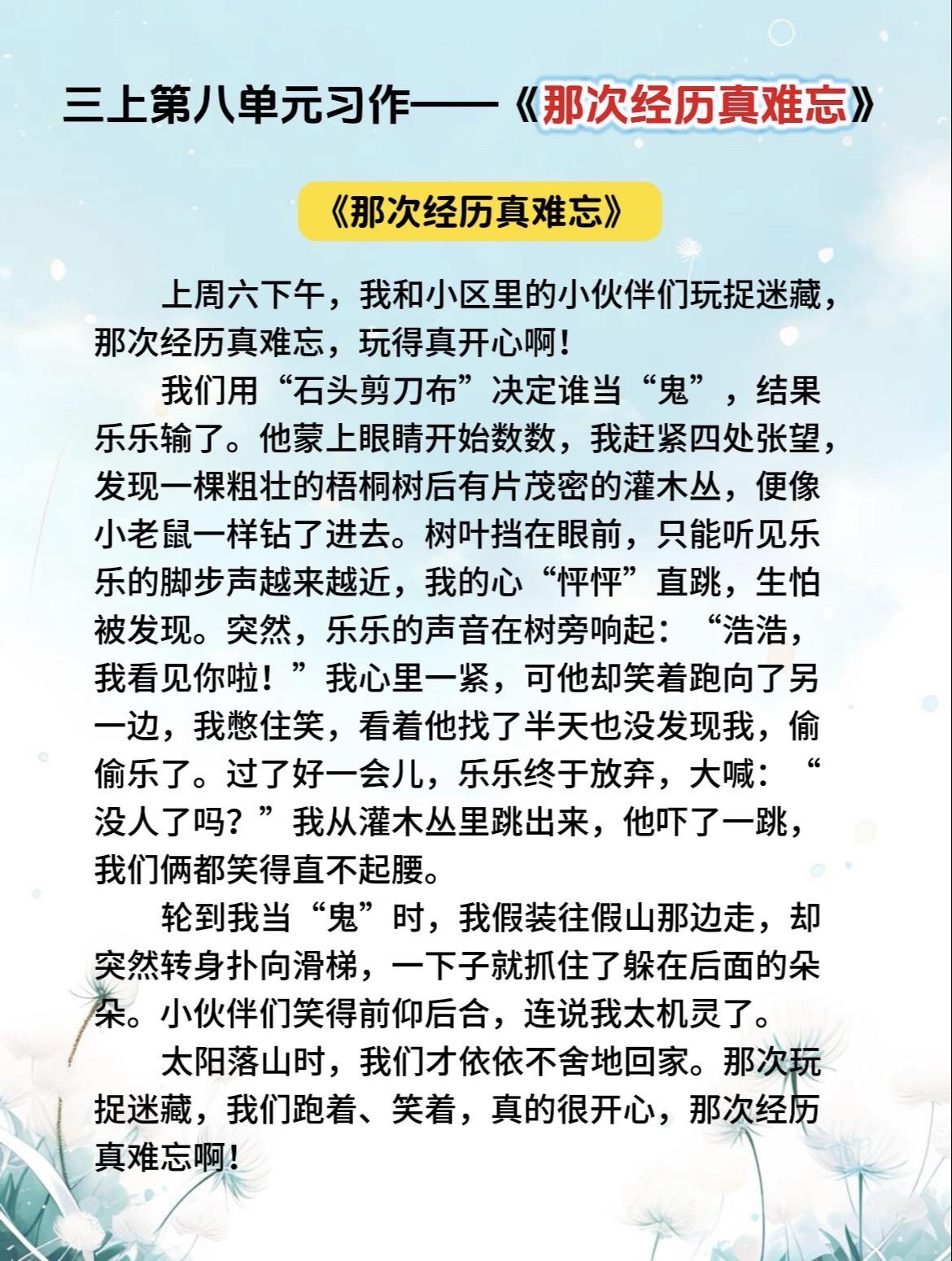 三上第八单元习作《那次经历真难忘》范文参考。