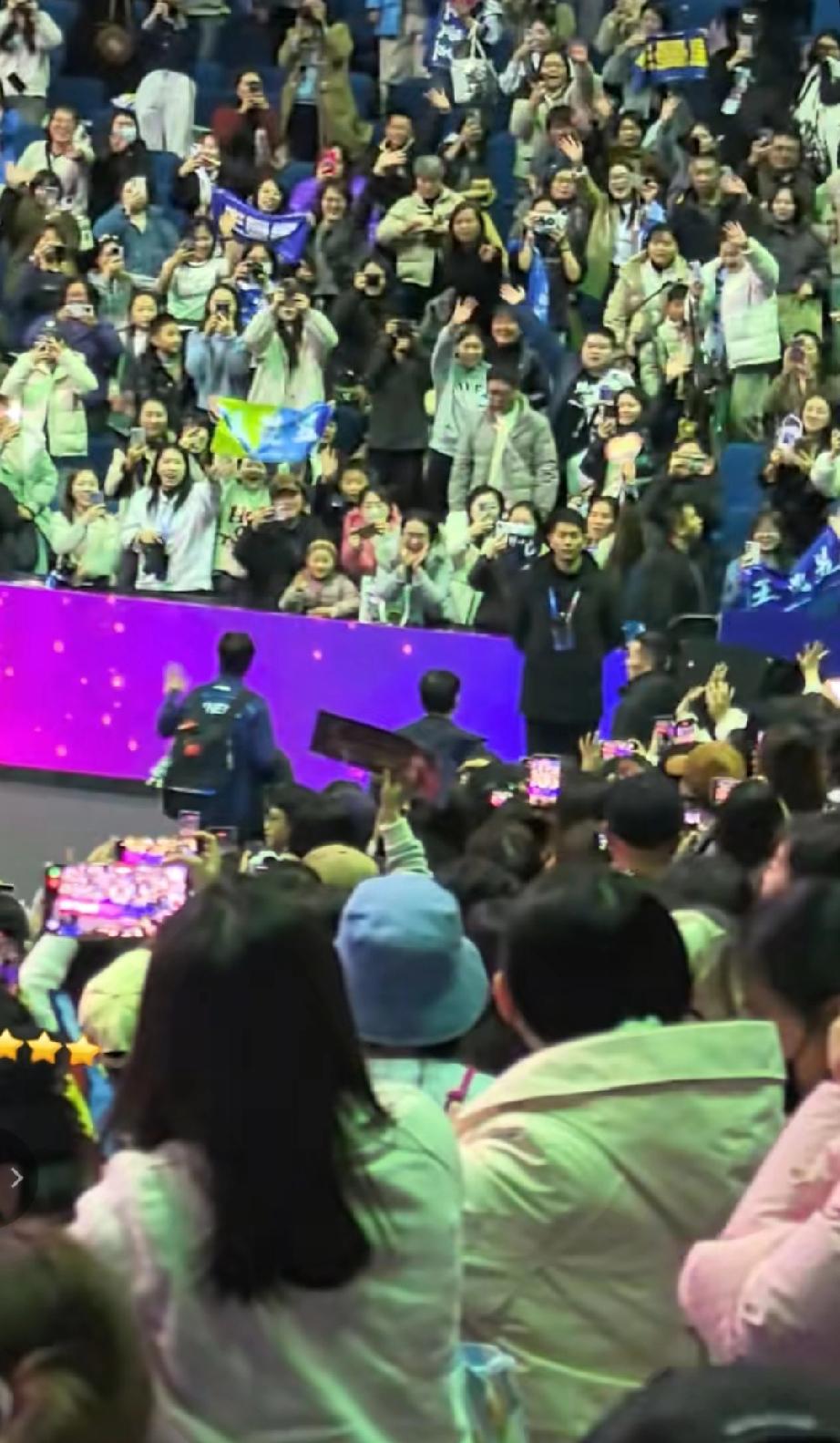 南京乒超总决赛女团半决赛,王曼昱一单二分率领山东鲁能俱乐部3-1战胜王艺迪率领的华东理工大学俱乐部。今天比赛的上座率非常高,比赛场里80%以上座位都坐满了观众,绝大多数都是王曼昱的球迷。 比赛结束后,球迷都挤在观众席前排,想要离一会走过道离开的王曼昱更近一些,王曼昱主动向球迷挥手告别。现场氛围非常好,球迷不失秩序,也饱含热情,纷纷向王曼昱挥手回应,目送王曼昱离开场馆。王曼昱也一路挥手感谢球迷支持!