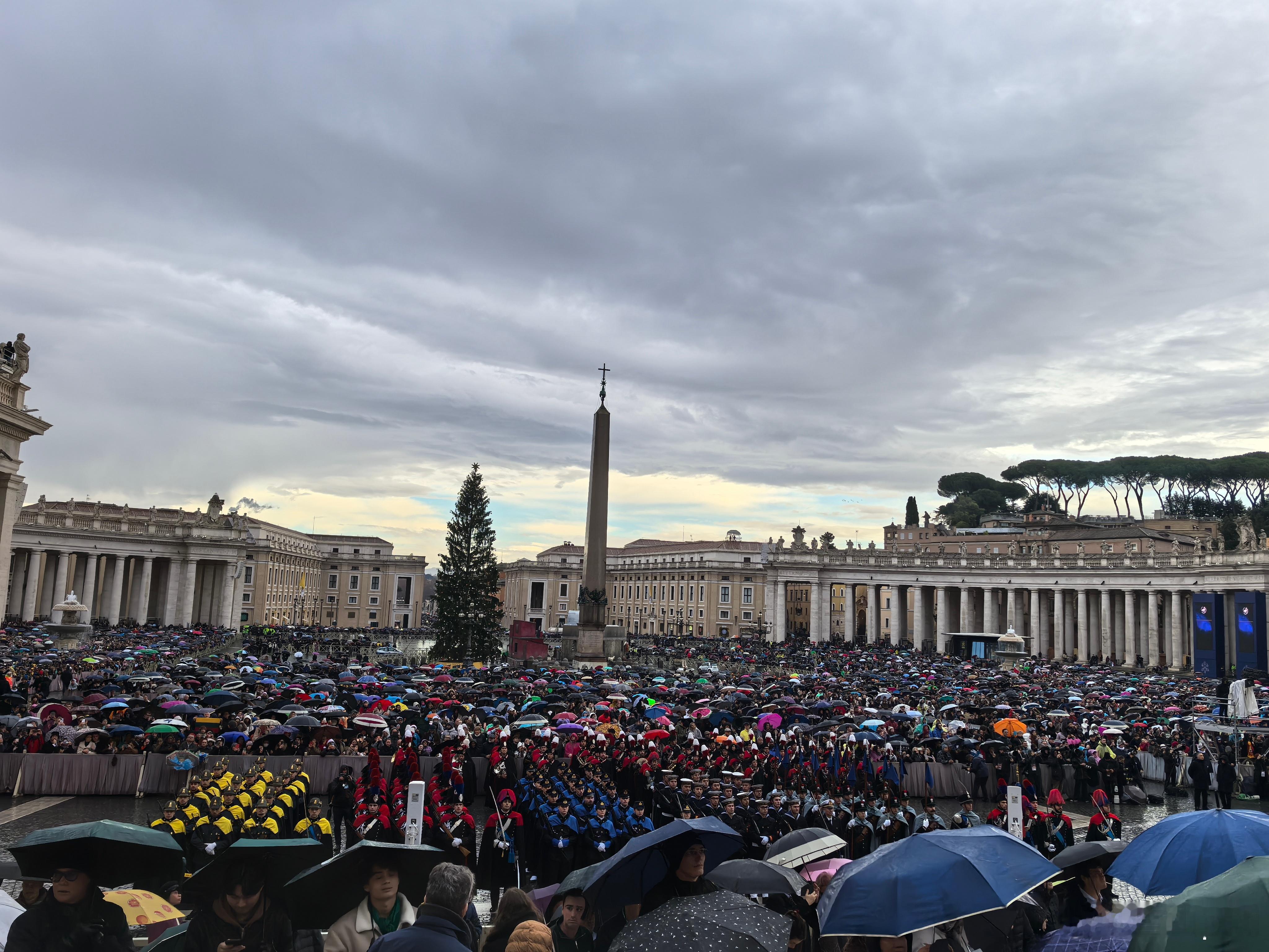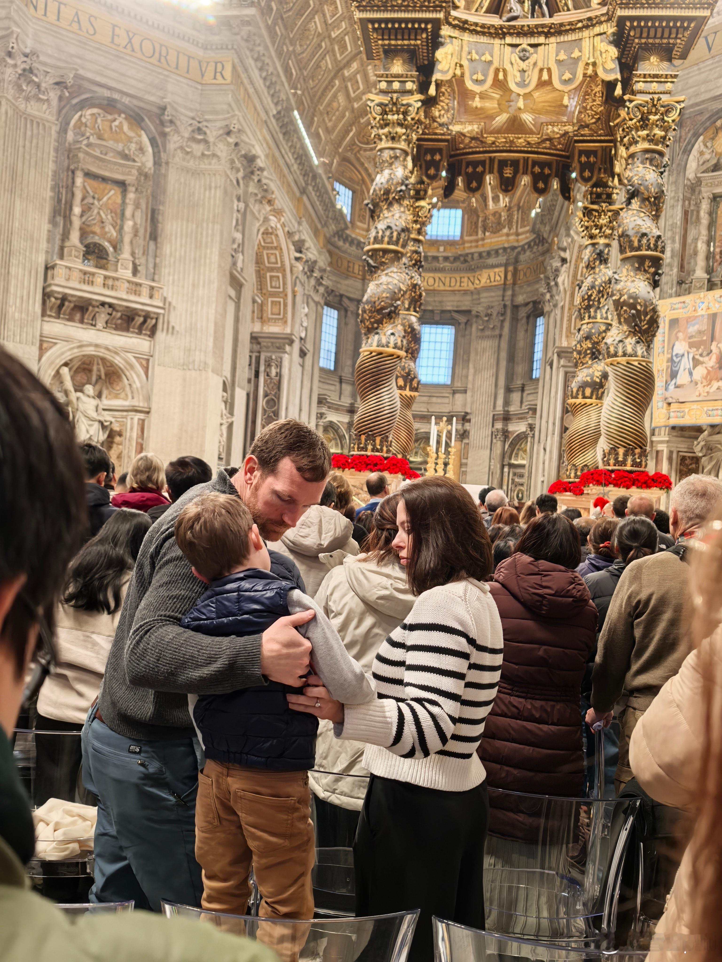 梵蒂冈圣彼得大教堂,25日圣诞主日弥撒此次是31年来首位由教宗亲自主持圣诞日间弥撒(上次为1994年若望保禄二世)。何时有幸!我们坐在大厅内侧翼,弥撒结束后发现院子里站满了信众在小雨中等候教皇露天弥撒为普天下祈福。教宗引用圣经说“凡是爱弟兄的,上帝必住在他(她)里面”!