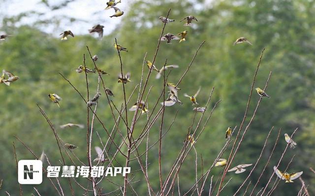 12月23日,福建天宝岩国家级自然保护区内再现黄雀群,约有130只。它们一会儿像一首歌叽叽喳喳飞上天空,一会儿像一阵风缓缓飘落枝头,在天宝岩保护区的山林中蹁跹起舞。