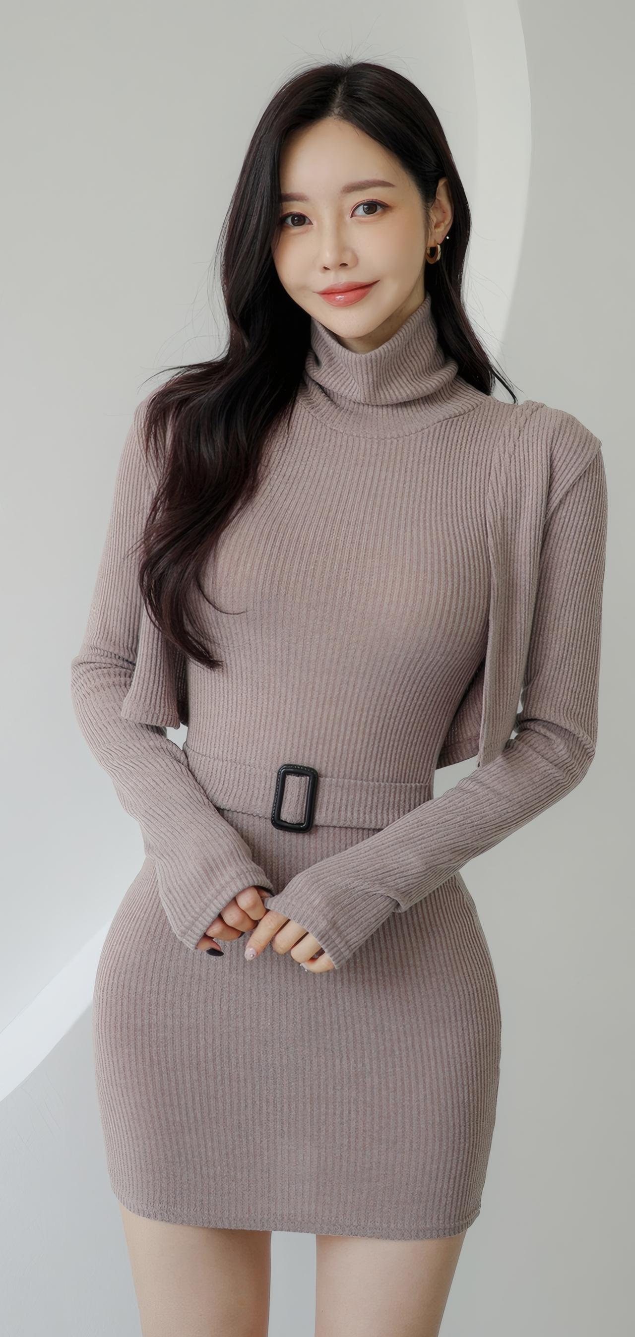 都市时尚女孩,白色高领毛衣裙,优雅气质,城市背景,高跟鞋,完美搭配。