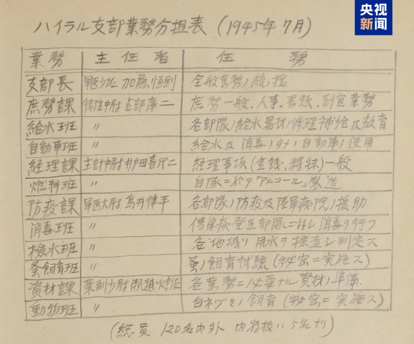 笔供中明确了海拉尔支队编制约120人,表面承担防疫、水过滤设备维护等任务,实则以白鼠养殖、跳蚤培育为核心机密工作。海拉尔支队设立初衷为“对苏联细菌战的前进据点”。