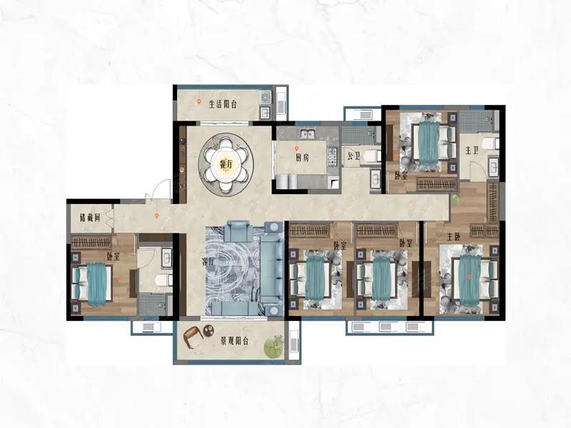 该怎么去形容这个196.88㎡的房子才最贴切呢?因为它南向的开间面属实是太过于宽敞了,三个极致的卫生间,它独立的餐厅和厨房的动线也非常的近,这房子到处都是精致的细节。