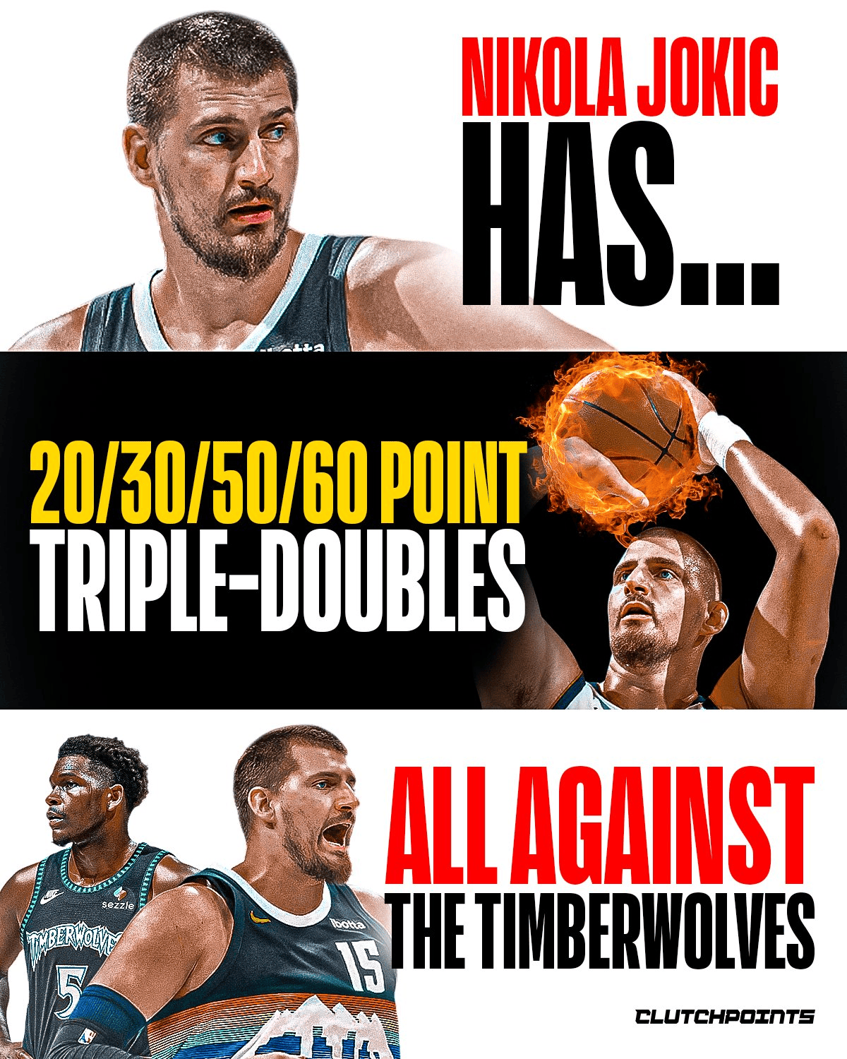 约基奇如今已完成了一项面对森林狼的历史性壮举:分别砍下20分三双、30分三双、50分三双、60分三双,无论是常规赛还是季后赛,“小丑”都证明了无论防守方采取何种策略,他都是一股不可阻挡的力量。人们常说熟悉会滋生轻蔑,但对约基奇来说,熟悉只会创造历史。