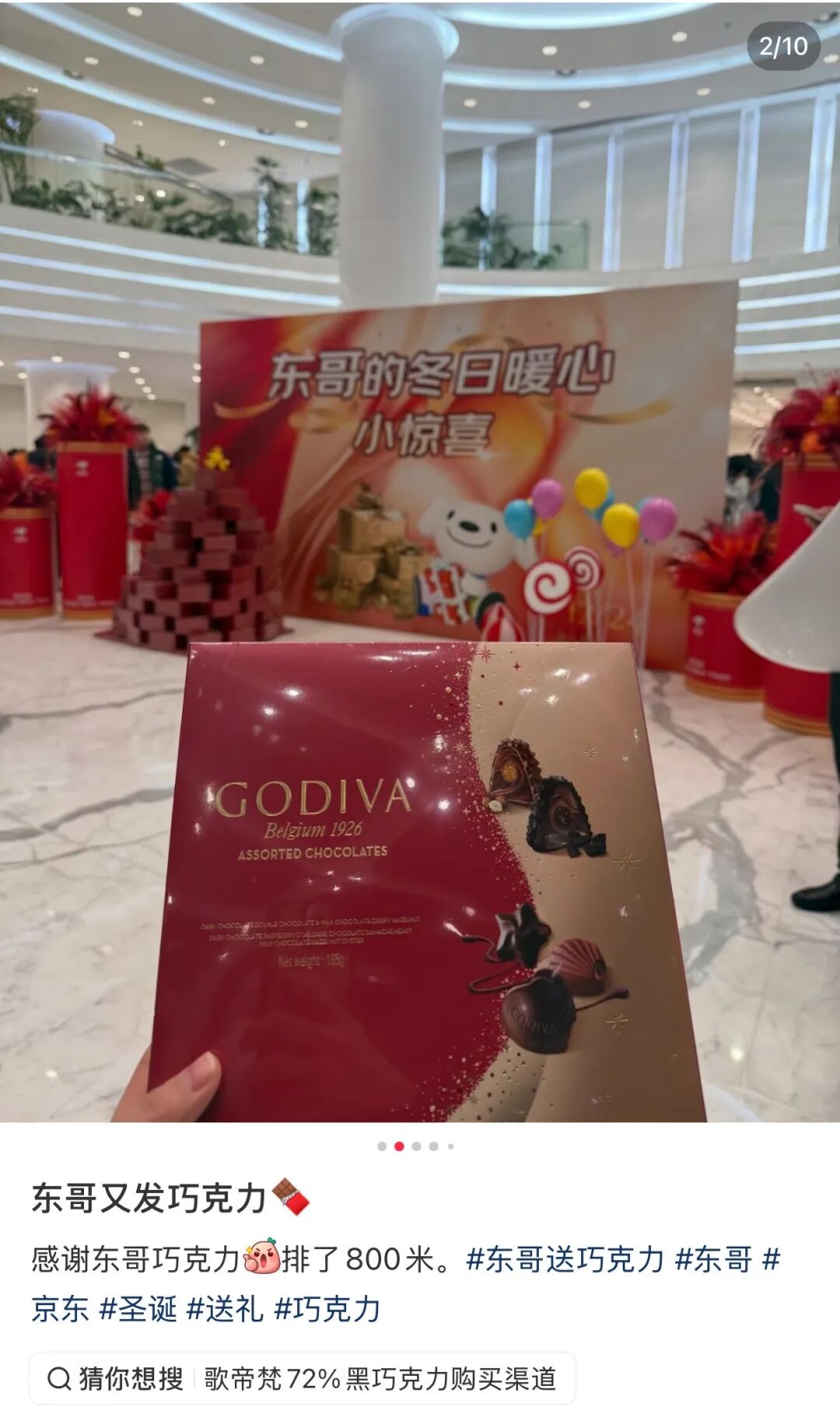 就在公布年终奖计划前一日(12月24日),刘强东自掏腰包购买十万盒GODIWA巧克力作为新年福利,刷屏全网。这已经是刘强东第二年送上惊喜,此前刘强东还请骑手吃肯德基、必胜客。