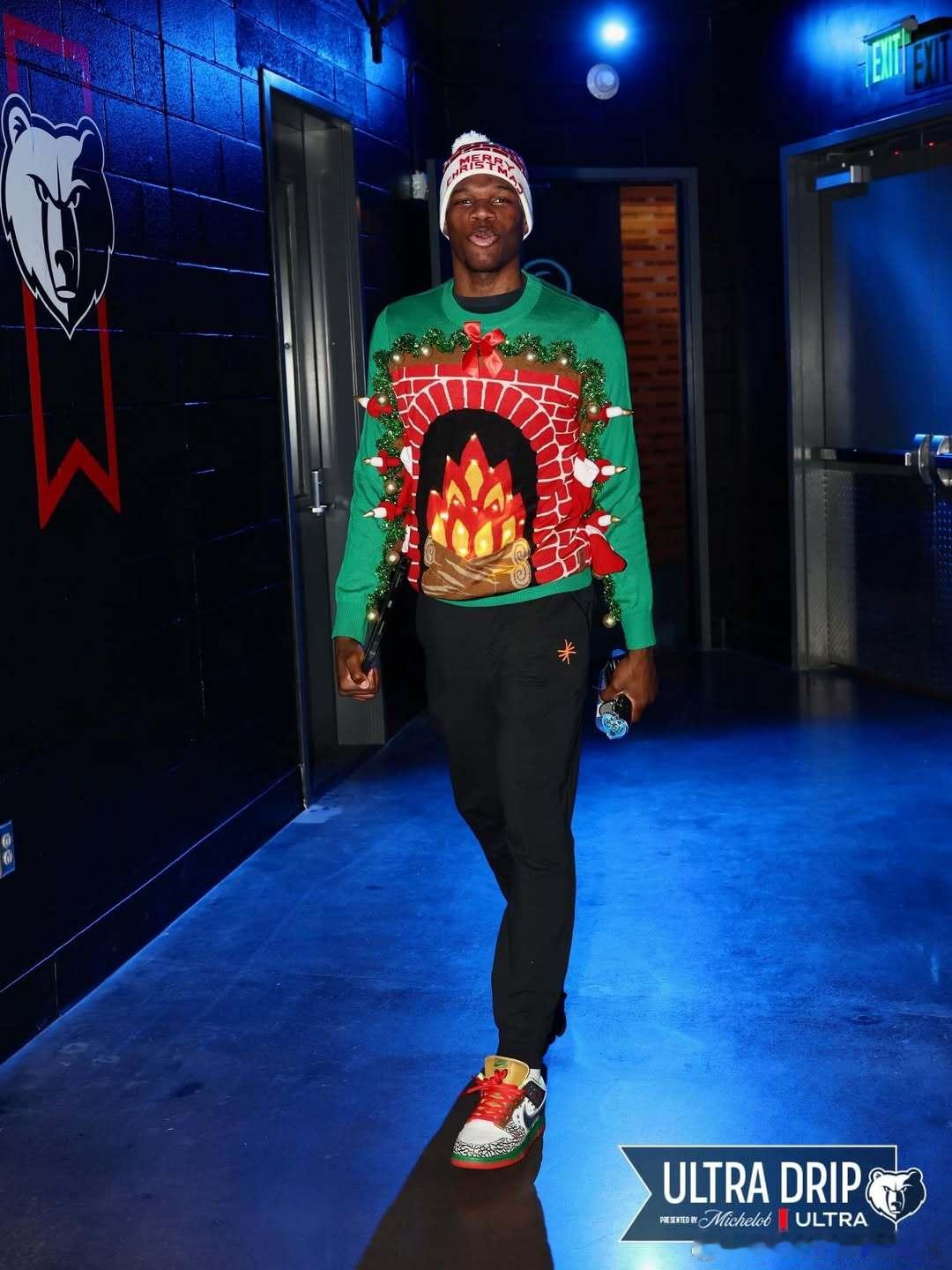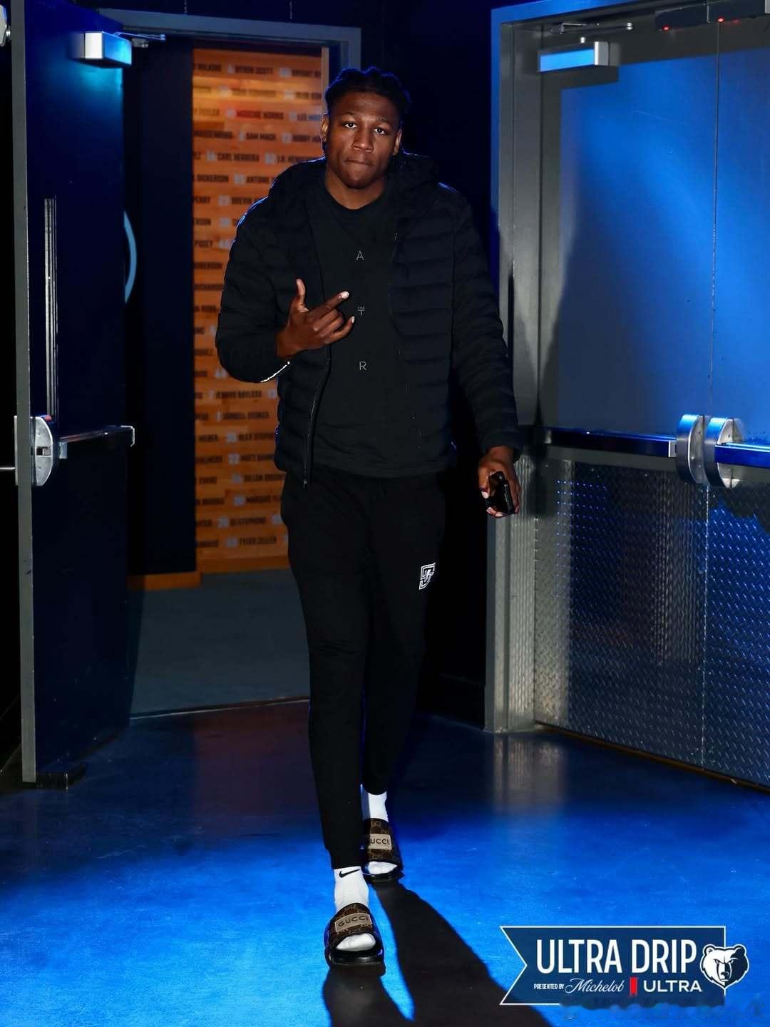 灰熊球员赛前装扮。