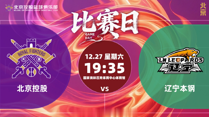 虎扑12月27日讯今日CBA常规赛:辽宁男篮将对阵北控男篮。