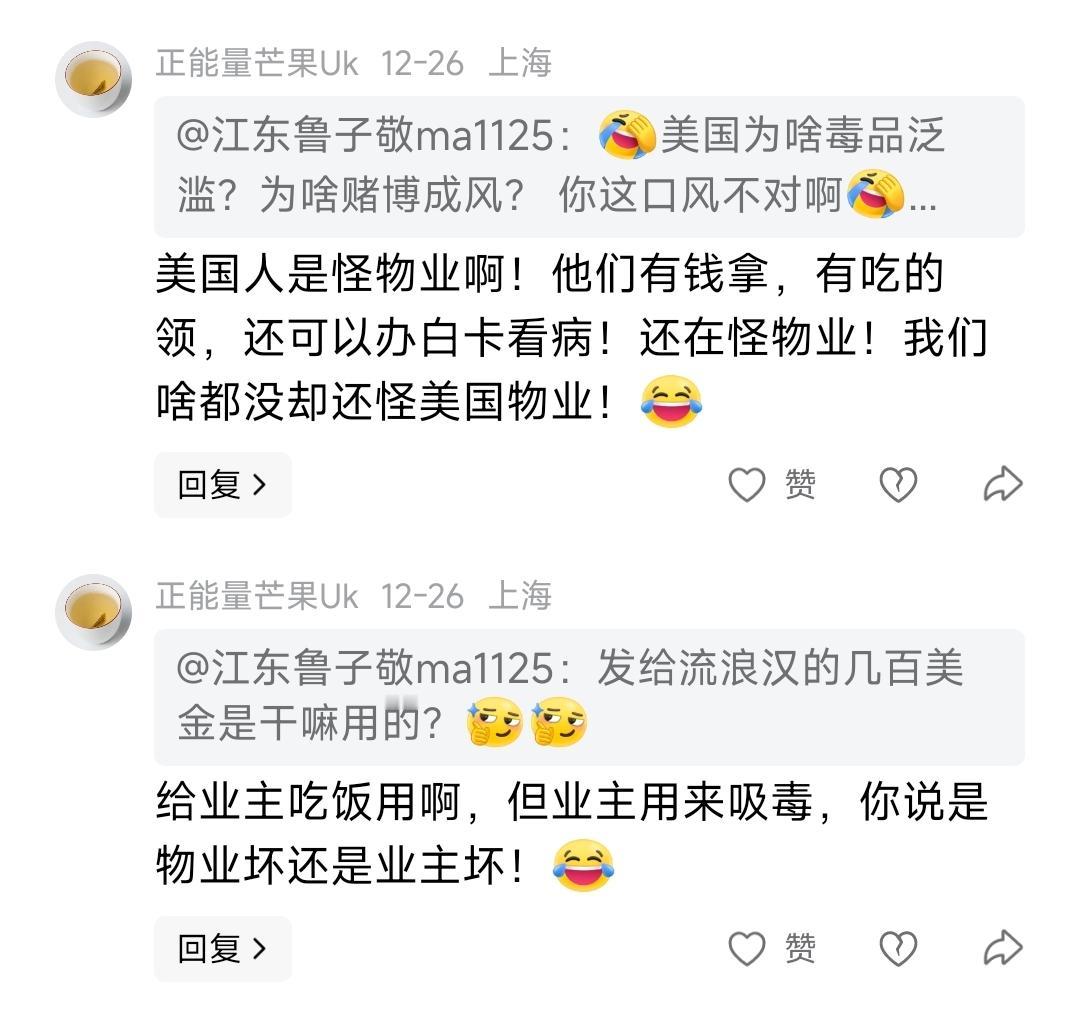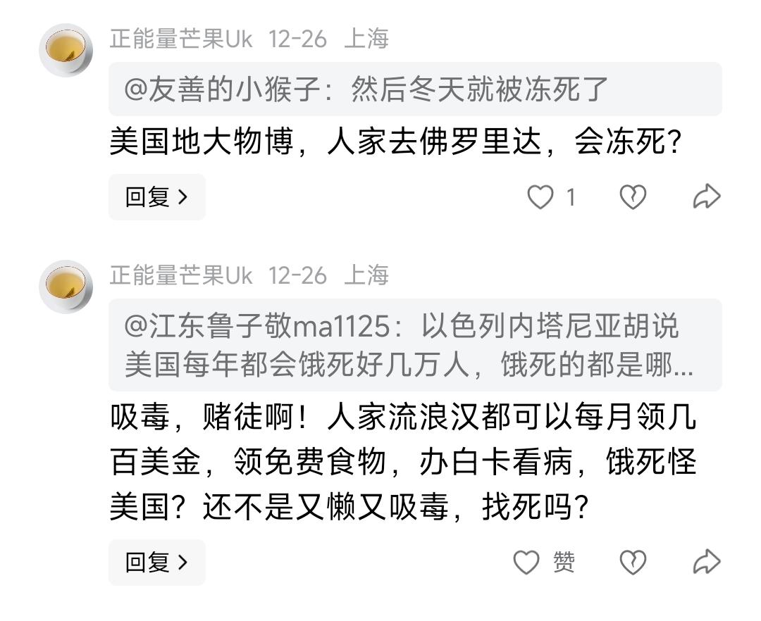 这位正能量芒果嘴巴能这么硬。是因为他把主义和生意分得很清楚。嘴上把美国舔出花来都没事,行动上是呆在国内。在中国,美国的斩杀线又斩不到,他当然可以丧事喜办,把美国不好的地方照样吹上天。