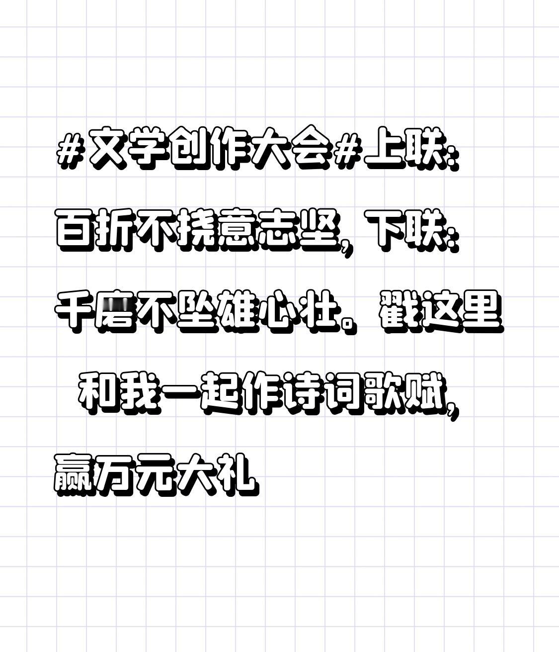 文学创作大会 这上联“百折不挠意志坚”和下联“千磨不坠雄心壮”对仗工整,气势十足啊!文学创作大会搞这对联活动挺有意思。在文学创作里,对联就像一颗璀璨明珠,短短几个字,却能展现出无尽的韵味和智慧。 以前我参加过类似创作活动,绞尽脑汁想句子,那种苦思冥想后灵感迸发的感觉太爽了。这次还有万元大礼,谁不想去试试呢?说不定自己的才华能在这儿大放异彩,创作出让人拍案叫绝的诗词歌赋。我这就去活动里大展身手,说不定大奖就是我的啦!