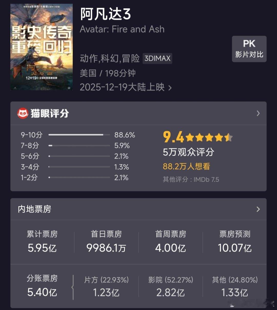 阿凡达3票房这么低?猫眼预测总票房才过10亿。你们看了吗?