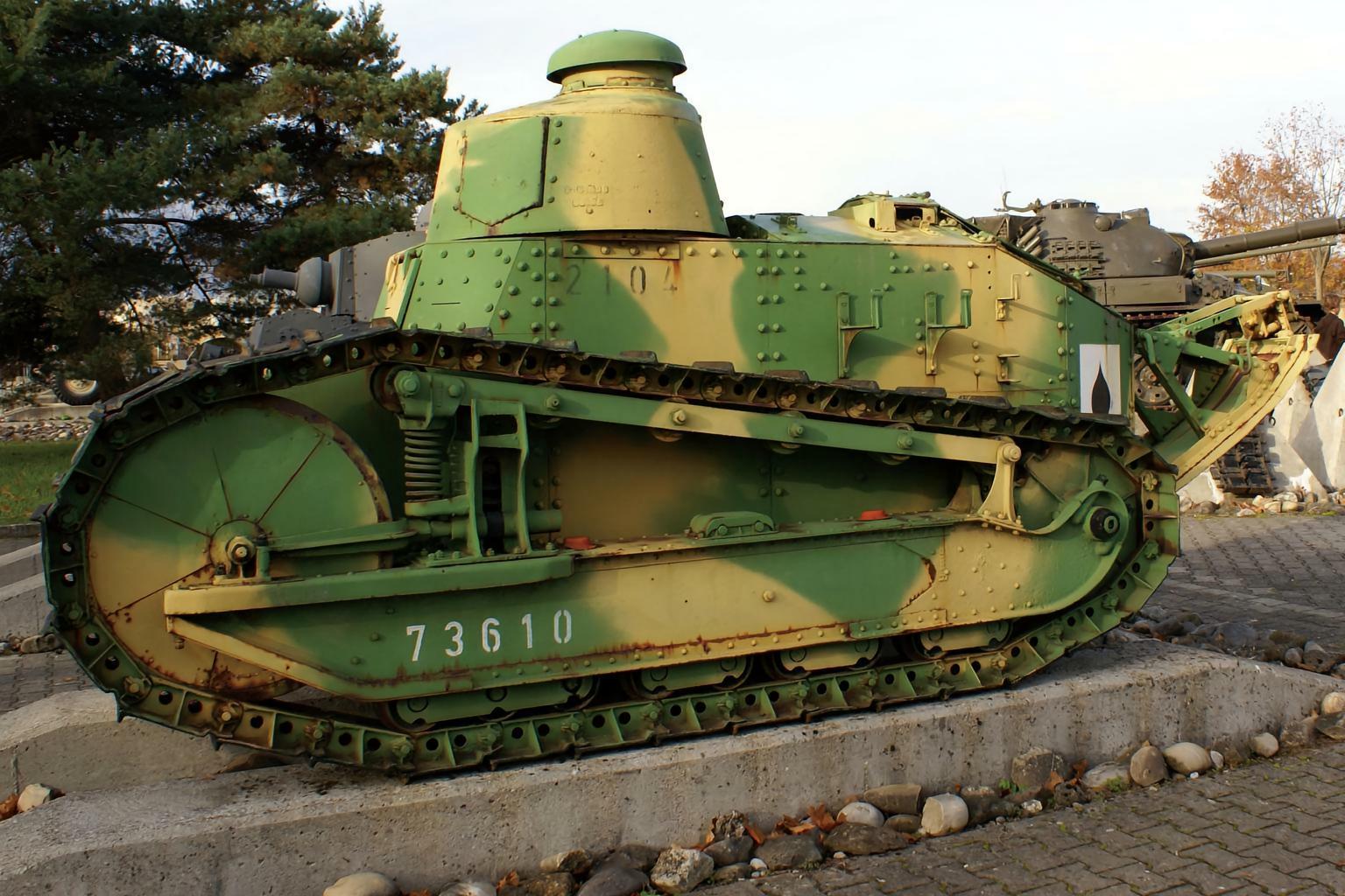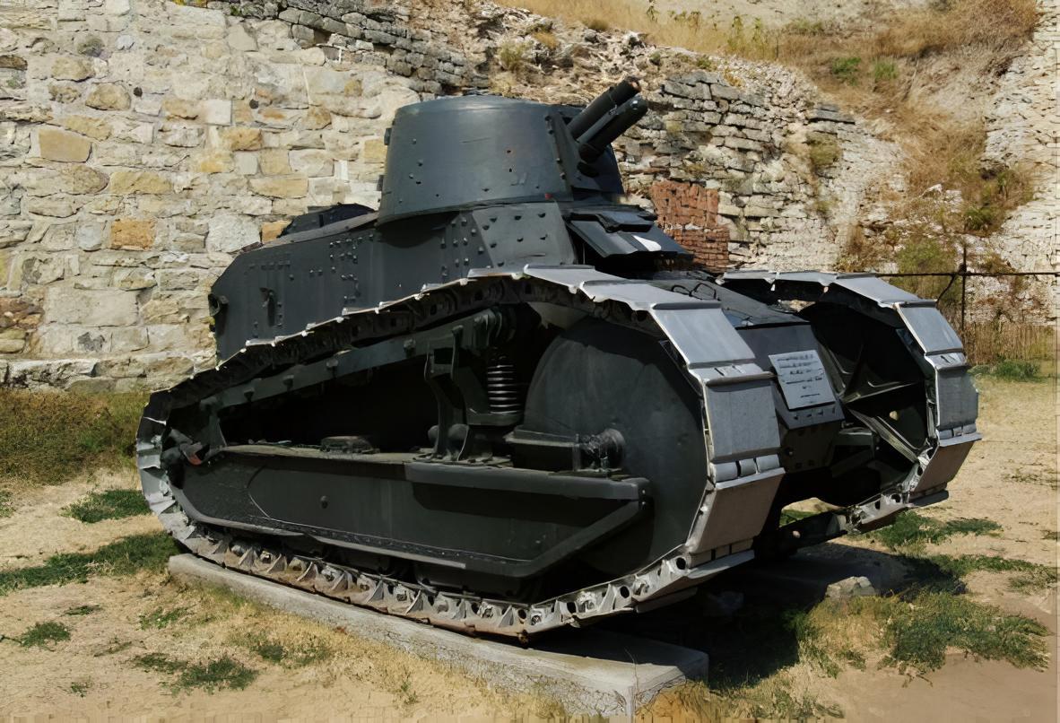 法国雷诺FT-17轻型坦克雷诺FT-17轻型坦克是法国在一战时研制的轻型坦克,它是世界上第一款安装旋转炮塔的坦克,被著名历史学家史蒂芬·扎洛加称为“世界第一部现代坦克”。该坦克于1918年3月开始装备法军,美国、波兰、巴西、芬兰、日本、荷兰、西班牙、比利时和瑞士等国也曾购买过这种坦克。为方便批量生产,FT-17坦克的车身装甲板大部分采用直角设计,便于快速接合。FT-17坦克首次采用发动机、战斗室、驾驶舱各以独立舱间安装的设计,这样的设计让发动机的废气与噪音被钢板隔开,改善了士兵作战环境。为了改善作战人员的视野与缩小火力死角,因此设计了可360度转动的炮塔。这些创新的实用设计日后成为各国坦克设计的核心概念。FT-17坦克有4种基本车型:第一种装备8毫米机枪。第二种装备37毫米短管火炮。第三种为通信指挥车(取消了炮塔)。第四种装备75毫米加农炮,未装备部队。|