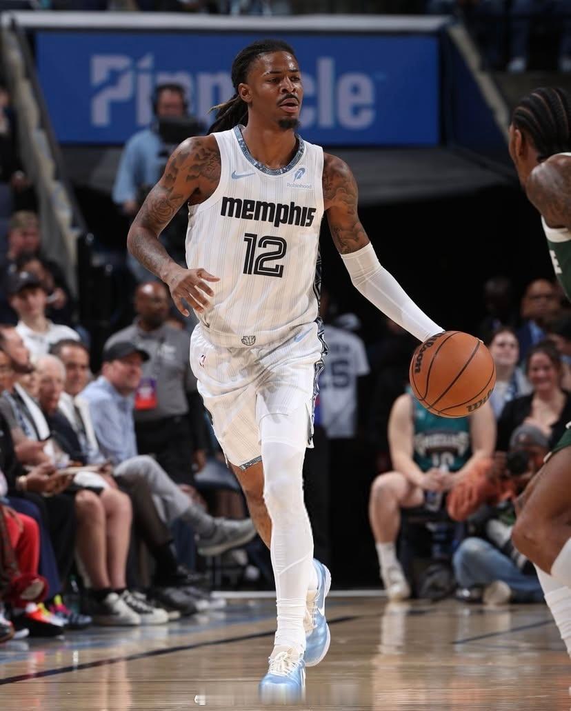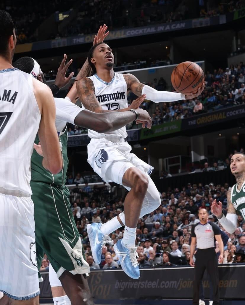 莫兰特今日回归赛场帅图!上脚的Ja3新配色不错~雄鹿vs灰熊莫兰特孟菲斯灰熊