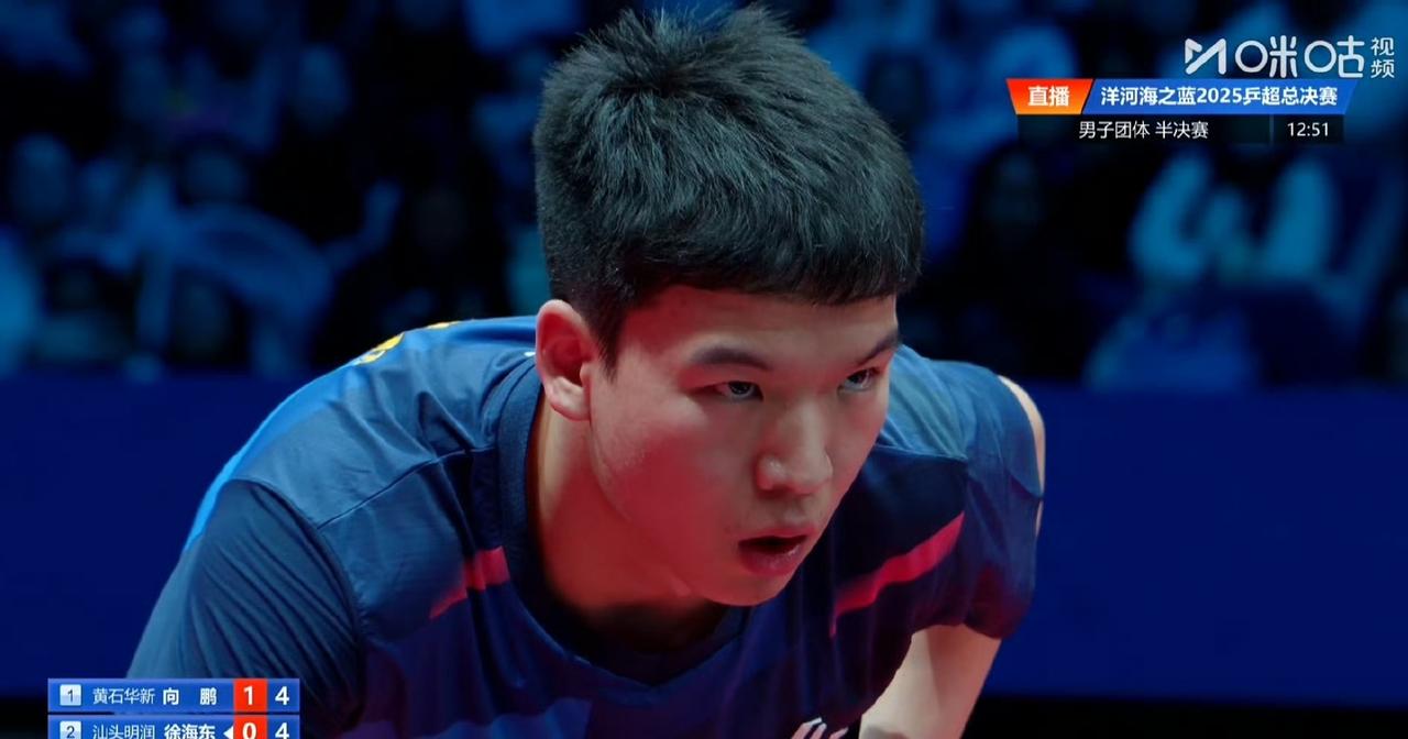 向鹏好样的! 林诗栋缺席向鹏一人抗衡汕头明润! 2025中国乒超联赛总决赛第一场半决赛,黄石基地对阵汕头明润。 林诗栋缺席,向鹏独挑大梁,两次落后,两次帮助俱乐部扳平比分!向鹏3-1陈垣宇 【11-6,11-6,5-11,11-6】、向鹏3-2徐海东【11-9,7-11,11-8,8-11,11-6】。 决胜盘,薛飞3-1陈垣宇,黄石基地3-2汕头明润,晋级男团决赛。