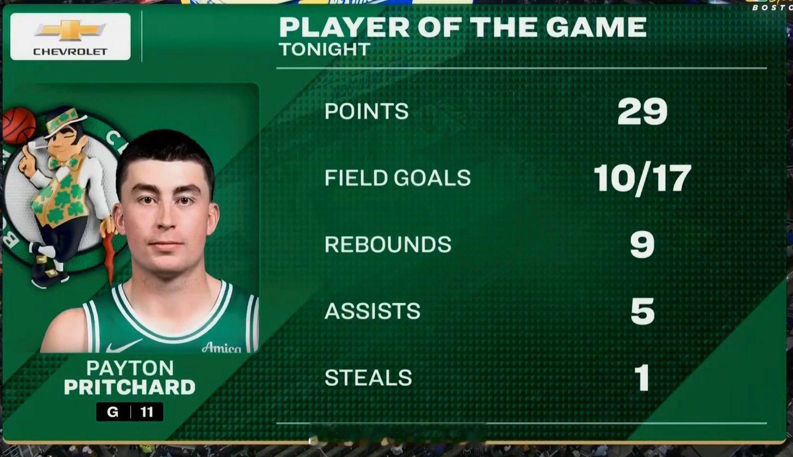 佩顿-普里查德首发出战38分钟,全场17投10中,砍下29分9篮板5助攻1抢断。