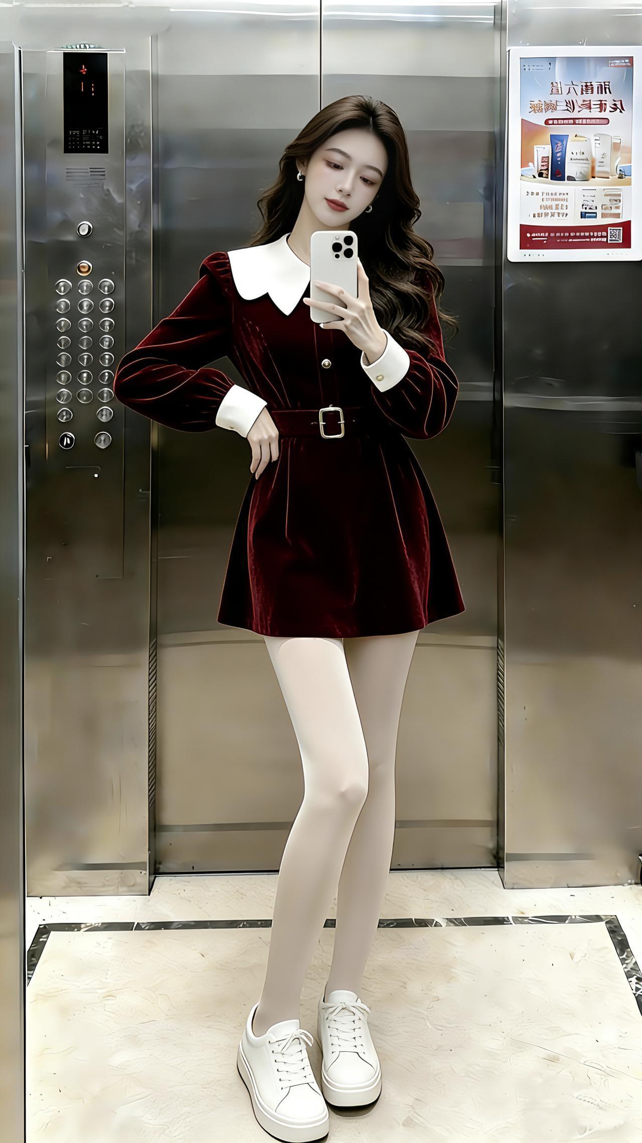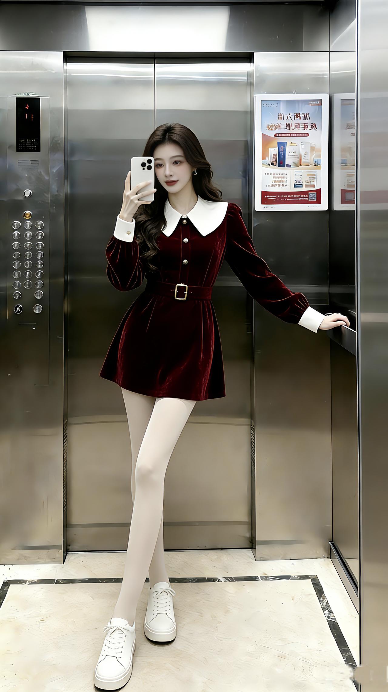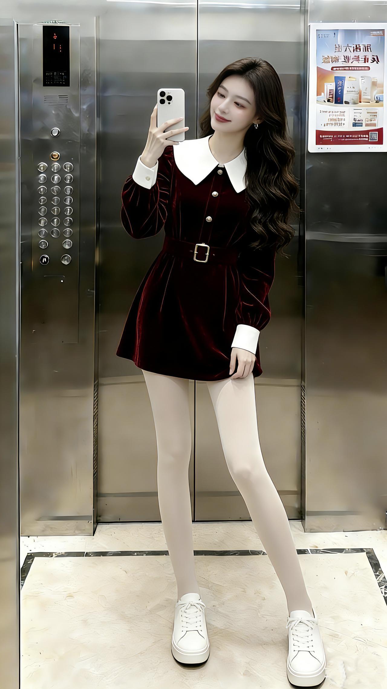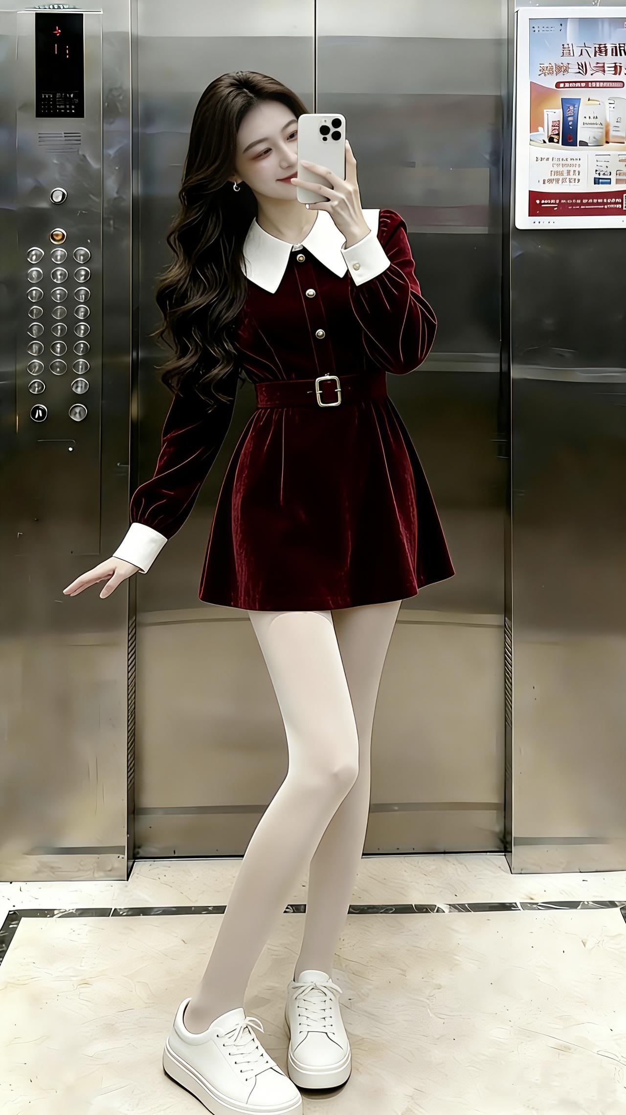 酒红丝绒裙+大翻领撞色,丝绒质感自带贵气滤镜,收腰设计掐出好比例,浅丝+厚底小白鞋中和优雅感,往电梯里一站就是甜而不腻的复古画报女主✨御姐 光腿神器 日常分享 好身材秀秀秀 穿搭 @DOU+小助手 @上热门🔥🔥🔥 @抖音小助手