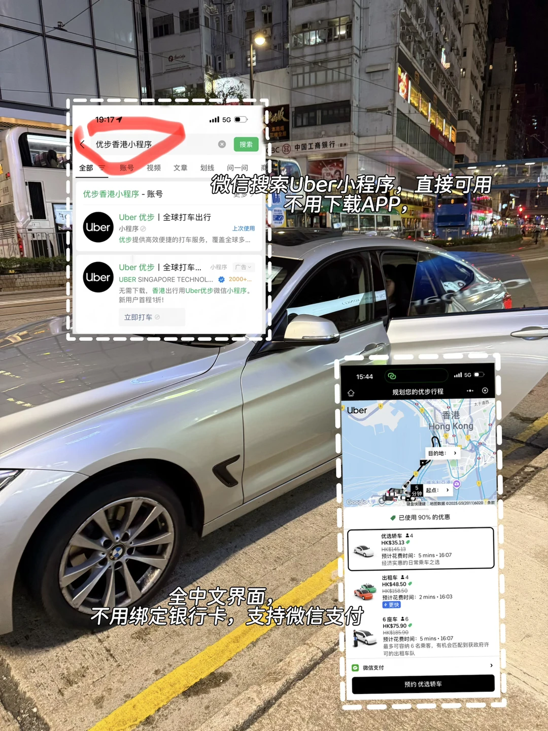 好在朋友告诉我香港用Uber微信小程序就能打车,全中文界面,直接微信支付就能用,完全不需要下载App,也不用绑定外币银行卡,省去了很多繁琐的操作步骤,对我们这种游客真的太友好了!🙌