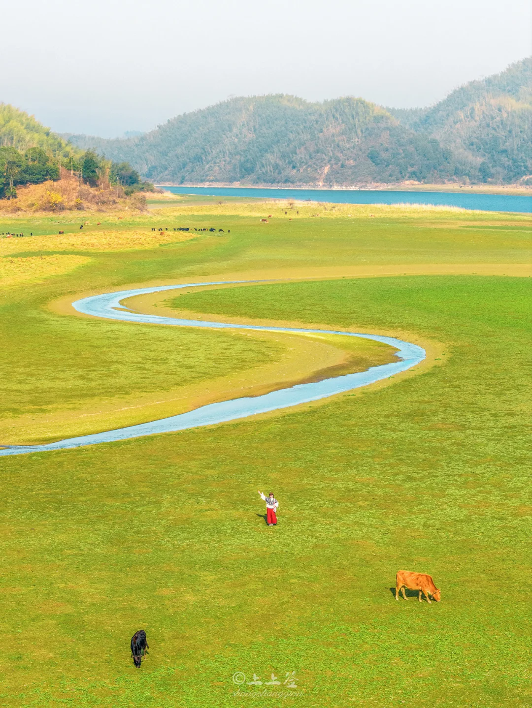 眼前的隽水河与草地牛羊组成了画一样的美景,有点儿巴音布鲁克草原的感觉!!真的特别美!!还🉑钓鱼🎣,这个季节还有一些来过冬的候鸟。
