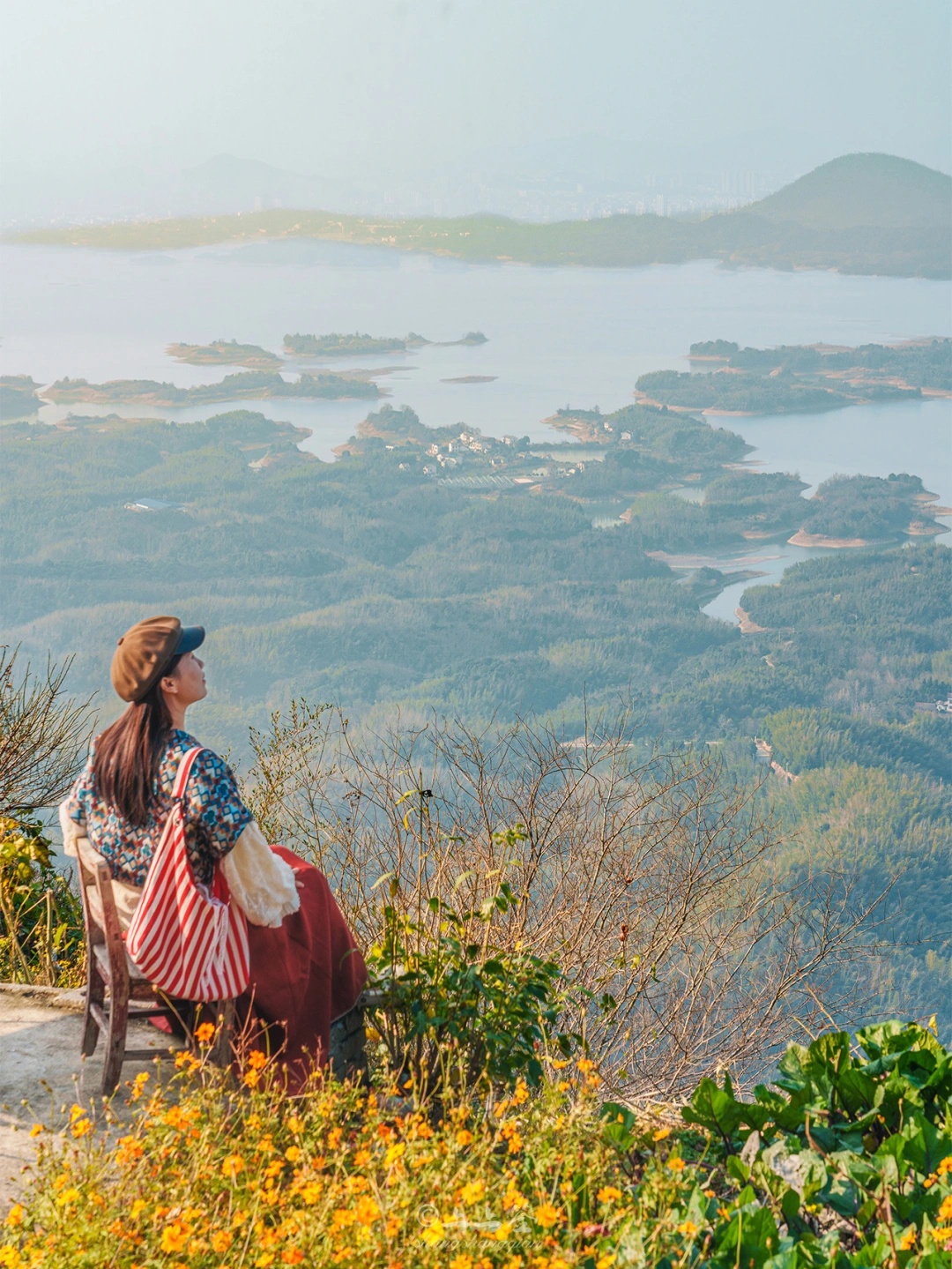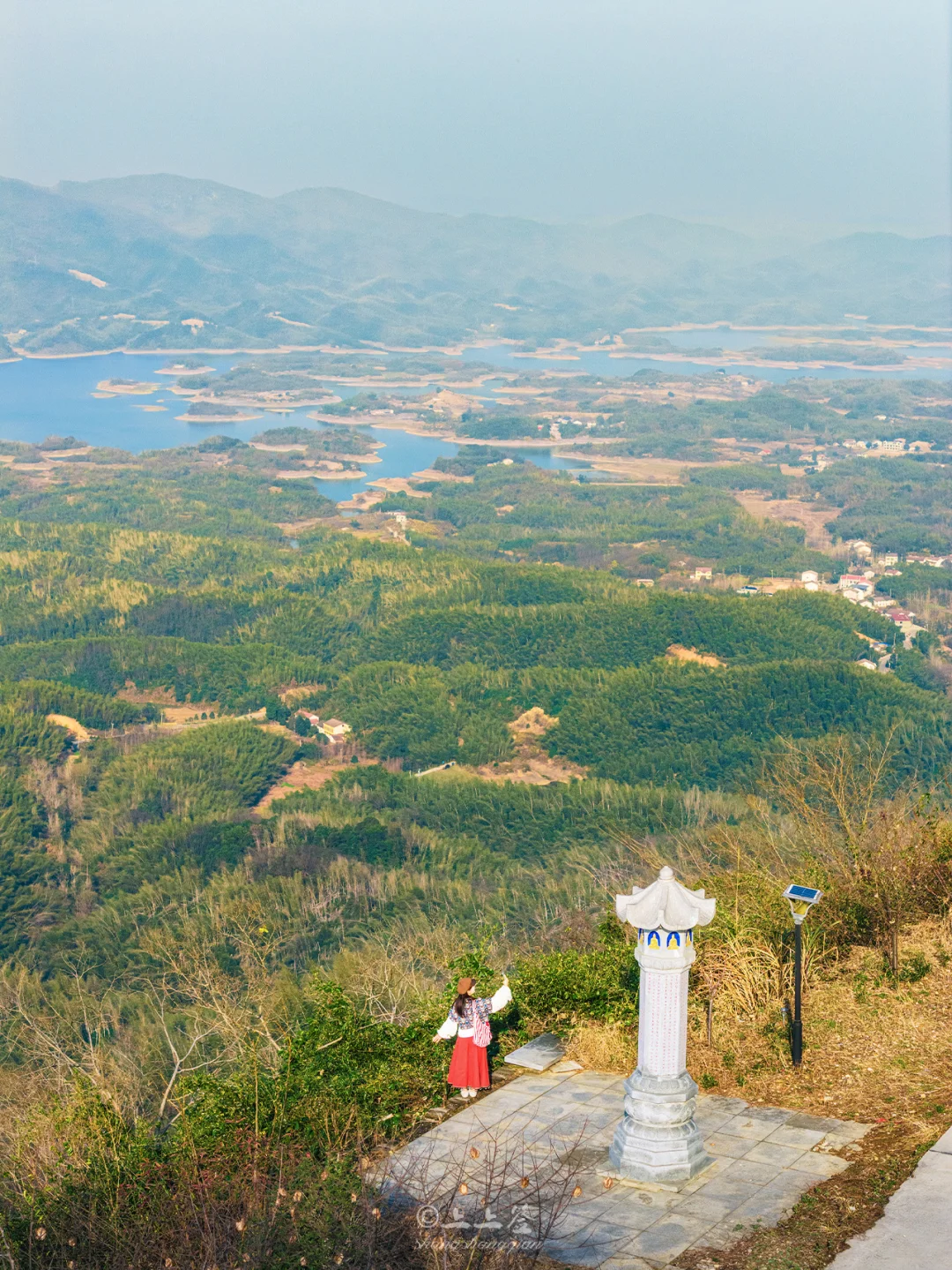 不是国外也不是千岛湖,开车直达的山顶寺庙,坐在寺前俯瞰眼前陆水湖的群岛,真的太惬意了!!雪峰山观景台就在山的另一面开🚗十几分钟可达观景也很不错。