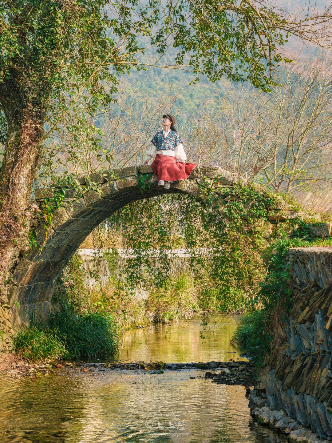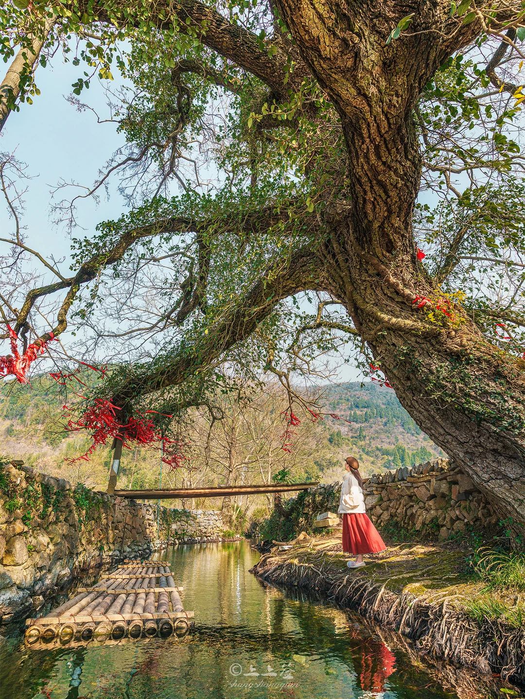 村子不大,坐落于葛仙山下(已经开始期待春天的野樱花了)百年古树古桥古井,静谧小众的古村很有小时候的感觉,村前桥下的水是真泉水清澈见底,冬暖夏凉!