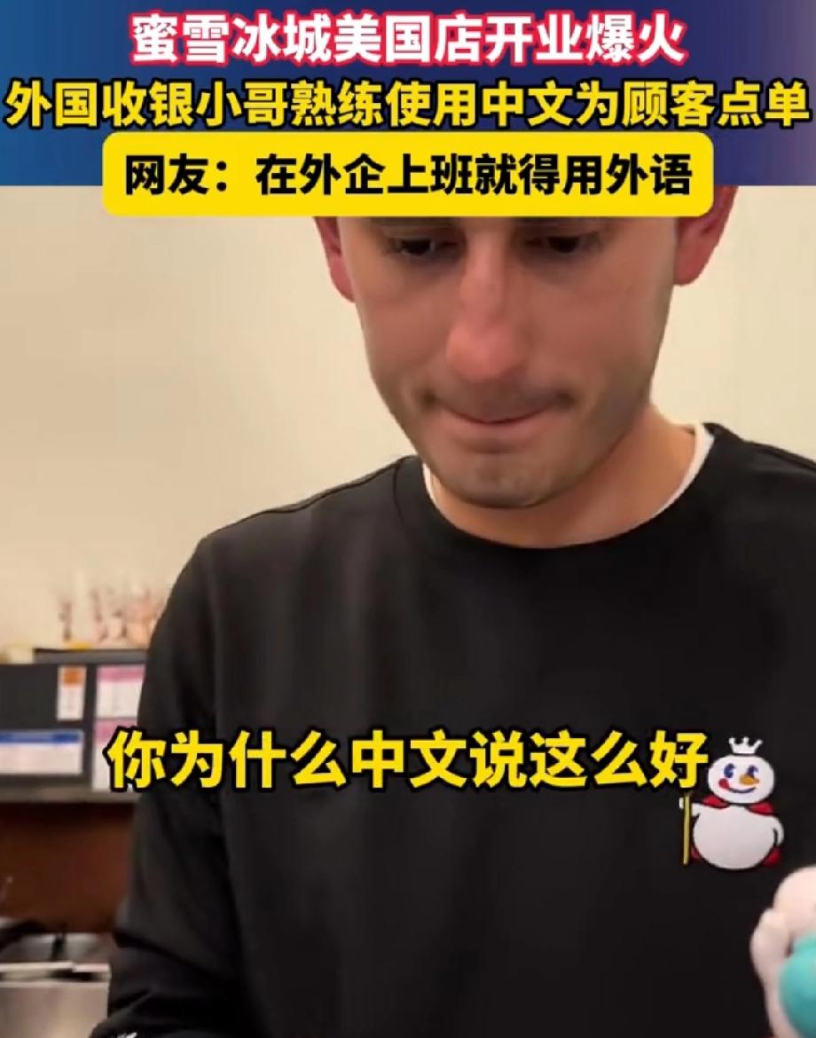 蜜雪冰城美国店外国小哥用中文点单 蜜雪冰城杀进美国纽约和洛杉矶,这热度可真是高,外国小哥都用中文点单啦!国内3块的柠檬水,在美国卖3.99美元(约28块人民币)。更离谱的是还有200%糖度选项,比国内全糖还甜一倍。有人觉得这是喝糖水,但其实是蜜雪冰城故意为之。 这招很绝,200%糖度吸引了网红和想发视频的人,话题裂变效果比投百万广告都管用。而且蜜雪冰城成本控制强,自建工厂、砍掉中间商,即便价格涨了点,在曼哈顿第五大道这地段,相比星巴克还是很有竞争力。它在东南亚开了四千多家店,现在进军北美,看来是想全球扩展,这野心真不小!