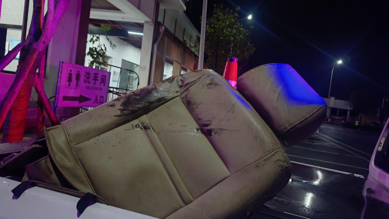 12月23号晚上,张师傅驾车行驶在沪昆高速麻江服务区入口时,被前方货车掉落的座椅砸中,车辆受损严重。黔东南州高速交警迅速介入调查处理,我们一起来看看是什么情况?
