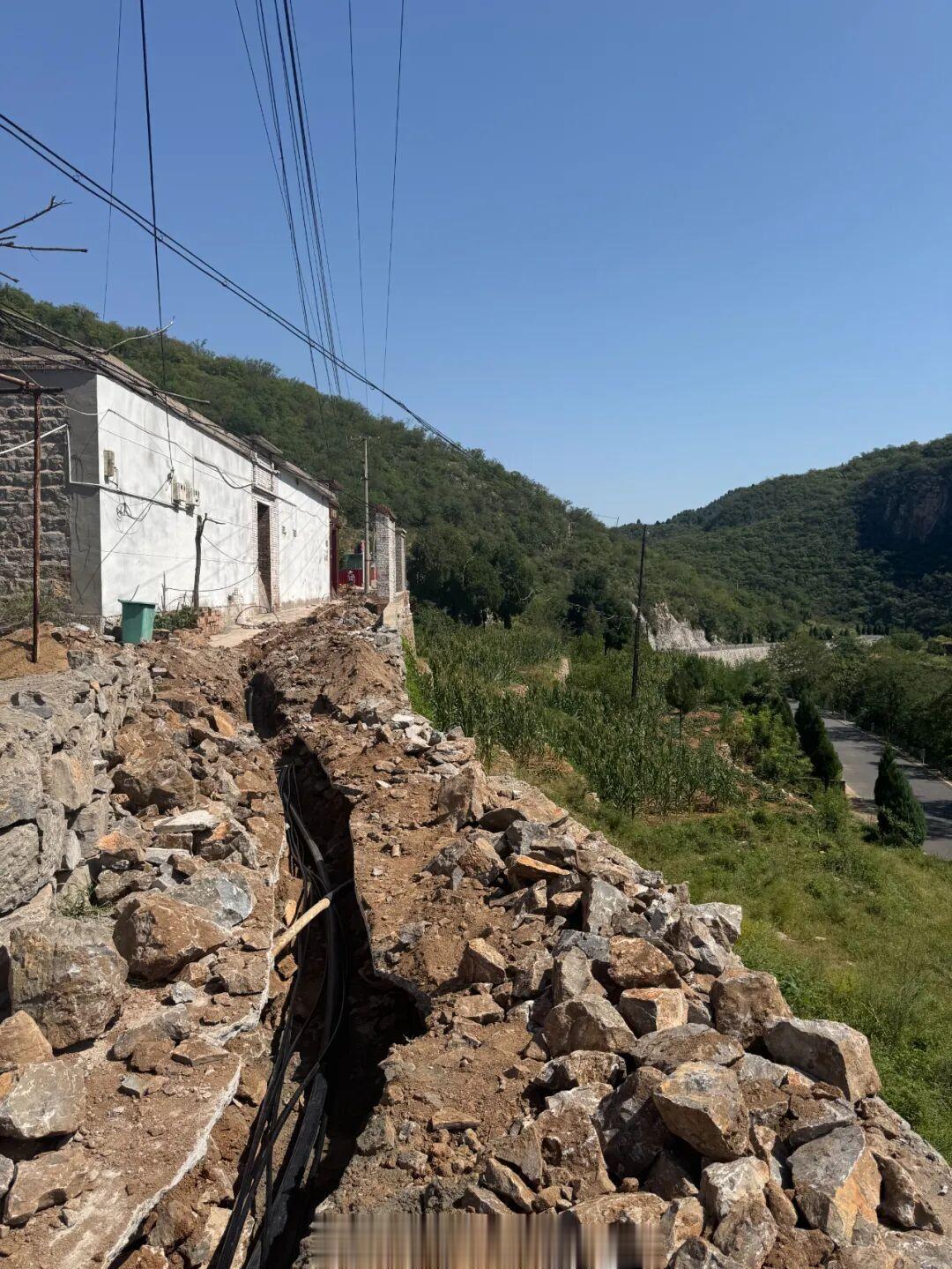 武安市前水峪村在墙堰上管沟开挖。高坤摄