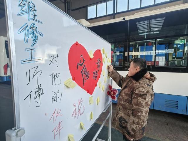 “拧好每一颗螺丝,护好每一趟出行”“拆修补焊皆责任,平安送达是初心”“匠心维保无小事,细节筑牢安全线”“新岁愿车辆零故障,乘客皆平安,我们勇担当”……一句句真挚的寄语,既是对日常工作的生动诠释,也饱含着维修职工对公交事业的热爱与坚守。修理工师傅张国龙摩挲着便签上的字迹,感慨道:“我们修的不是车,是万千市民的平安路。每次看到自己维保的公交车安全运行,心里就特别踏实。这个寄语墙,让我们的责任被看见、被珍视。”青年维修工李志刚完成一辆公交车的制动系统检修,便写下“以青春赴使命,用技能护平安”,他说:“跟着师傅们学习的日子里,最难忘的就是他们‘差一点都不行’的较真劲儿,这也是我要坚守的初心。”