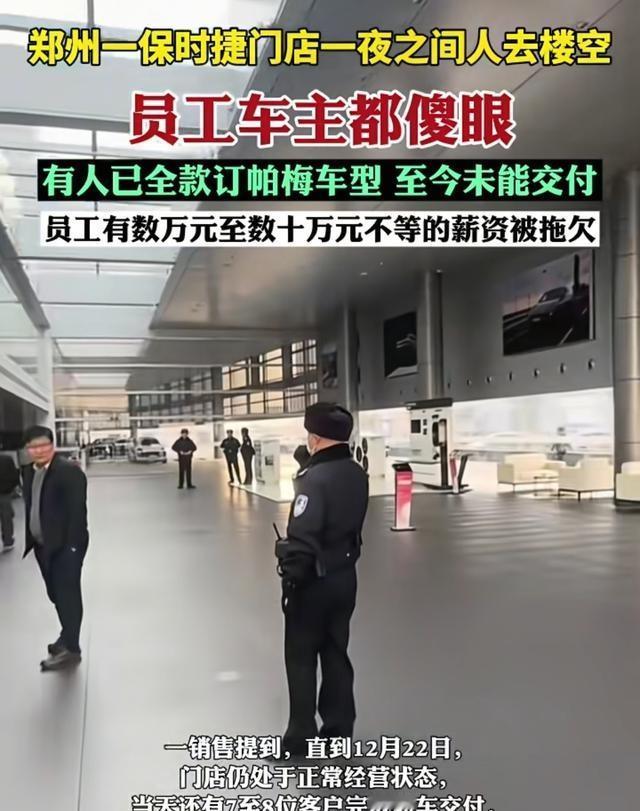 最近,郑州中原保时捷 中心突然停业的消息,在网上讨论得挺热闹。东安控股集团发了份通知说,因为市场需求下滑,大家花钱更谨慎,行业里又打起了价格战,生意做不下去了,所以决定暂时关掉郑州、贵阳这3家门店,员工工资先按最低标准发着。 通知里还说,30天内会把欠员工的钱都清掉,60天里把之前欠的工资都补上,社保也会正常给交上。对于客户担心的车子合格证问题,现在正在和银行、厂家那边沟通,争取把这事儿解决了。欠供应商的钱、客户交的定金,也会一点点慢慢处理。集团还特意说不是“跑路”,让大家别瞎传谣言。 从现场拍的照片能看到,政府部门已经过去登记情况了。这家以前可是挺风光的高端车品牌,现在却落到了店里没人、东西都搬走的地步,真让人觉得可惜。有网友开玩笑说:“连保时捷都扛不住了?”还有车主着急地问:“我车子的合格证到底能不能拿回来啊?” 现在这事儿还在处理,集团说会按计划一步步解决的。这件事也给大家提了个醒,平时花钱的时候,得看看商家靠不靠谱,别让自己的钱打水漂。你觉得这家店还有机会挺过来吗?评论区聊聊~