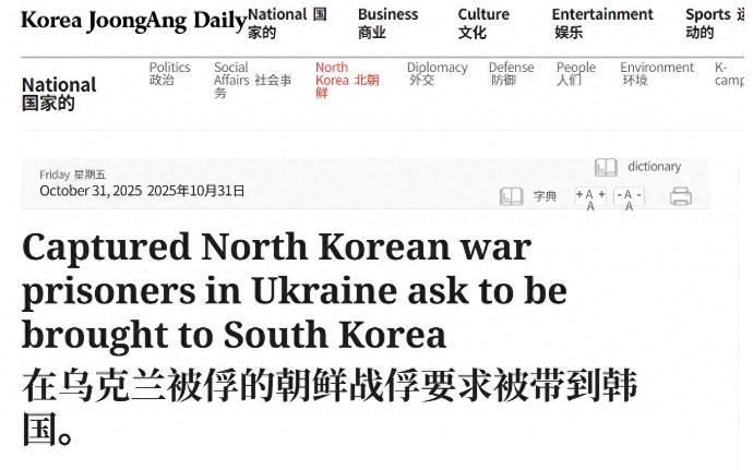 这下朝鲜彻底尴尬了!在近期,有两名在乌克兰被俘的朝鲜士兵,向首尔的一家人权组织递交了一封信,请求庇护:“我们坚信我们永远不会孤单,我们视韩国人民为自己的父母,兄弟姐妹,我们决定投入他们的怀抱”。 麻烦看官老爷们右上角点击一下“关注”,既方便您进行讨论和分享,又能给您带来不一样的参与感,感谢您的支持! 最近从乌克兰那边传来消息,两名在库尔斯克战场被俘的朝鲜士兵,向探访的韩国媒体表达了想去韩国的想法。 这事儿得从 2024 年说起。当年 8 月,乌克兰军队越过边境进入俄罗斯库尔斯克州,引发持续数月的库尔斯克之战。2024 年 10 月,朝鲜外务省副相首次回应朝军参战传闻时称,若相关情况属实,将是符合国际法规范的行为。2025 年 5 月,朝鲜与俄罗斯官方正式确认,两国军队在库尔斯克进行了联合作战。 根据韩国媒体披露的信息,这两名士兵于 2025 年初在库尔斯克地区的战斗中受重伤后被俘,其中一人下颚受伤留下骨骼变形。他们向韩国媒体表示,在战俘营中曾遭乌克兰看守围殴,精神状态不稳定,希望能被带到韩国生活,甚至有组建家庭的愿望。 他们的战场位于库尔斯克方向,这一区域曾是俄乌战事的激烈区域。朝鲜特战部队在此战场有专门的反无人机战术,士兵需组成三人小组协同作战。两名被俘士兵所在的部队在战斗中遭遇乌军打击,两人因重伤失去意识后被俘虏。 被俘后,两人在战俘营中接触到韩国访客,一名韩国议员曾在 2025 年 2 月访问他们,其中一人明确表达了想在韩国安家落户的愿望。韩国方面已告知乌克兰,愿意接收这两名朝鲜战俘,但截至 2025 年 11 月,乌克兰尚未有移交战俘的明确意向。 这件事看似是两名普通士兵的个人意愿表达,实则反映了俄乌冲突中的战俘处置问题。朝鲜官方已公开纪念参战官兵,金正恩亲自到机场迎接阵亡官兵遗体,并为将士授勋,将参战定位为 “保卫主权的正义行动”。俄罗斯方面也对朝军的作战表现给予了较高评价。 对于朝鲜而言,公开的联合作战声明与高规格纪念活动,明确了其对参战的立场;而两名被俘士兵的个人意愿,并未改变朝俄合作的整体态势,也未对朝鲜内部的宣传叙事造成实质性冲击。