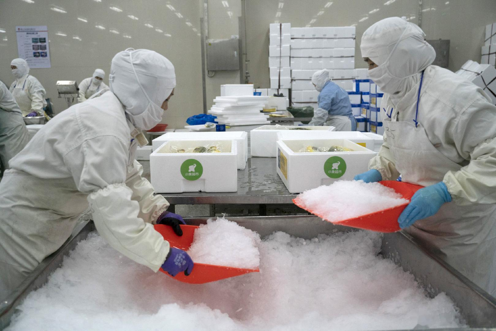 一是标准共建,定义出厂品质。小象超市独创了“三测四看”流程,在原料区、加工区、包装区,对鱼体温度进行三次检测,始终按照温控要求执行。同时,通过固定的流程,检验鱼体表粘液、眼球澄明度、鳃丝色泽与鱼体完整性,这些曾经依赖老师傅经验的感性判断,被转化为必须记录在案、可追溯的检查项。