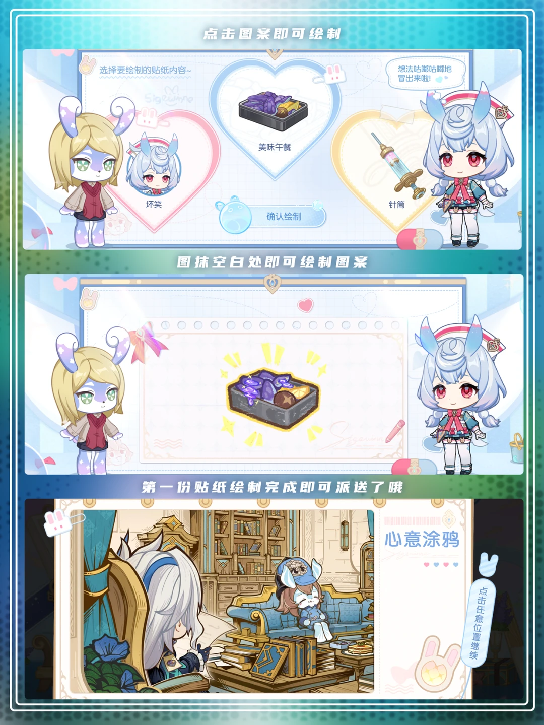 参与希格雯「心意涂鸦」H5活动,可获得40原石! 画完三个贴纸即可领取奖励啦[哇R]
