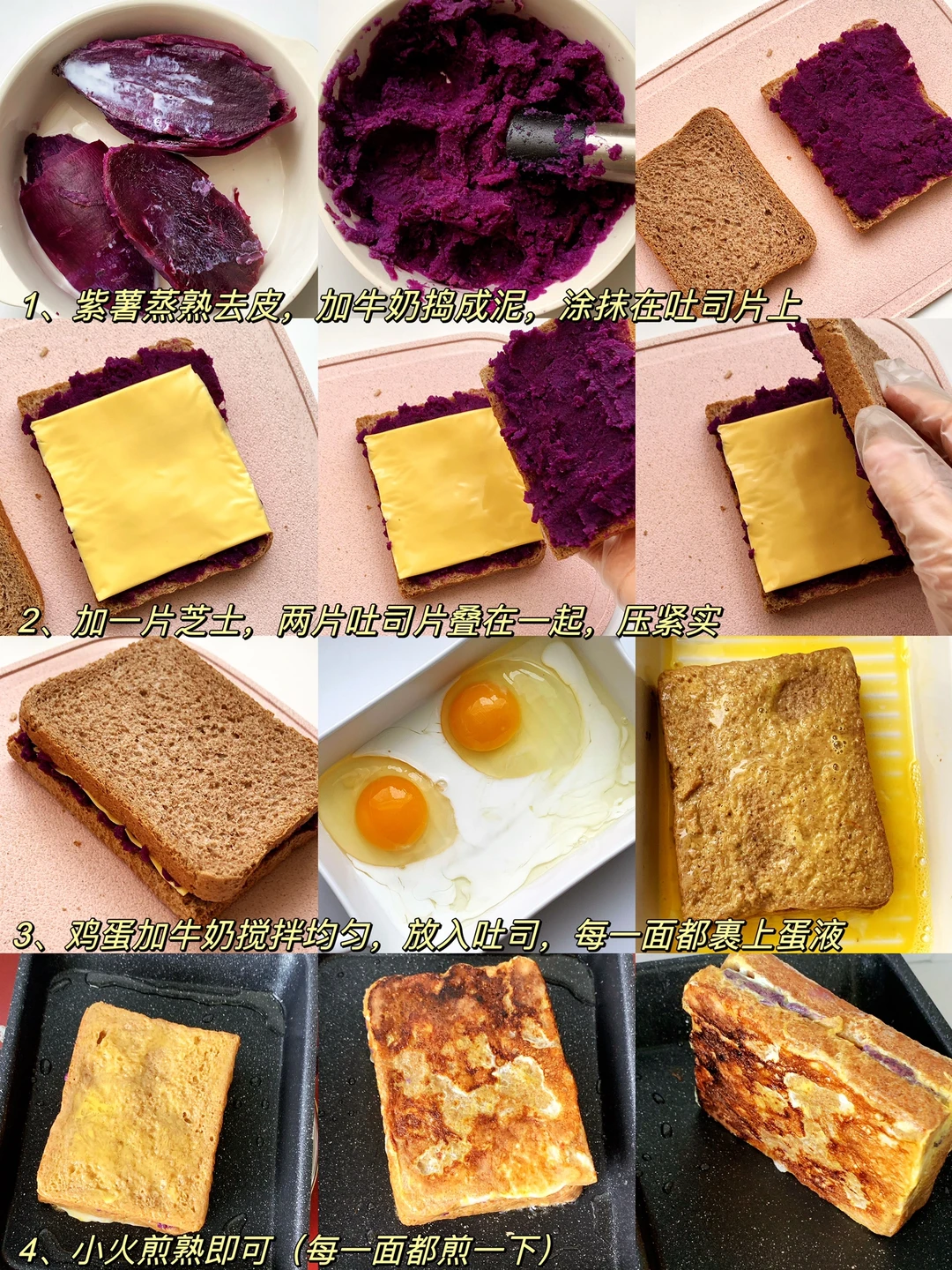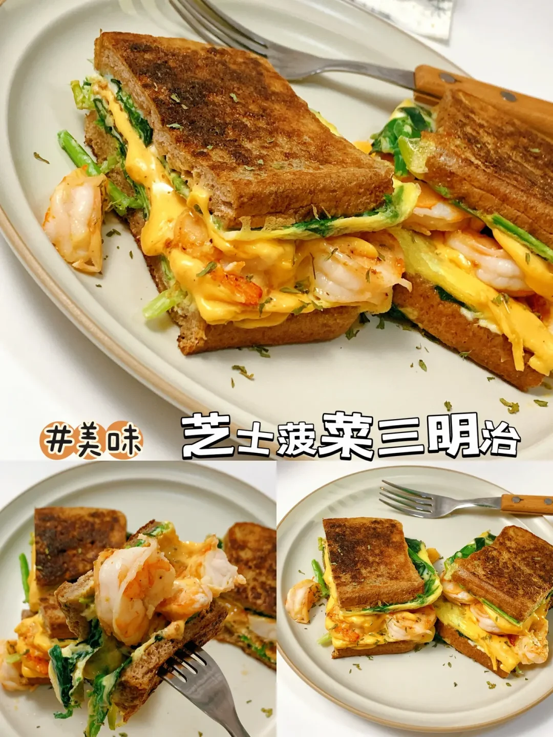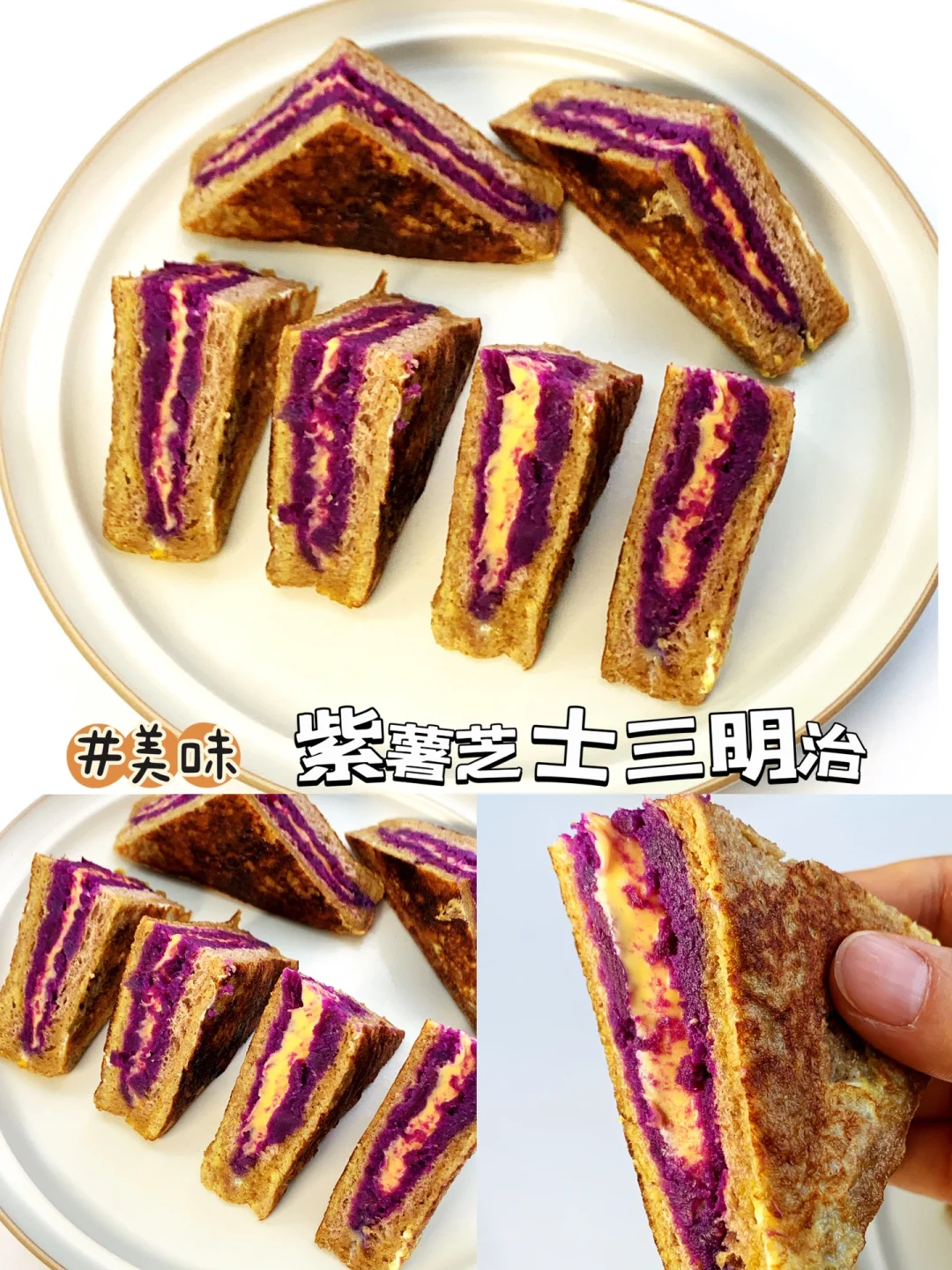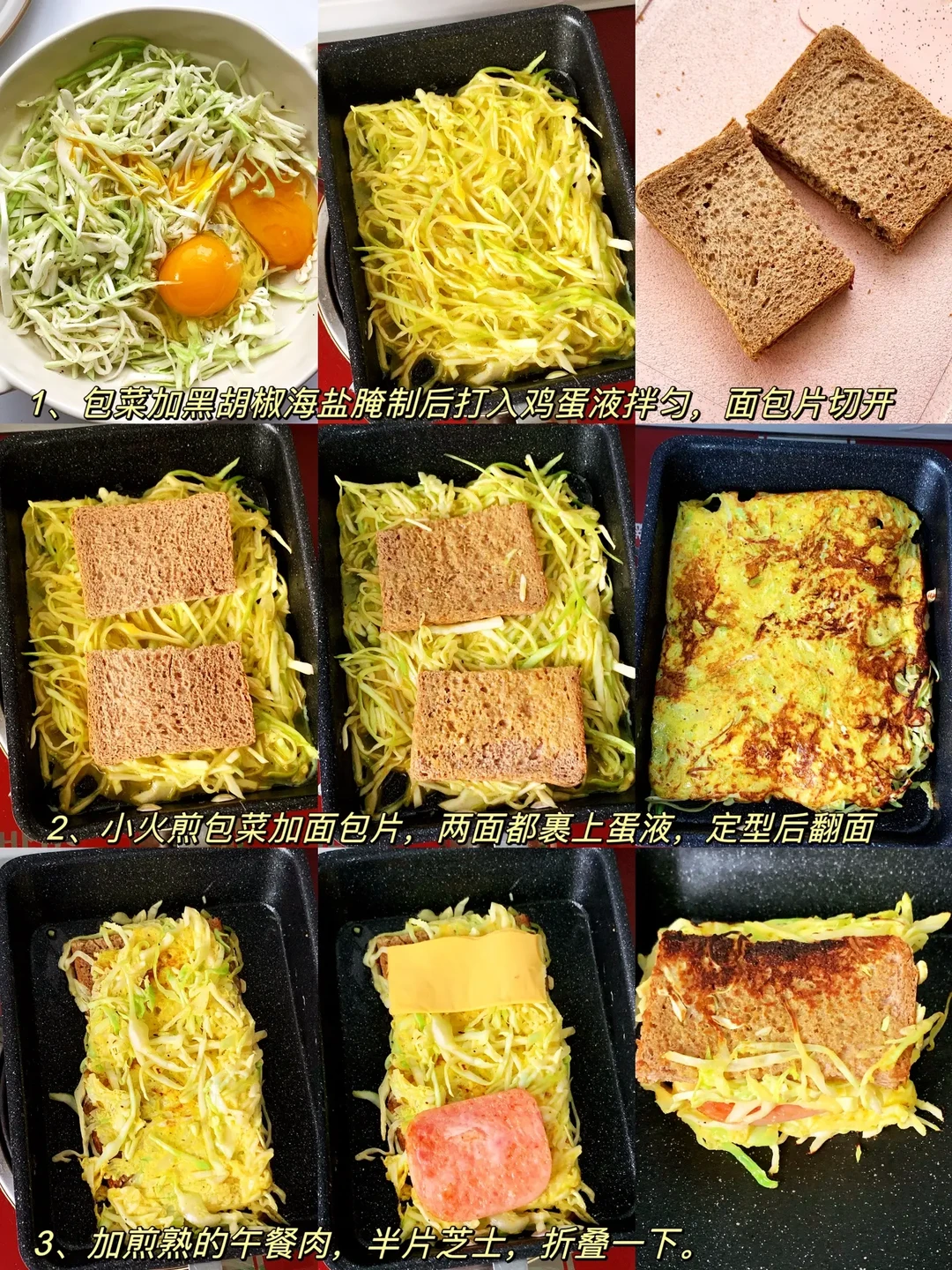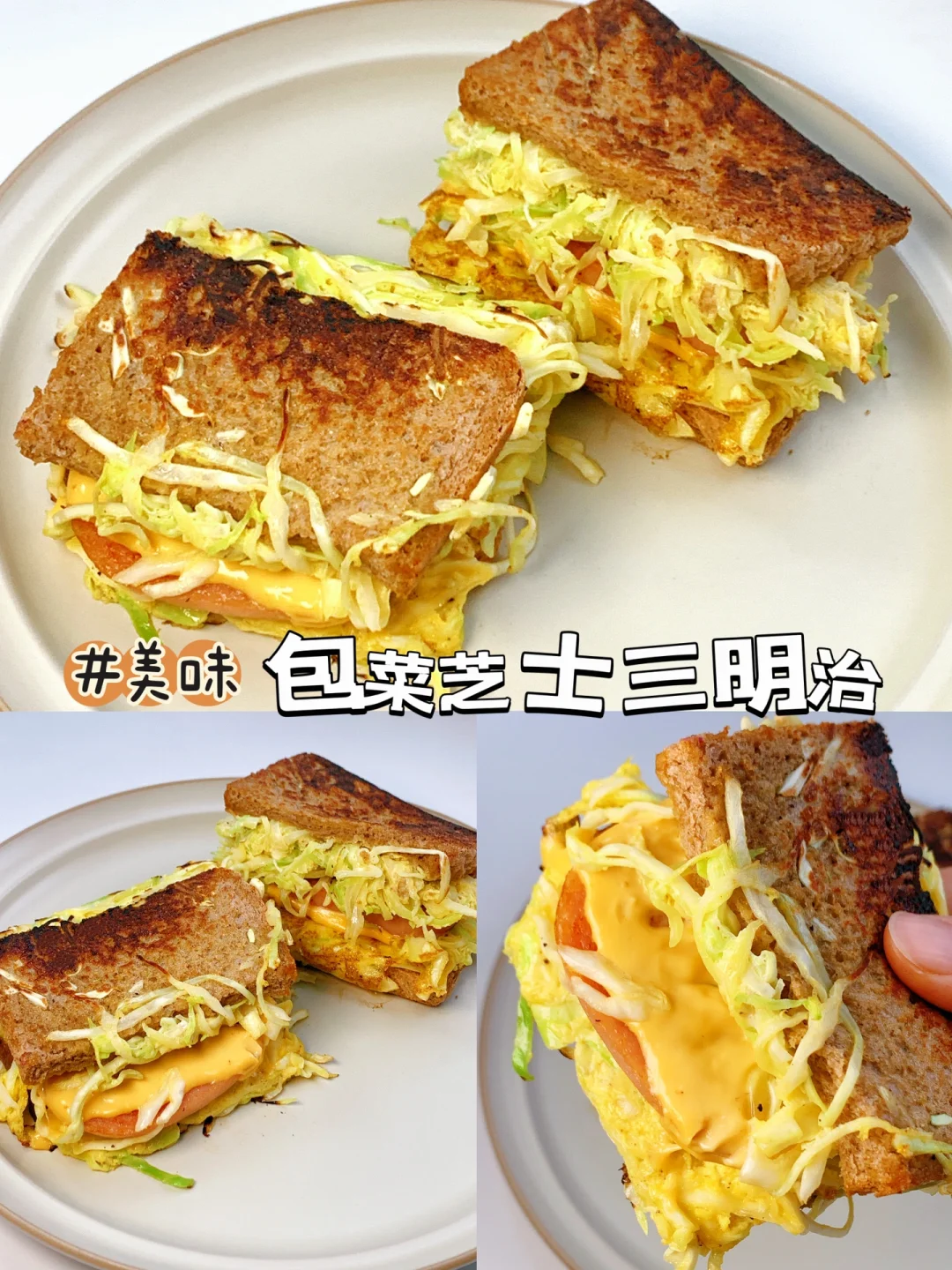 [飞吻R]hi,姐妹们,我又来分享减脂餐啦❗️进入主页🈶很多有手就会的家常减脂餐~~ ………………………………………………………………………………… 今日分享 ✅包菜芝士三明治 ✅紫薯芝士三明治 ✅芝士菠菜三明治 ✅蔬菜沙拉三明治 [打卡R]做法见图片[打卡R]图[四R][六R][八R][一R][零R] 吐司新吃法~ 🕐时间:5-10分钟 ⭐难度:零厨艺✌️ 小tips: 1️⃣包菜尽量切细一点 2️⃣吐司面包要裹满蛋液