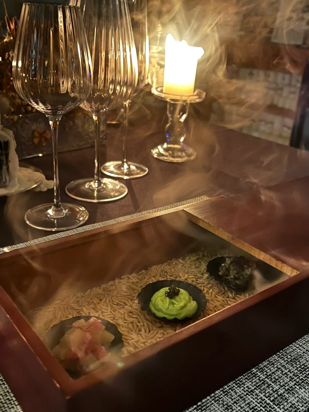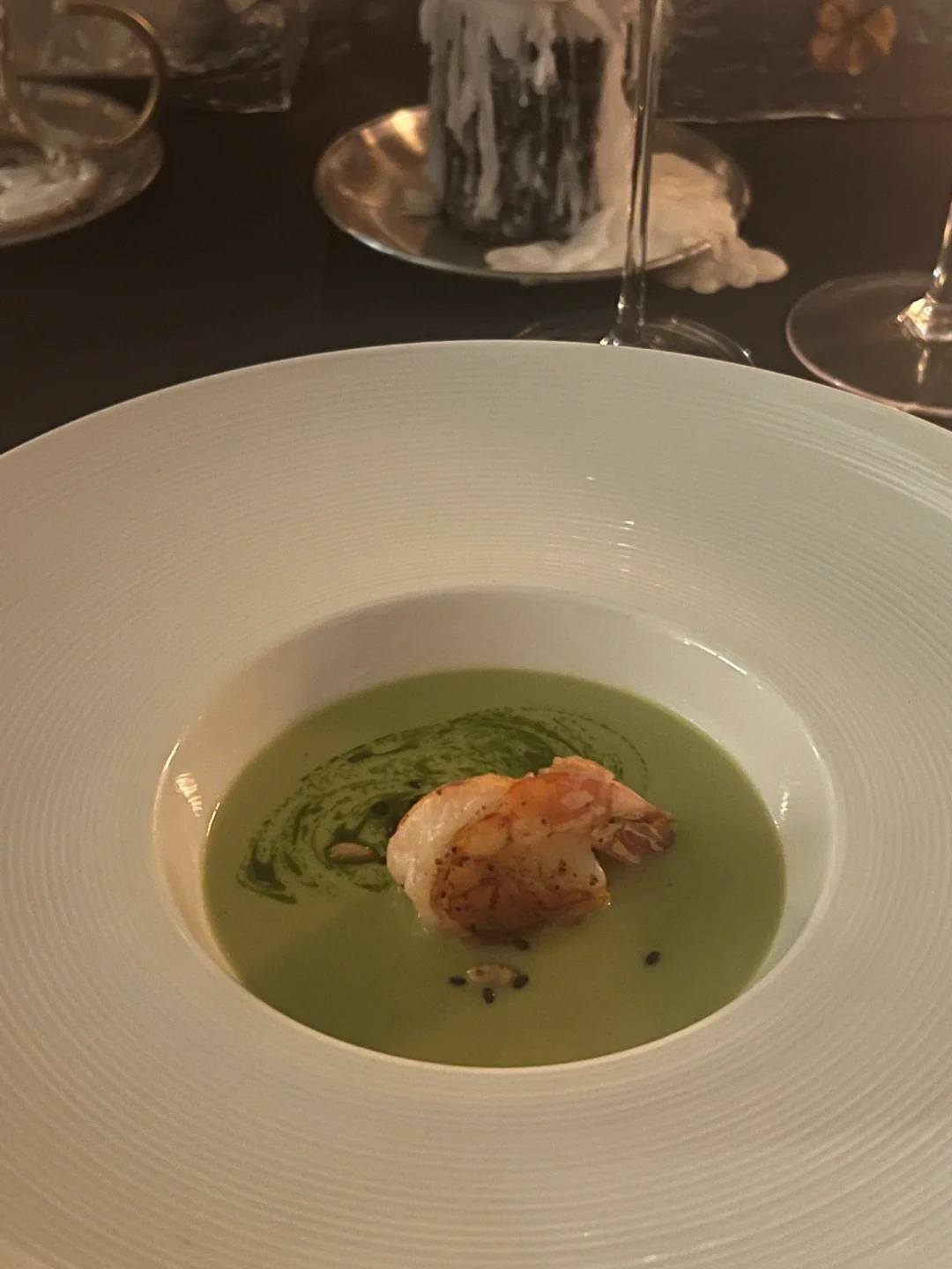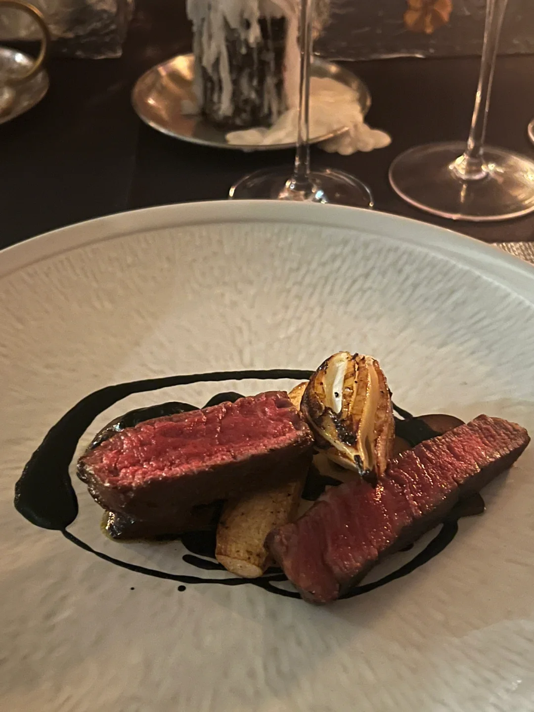 预约制的 fine dining西餐厅Delight Master 装修有种欧洲古堡的神秘感 桌上铺满了花和蜡烛 灯光昏暗 仪式感十足 超级适合过生日或者约会 有种氛围感家宴的感觉 主理人Dreak 会详细介绍每道菜的制作灵感及故事 每个季度都会更新菜单 这次菜单名叫“燎原” 【孤海花】将传统的惠林顿牛排换成鲍鱼,口味非常独特,外面的酥皮也很香脆 【角仙】新西兰鹿肉搭配鹅肝鲜嫩多汁 【岭峰】黑虎虾搭配花斑鸡汤非常鲜甜