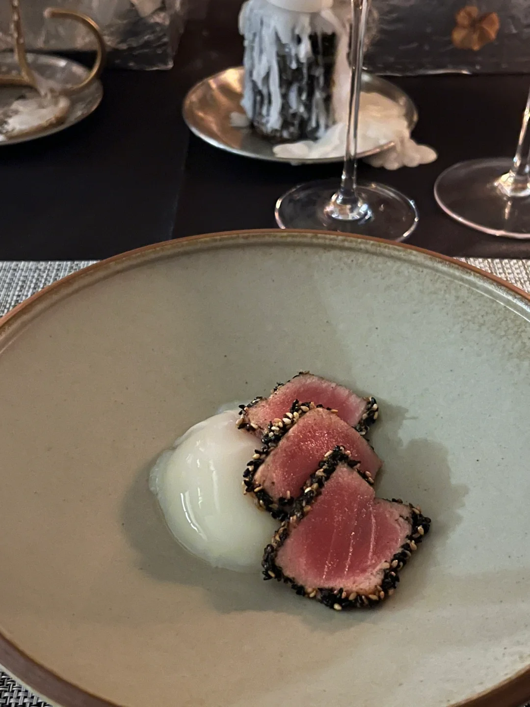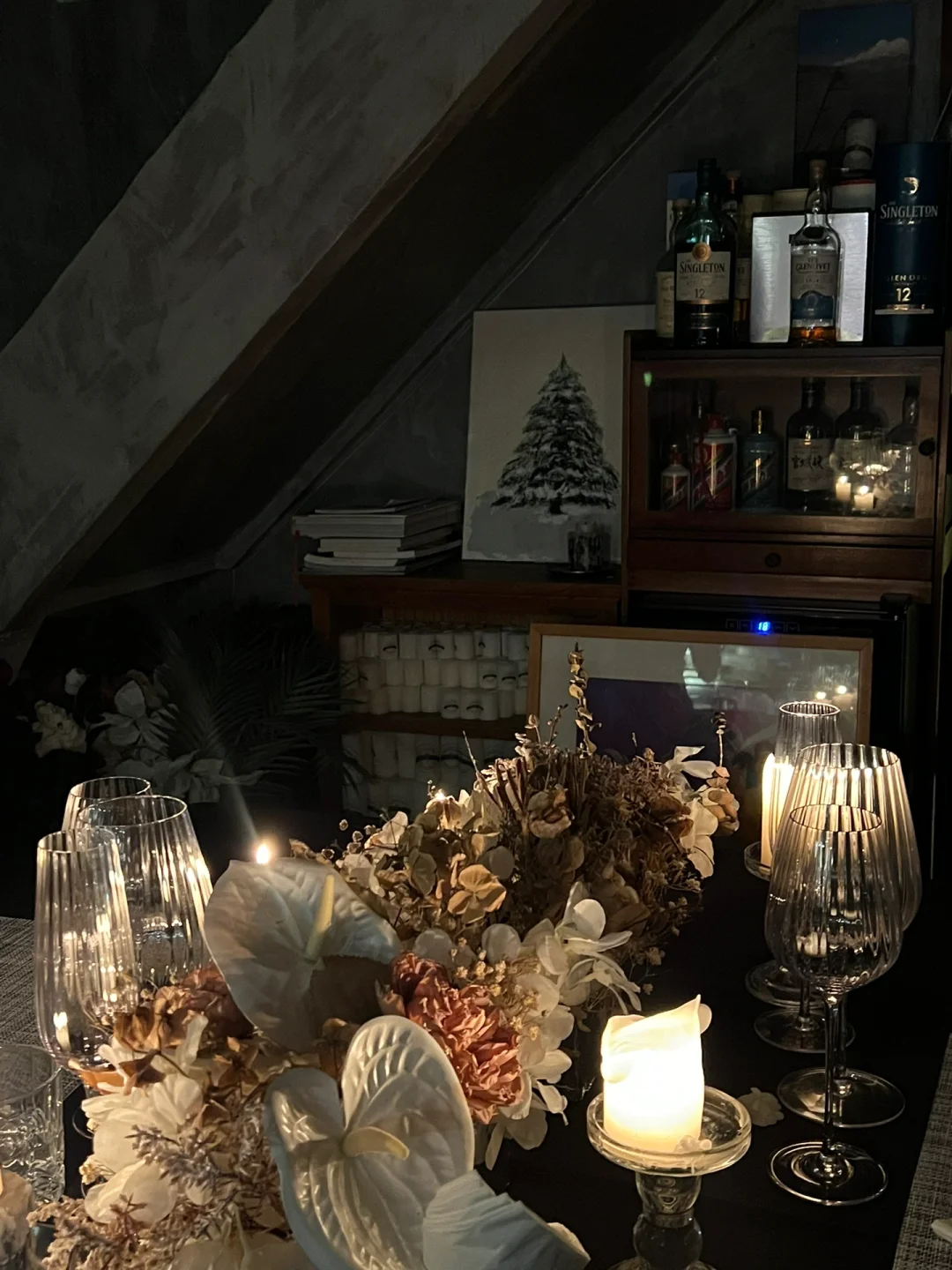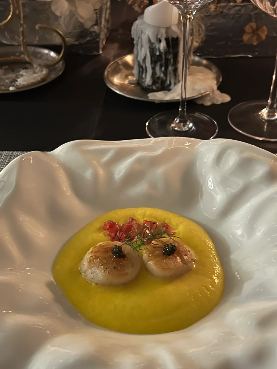 预约制的 fine dining西餐厅Delight Master 装修有种欧洲古堡的神秘感 桌上铺满了花和蜡烛 灯光昏暗 仪式感十足 超级适合过生日或者约会 有种氛围感家宴的感觉 主理人Dreak 会详细介绍每道菜的制作灵感及故事 每个季度都会更新菜单 这次菜单名叫“燎原” 【孤海花】将传统的惠林顿牛排换成鲍鱼,口味非常独特,外面的酥皮也很香脆 【角仙】新西兰鹿肉搭配鹅肝鲜嫩多汁 【岭峰】黑虎虾搭配花斑鸡汤非常鲜甜