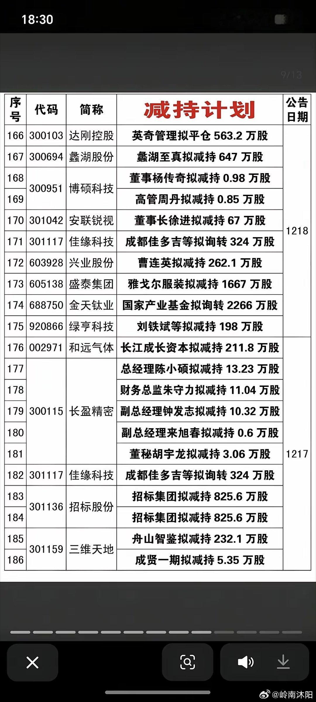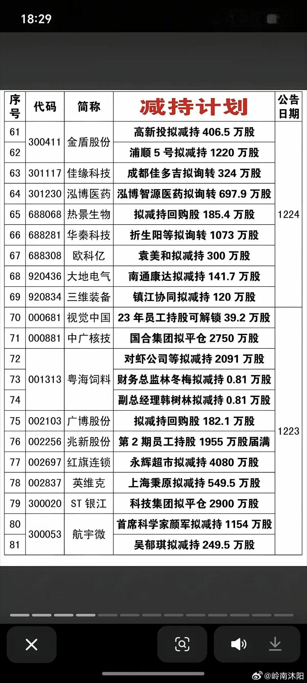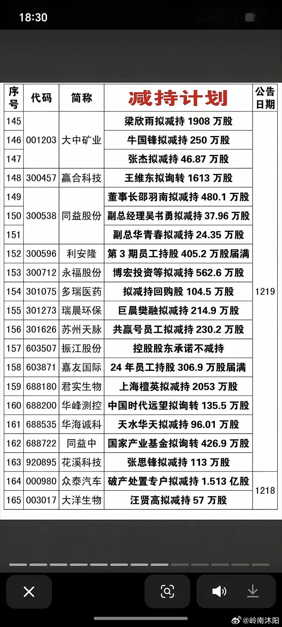 半月减持动态报告:逾260家公司披露减持计划12月12日至12月27日这半个月内,A股市场共有120家上市公司密集披露股东减持计划。值得注意的是,对于部分处于低位区间的减持标的,反而具备跟踪价值,后续或存在潜在的交易机会。