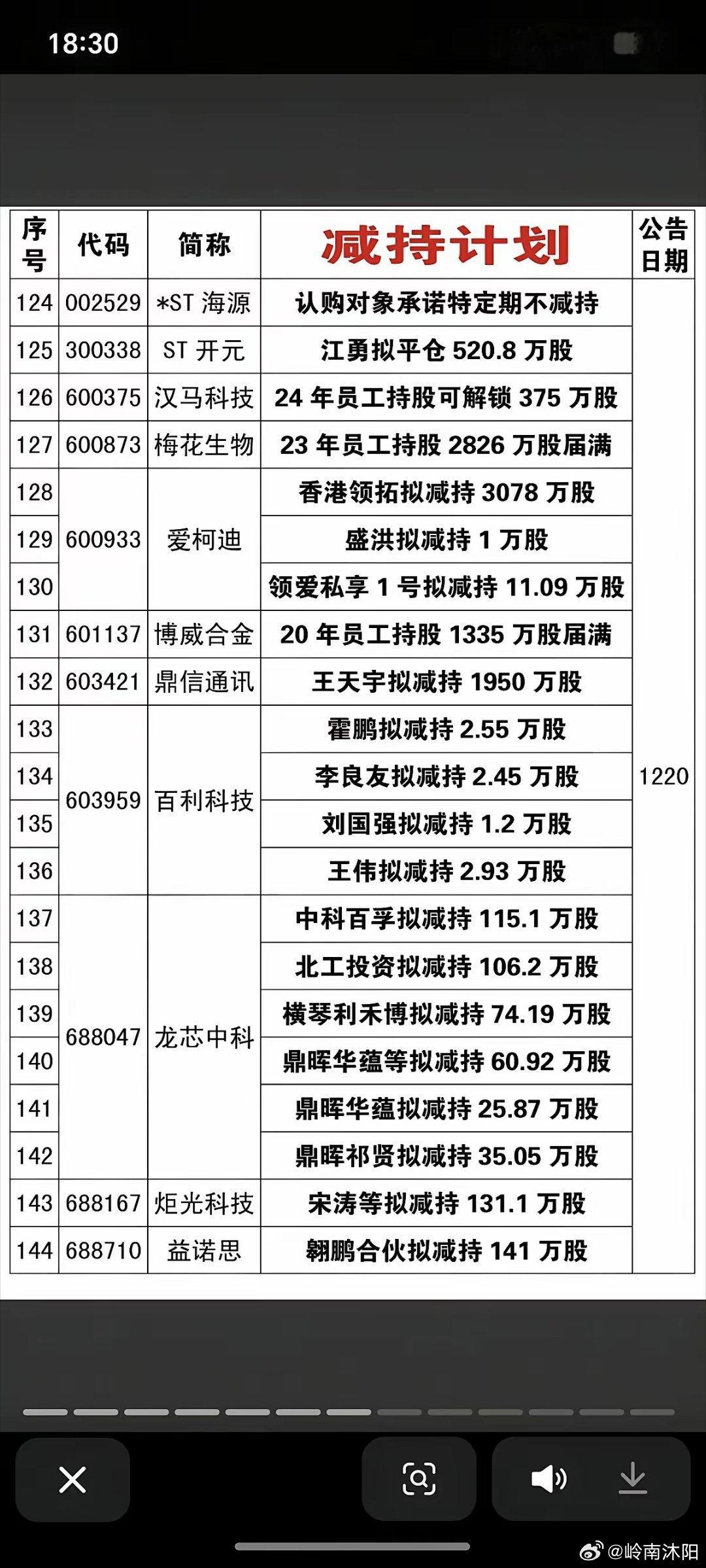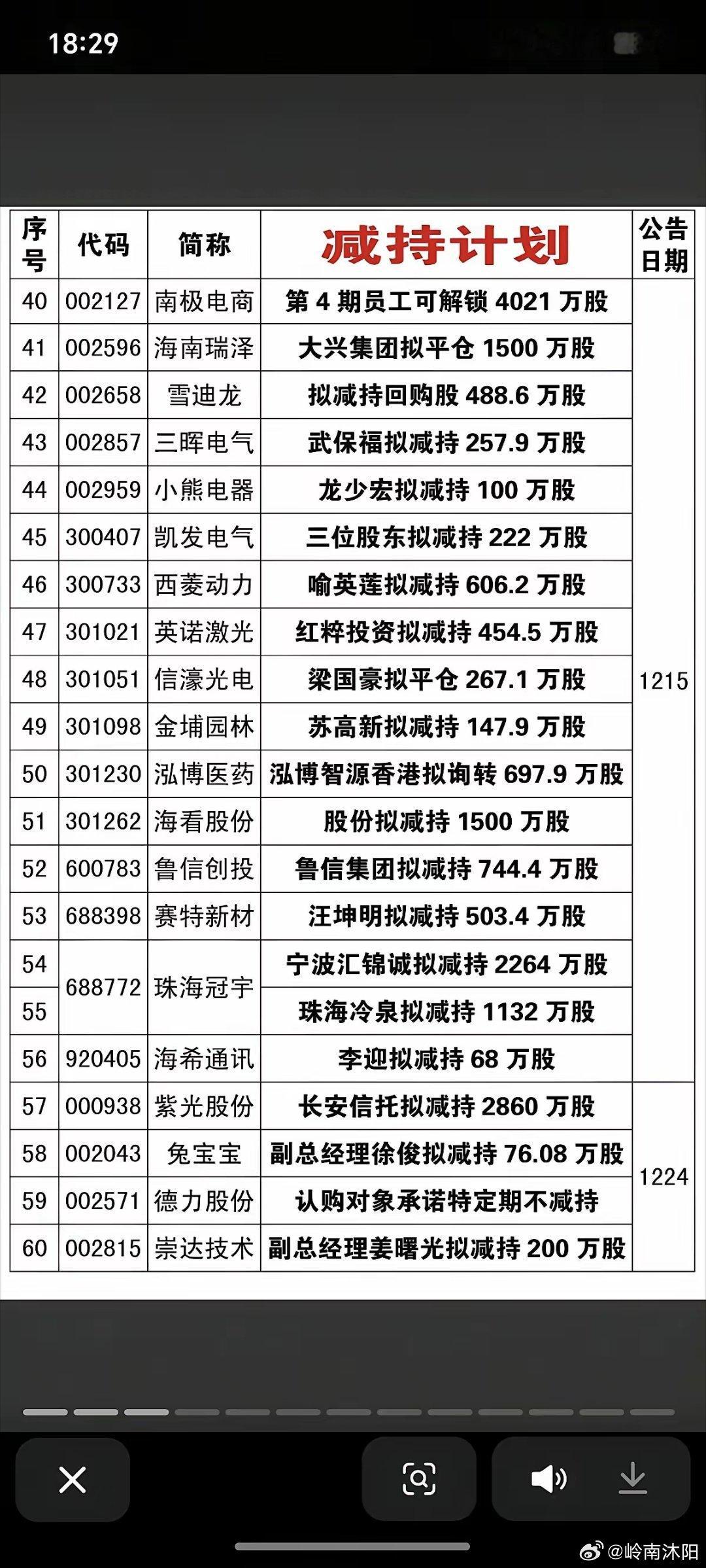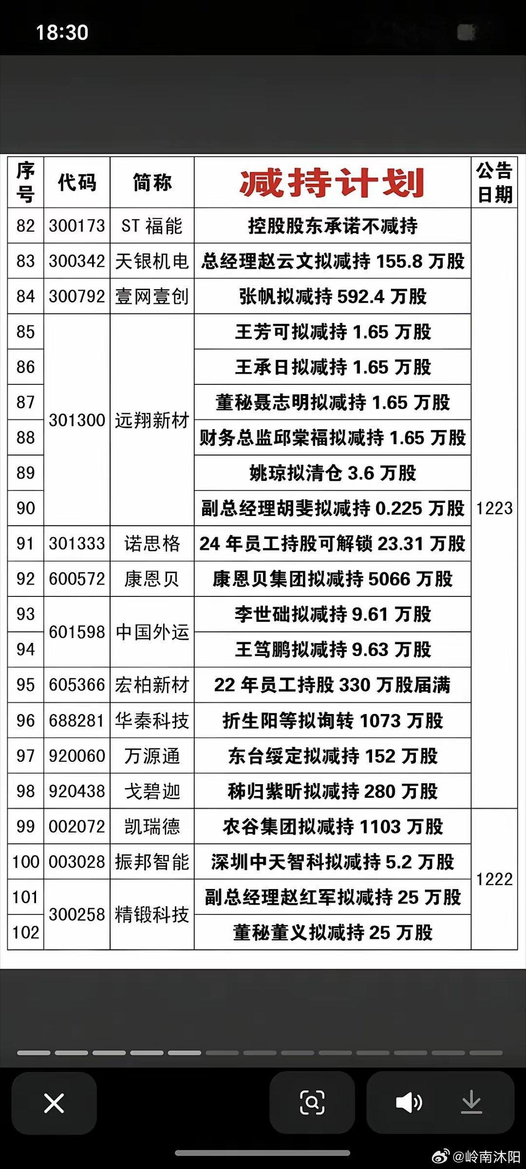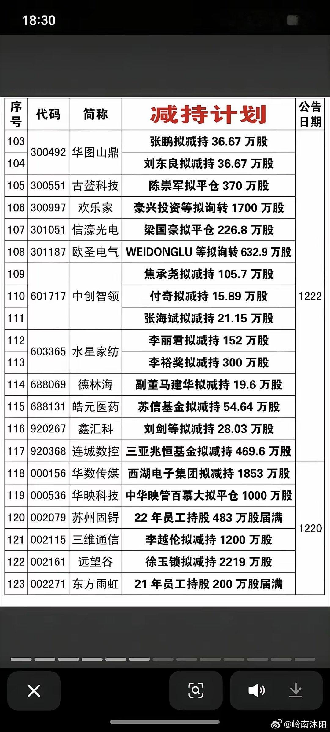 半月减持动态报告:逾260家公司披露减持计划12月12日至12月27日这半个月内,A股市场共有120家上市公司密集披露股东减持计划。值得注意的是,对于部分处于低位区间的减持标的,反而具备跟踪价值,后续或存在潜在的交易机会。