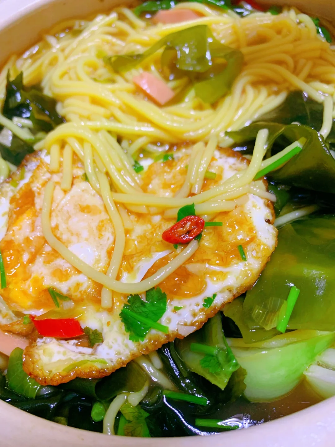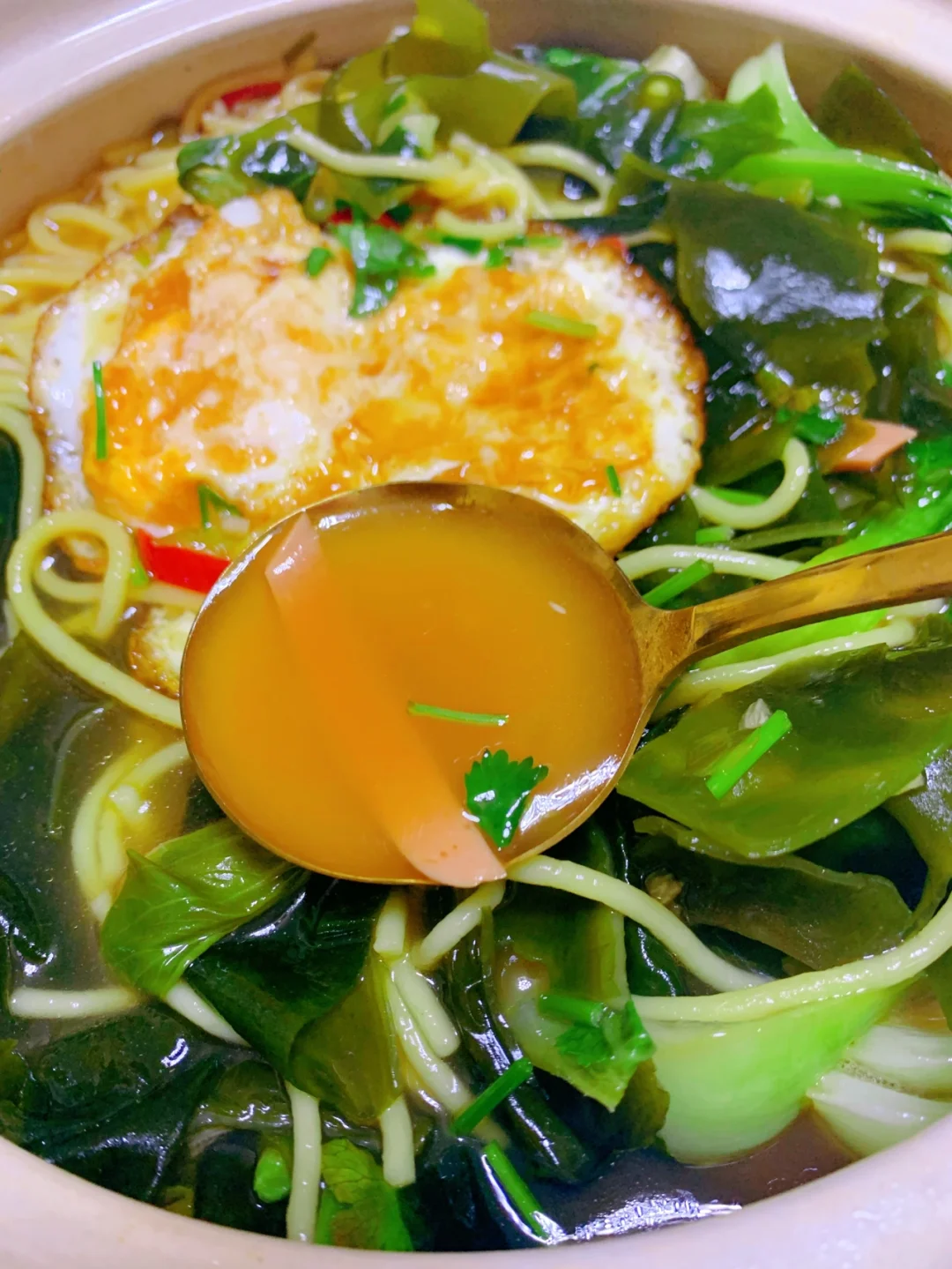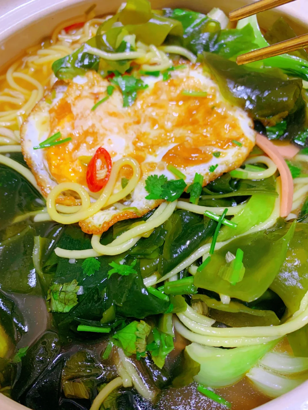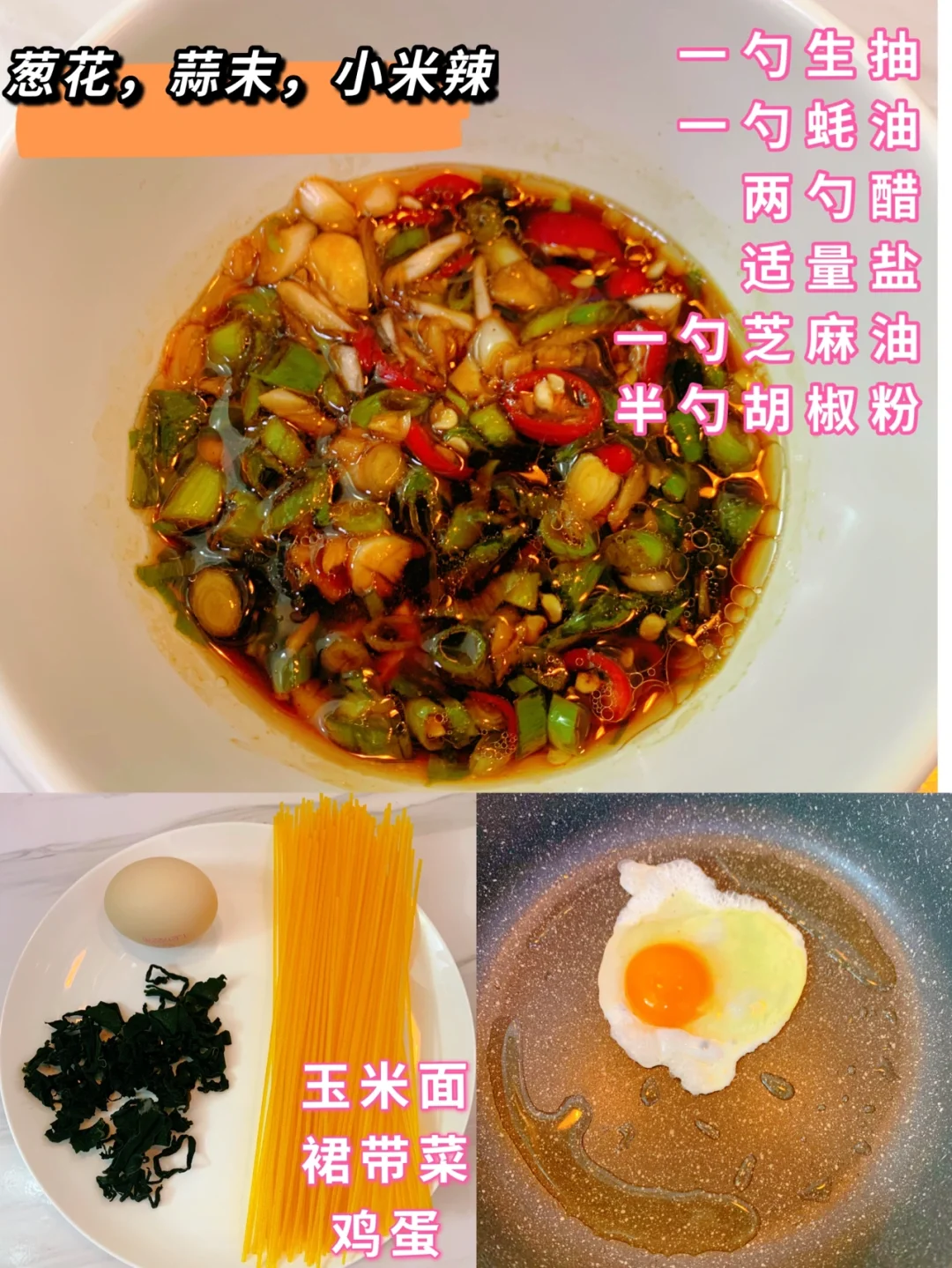 嘿,伙伴❗ 🌈🌈🌈玉米面新吃法了解一下,减脂期最爱。 今日体重:52.8kg,增加0.4kg 今日分享♨️♨️♨️ 《酸汤裙带玉米面🍜》 减脂第1️⃣5️⃣天,又长肉了,明天就是大姨妈到访的日子,希望可以瘦一点,100天,加油❗❗❗