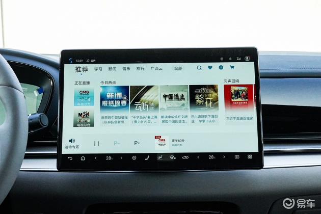 来到车内,汉内饰整体视觉效果很有特色,视觉效果非常的不错。该车方向盘设计不错,采用真皮材质,尽显大气感。看一下中控,该车配备了触控式液晶中控屏,让内饰风格给人印象深刻,给人一种充满精神的感觉。下面再让小编介绍下仪表盘和座椅,仪表盘设计可圈可点,显示效果出色。该车采用了真皮座椅,座椅包裹性到位,整体乘坐感受柔软舒适。