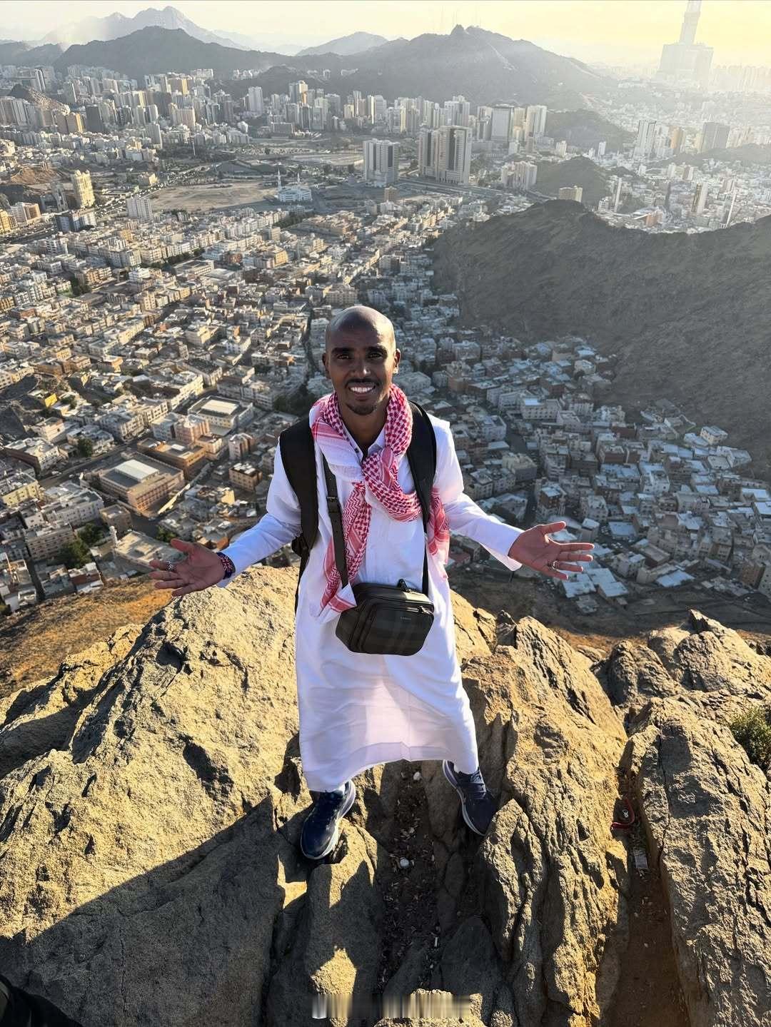 Mo Farah 莫法拉带儿子去麦加朝觐。穆斯林的必修五功之一,莫去了不止一次,