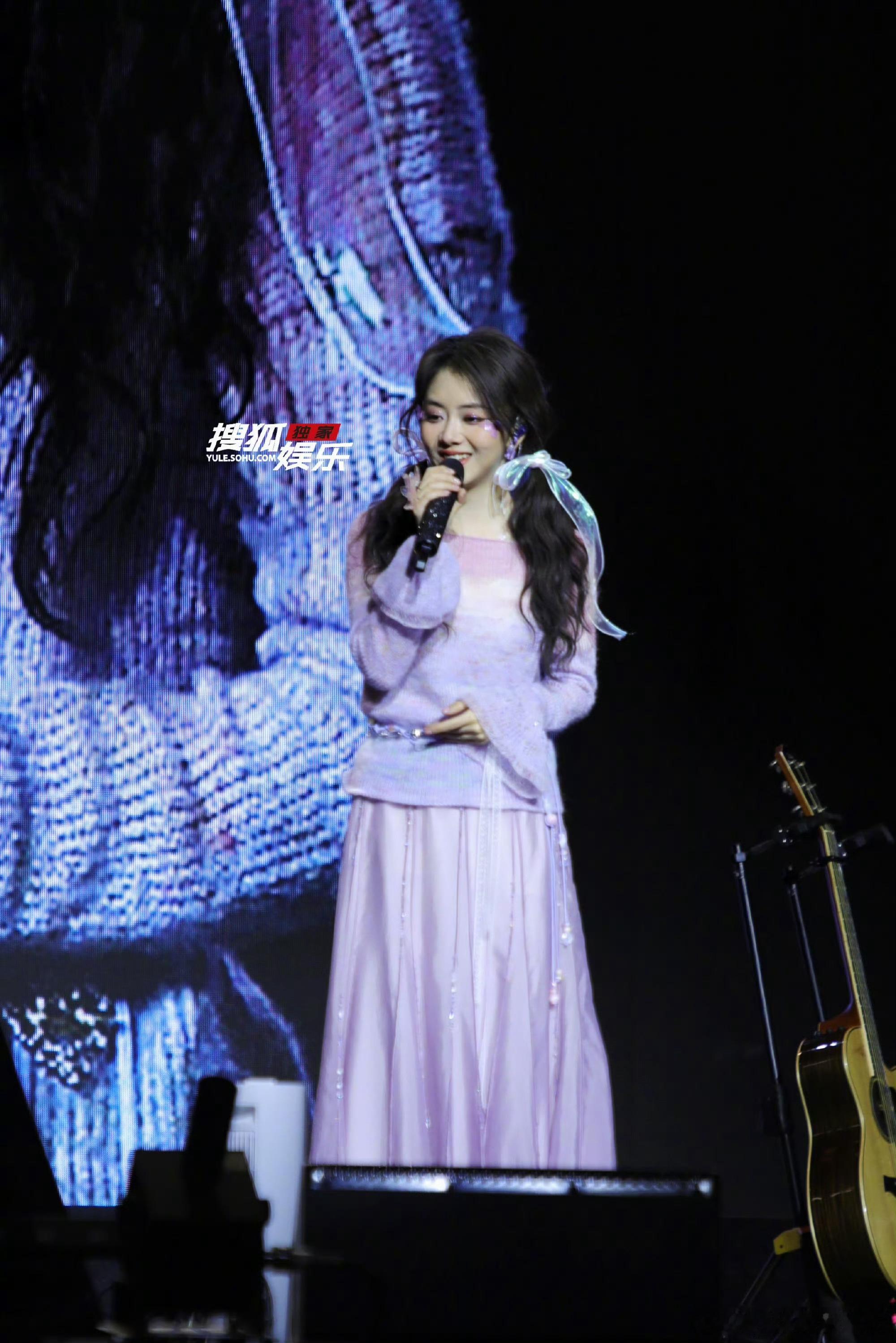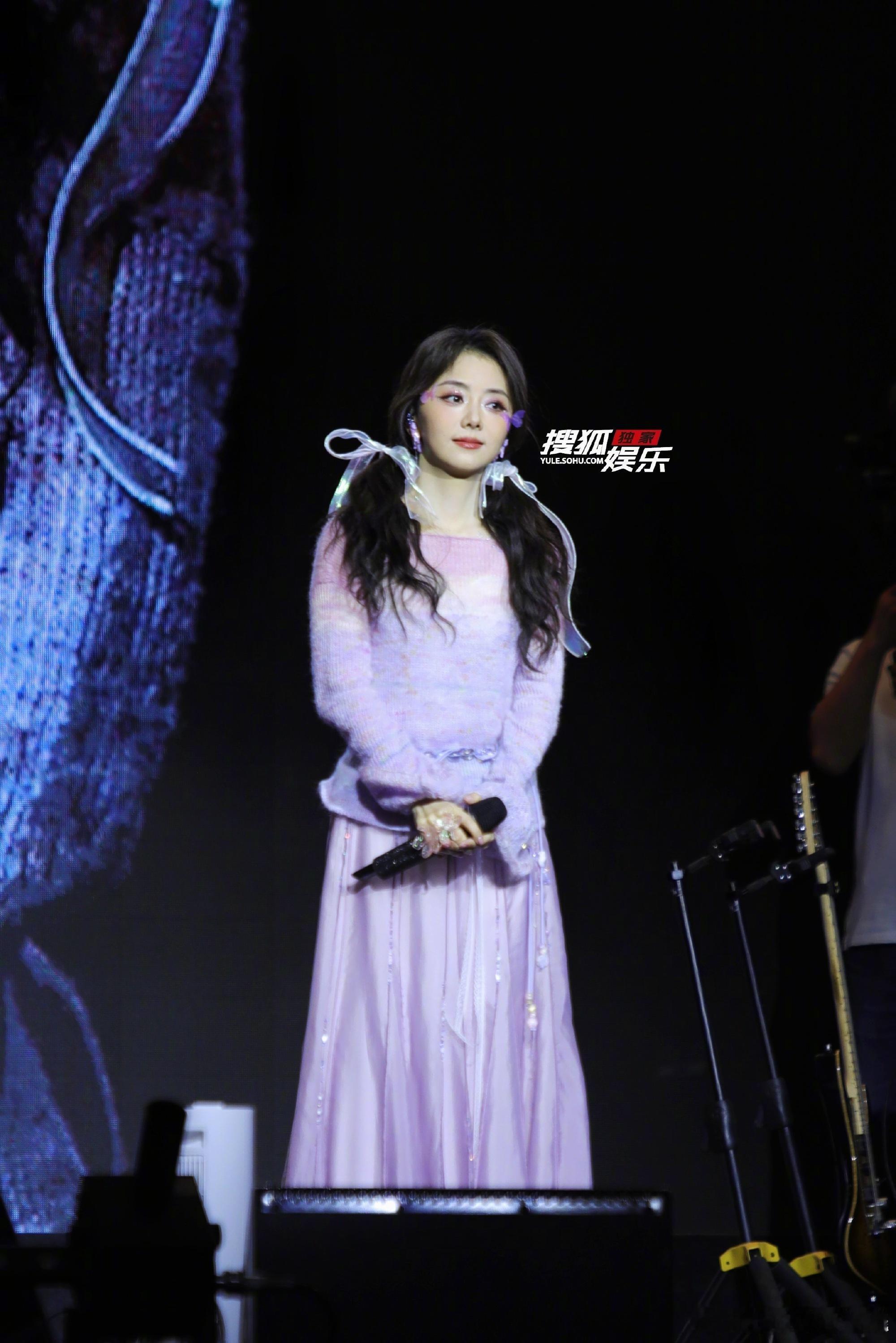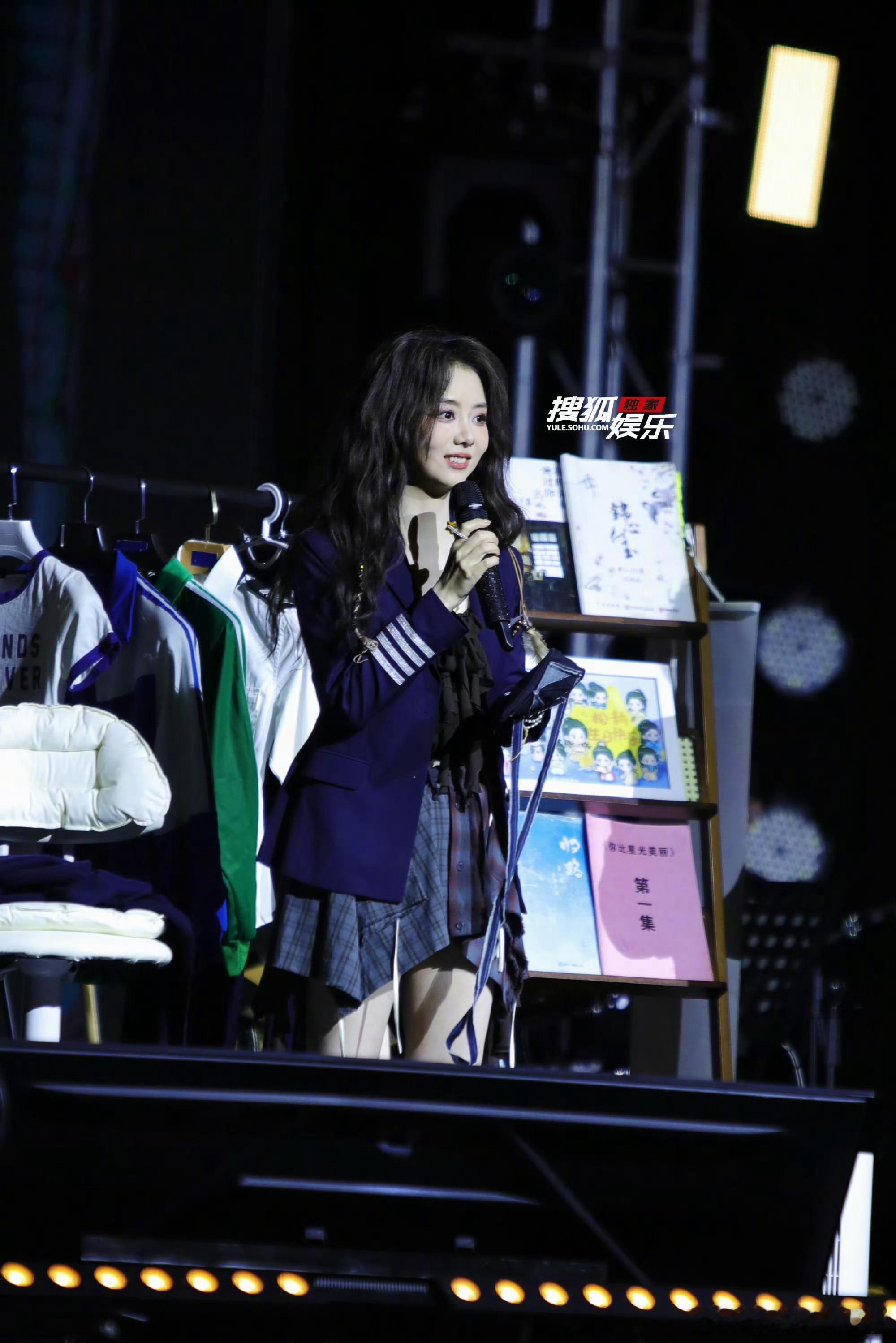 谭松韵今晚韵光同行见面会的造型,格子裙、海蓝色礼服、学院风、紫色毛衣四套造型,朋克甜美可爱风全都有!谭松韵生日会百变女王