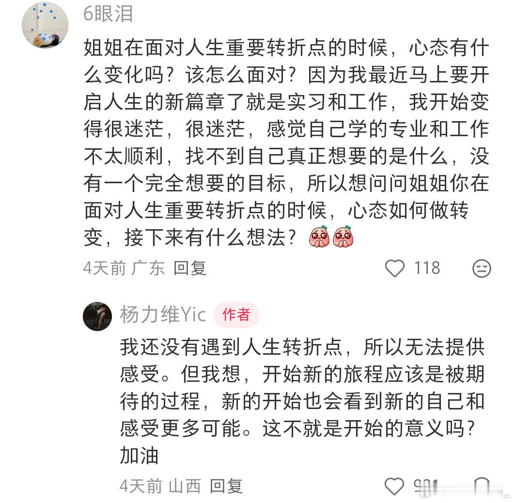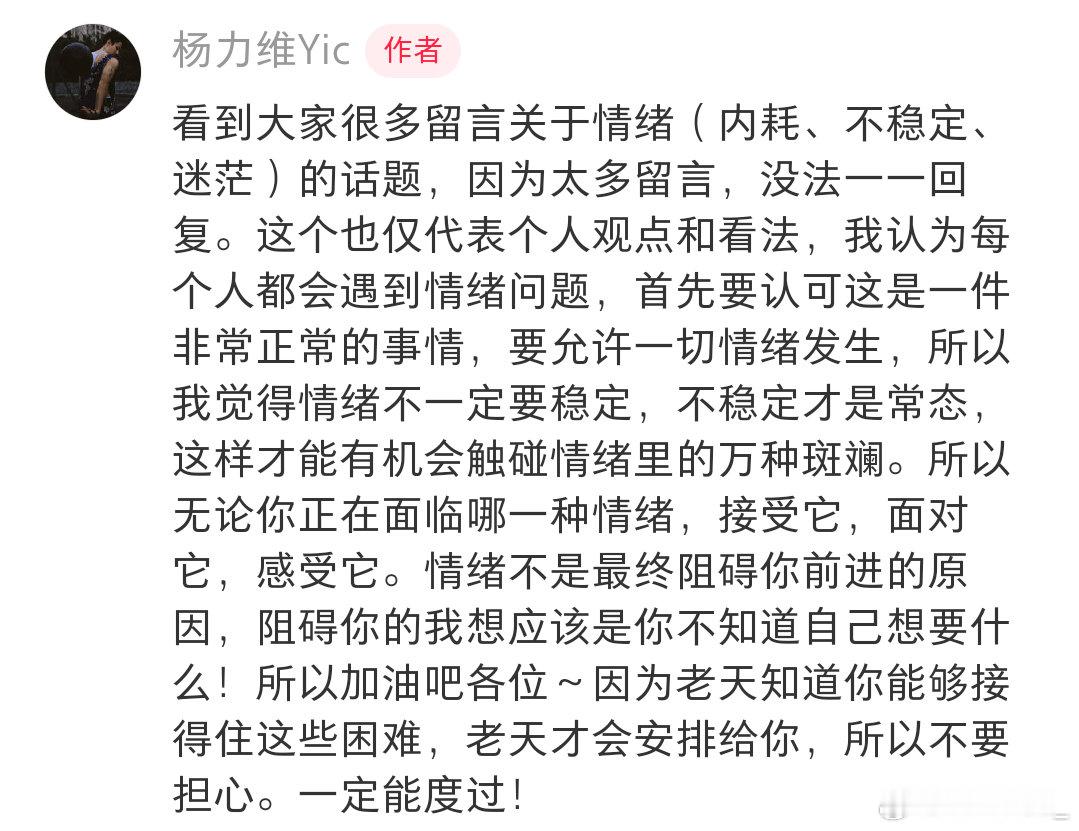 杨力维杨力维 20251223来自姐姐的小红书有问必答像太阳一样温暖着我们的姐姐,对于情绪姐姐认为不稳定才是常态,无论面临哪种情绪,接受它,面对它,感受它,一个超级好的姐姐,希望未来的我遇到情绪的问题牢记姐姐的话只能感叹认识姐姐太晚了(截图截与今天)