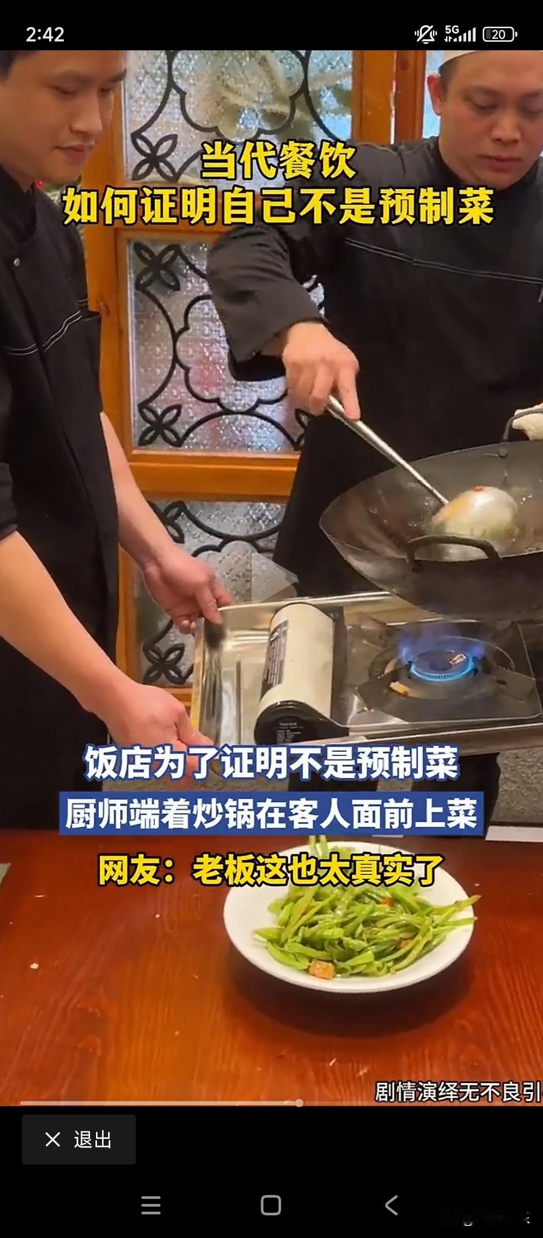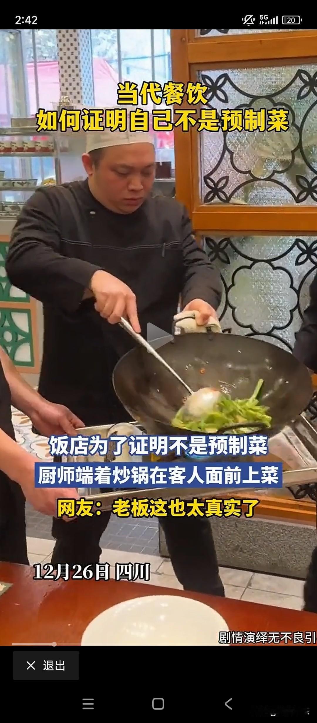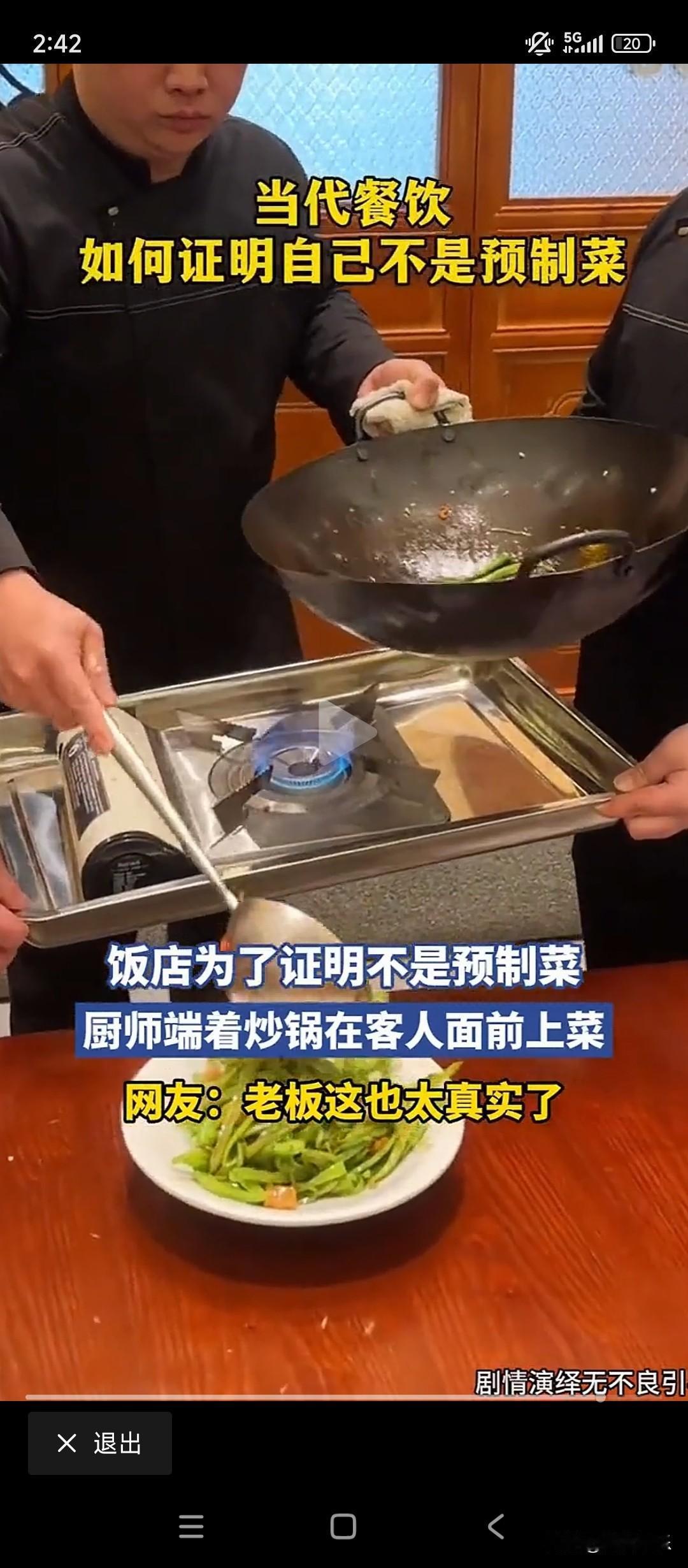 感觉是在作秀,真要证明自己是现炒的,你直接允许客人进入后厨不就完了。