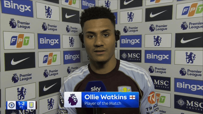 虎扑12月28日讯阿斯顿维拉中锋奥利-沃特金斯在2-1逆转切尔西的赛后,接受天空体育瞬采。
