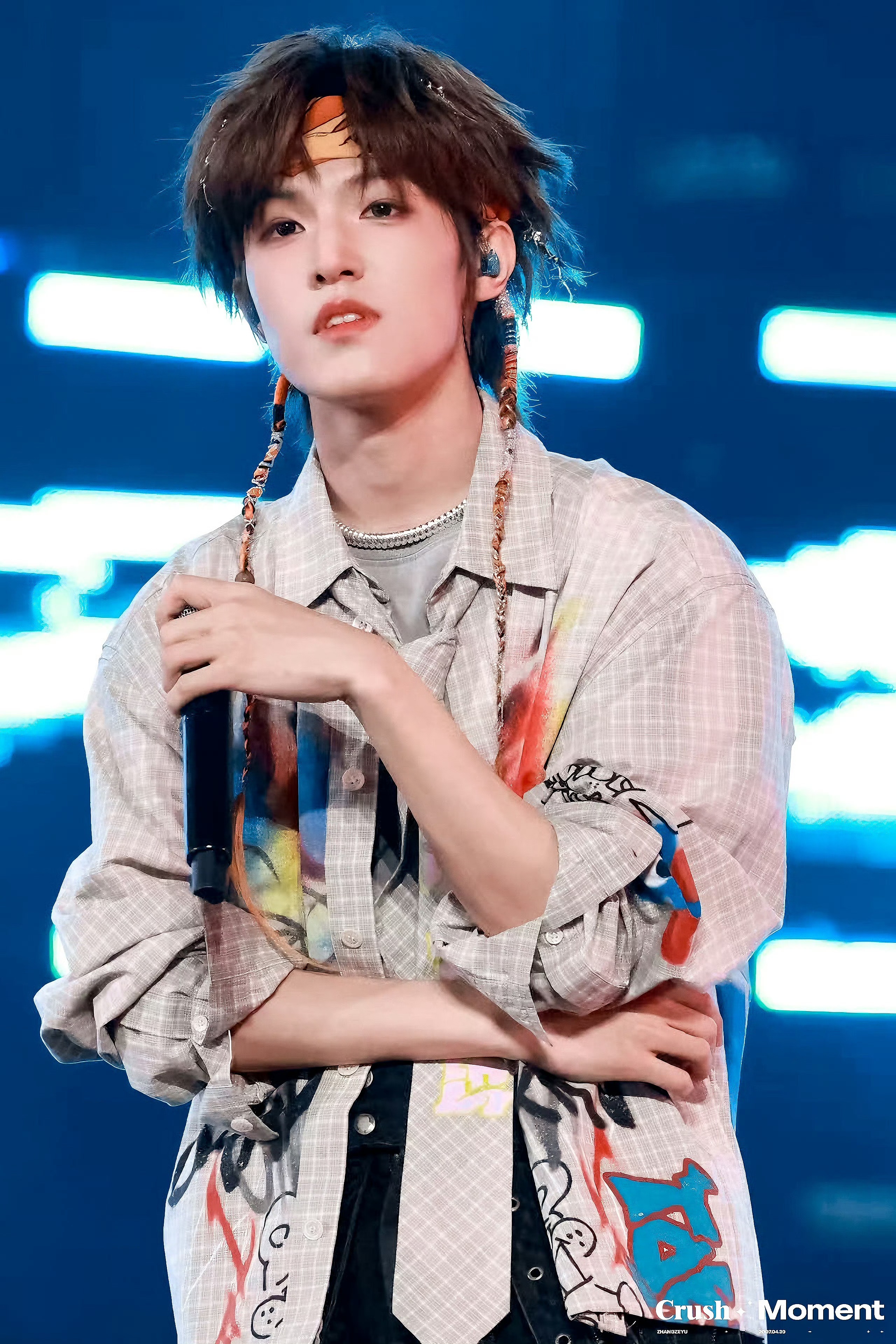 张泽禹居然扎了两个辫子 谁懂,看到扎双辫子的那一刻直接愣住,彩绳编发+涂鸦衬衫,