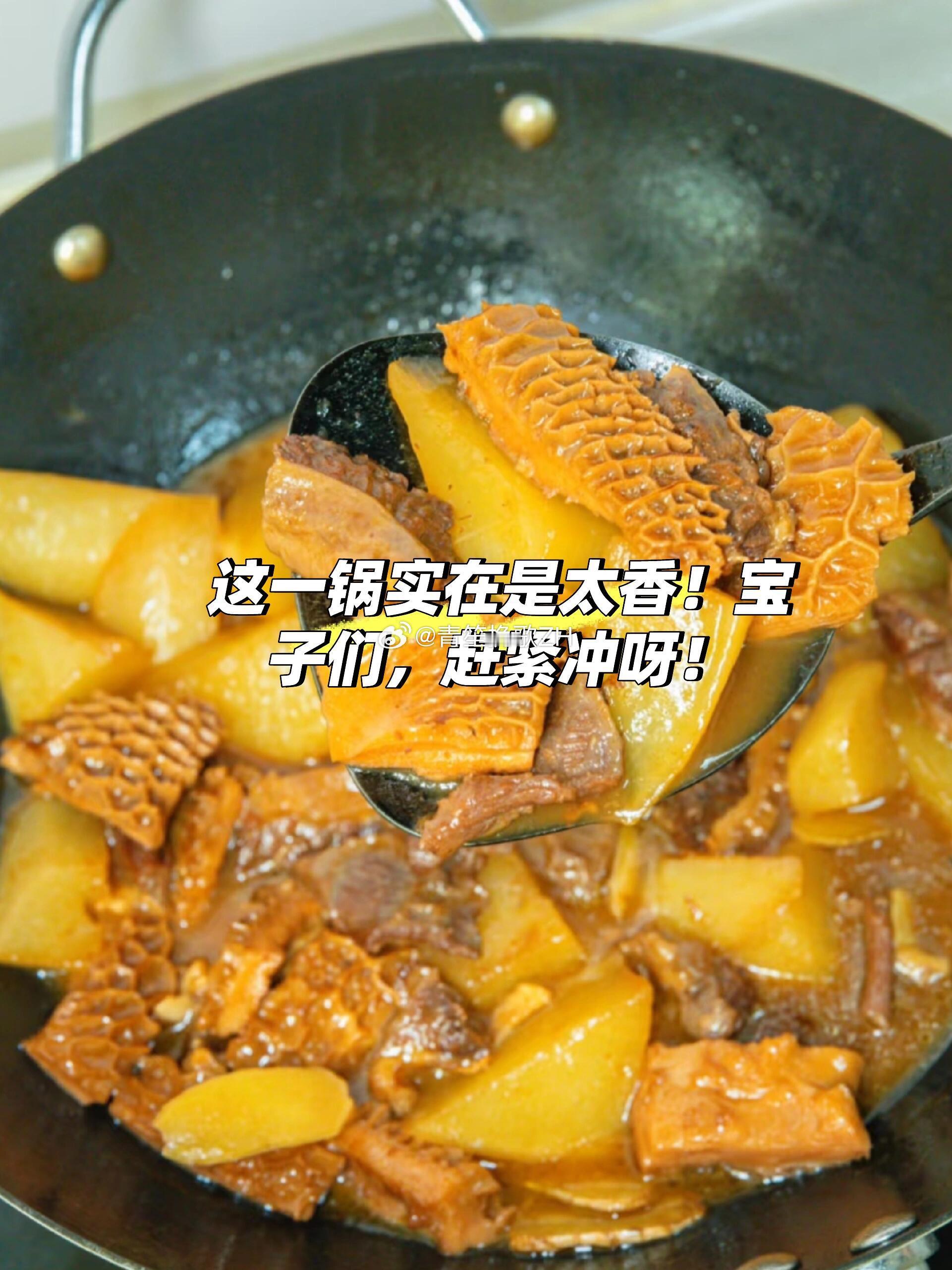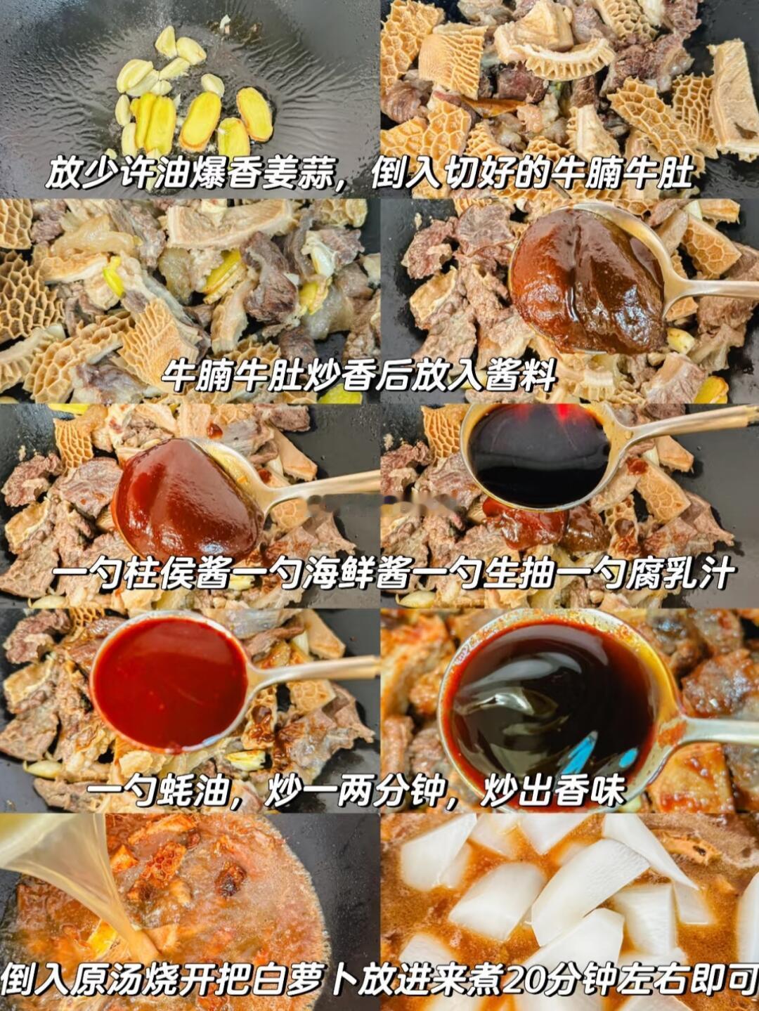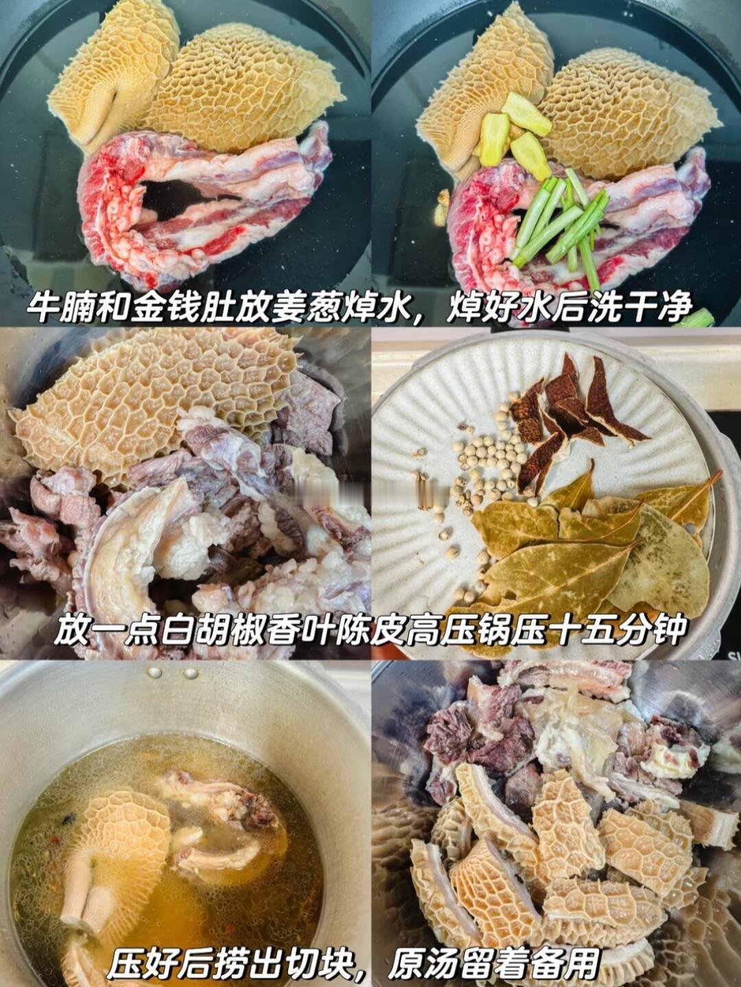 当外国人第一次吃广东牛杂要让牛杂煲香气浓郁、味道正宗,关键在于处理牛杂、搭配香料和掌握火候。分享广式牛杂煲的经典做法,兼顾鲜香与地道风味,以及怎样正确处理和飘香的秘诀。一、食材准备主料: • 牛杂(牛肚、牛肠、牛肺、牛蒡、牛筋等)约2斤 • 白萝卜1根(或面筋、豆腐泡等配料)去腥材料: • 面粉、白醋、盐(清洗牛杂用) • 姜片、料酒(焯水去腥用)香料包: • 八角2颗 • 桂皮1小段 • 香叶3片 • 草果1颗(拍裂) • 陈皮1片 • 小茴香1小勺 • 干辣椒适量调味料: • 柱候酱3大勺 • 花生酱1勺 • 南乳1块 • 腐乳1块 • 生抽2勺 • 老抽1勺 • 冰糖1小块 • 米酒或料酒2勺 • 牛骨高汤或清水约2L二、制作步骤1. 处理牛杂(去腥关键)清洗: • 牛杂用面粉+盐+白醋反复揉搓,去除黏液和杂质; • 用流水冲洗干净。焯水: • 冷水下锅,加入姜片、料酒; • 大火煮10分钟,撇去浮沫后捞出切块; • 牛肺需单独焯水,并多次挤出内部血沫。2. 爆香炖煮炒香料: • 热锅冷油,爆香姜片、蒜粒; • 加入牛杂翻炒至微焦黄。调酱底: • 转小火,加入柱候酱、南乳、腐乳、花生酱炒香; • 淋入米酒激香。炖煮: • 倒入牛骨汤没过食材; • 加入香料包、冰糖、生抽、老抽; • 大火煮沸后转小火慢炖1.5小时(或用高压锅压25分钟)。加配料: • 白萝卜切块,提前15分钟加入,吸足汤汁。3. 收尾调味 • 捞出香料包; • 根据口味加盐调整咸淡; • 撒上香菜或葱花提香即可。三、正宗秘诀 1. 酱料搭配: ◦ 柱候酱+南乳是广式牛杂的灵魂,赋予醇厚酱香; ◦ 花生酱增加滑润感。 2. 火候控制: ◦ 牛筋、牛肚需长时间炖软; ◦ 牛肠避免过烂,可分时段下锅。 3. 汤底选择: ◦ 用牛骨汤(牛骨+姜片熬制2小时)比清水更鲜美。 4. 蘸料点睛: ◦ 搭配广式辣椒酱或蒜蓉沙茶酱,解腻提味。烹饪小知识: • 牛杂煲隔夜更入味; • 冷藏后撇去表面油脂,复热时加入新鲜萝卜,味道更佳。掌握这些技巧,一锅软烂鲜香、酱香扑鼻的广式牛杂煲,轻松上桌!好好吃饭的一年晒出我的年度兴趣温暖的食光 当外国人第一次吃广东牛杂